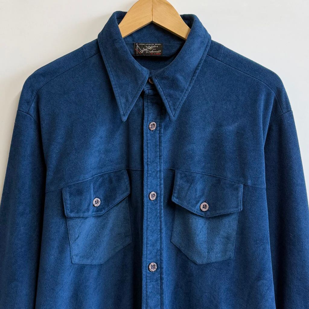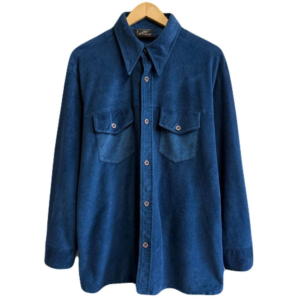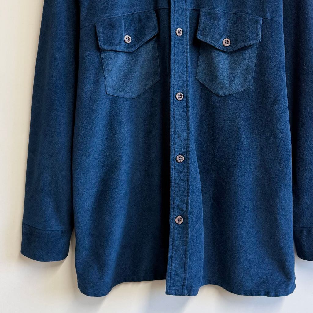 John Weitz ジョンワイツ Diplomat ベロア調 長袖シャツ 無地 ポケット付き 青 ブルー XLサイズ No.M260