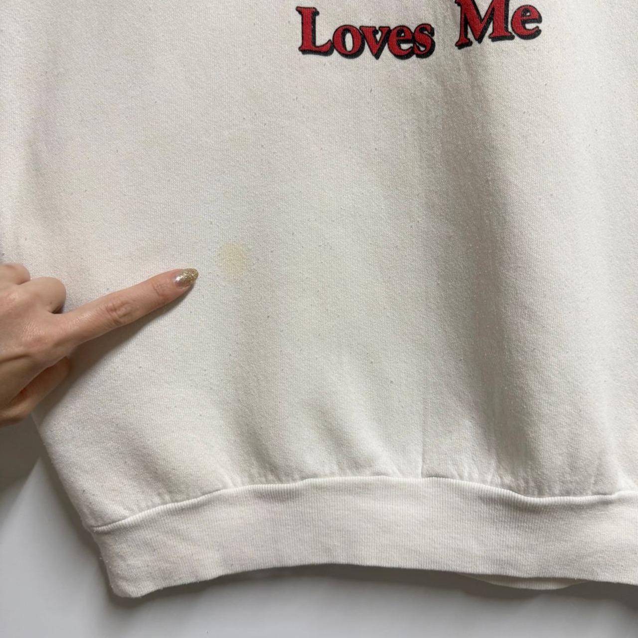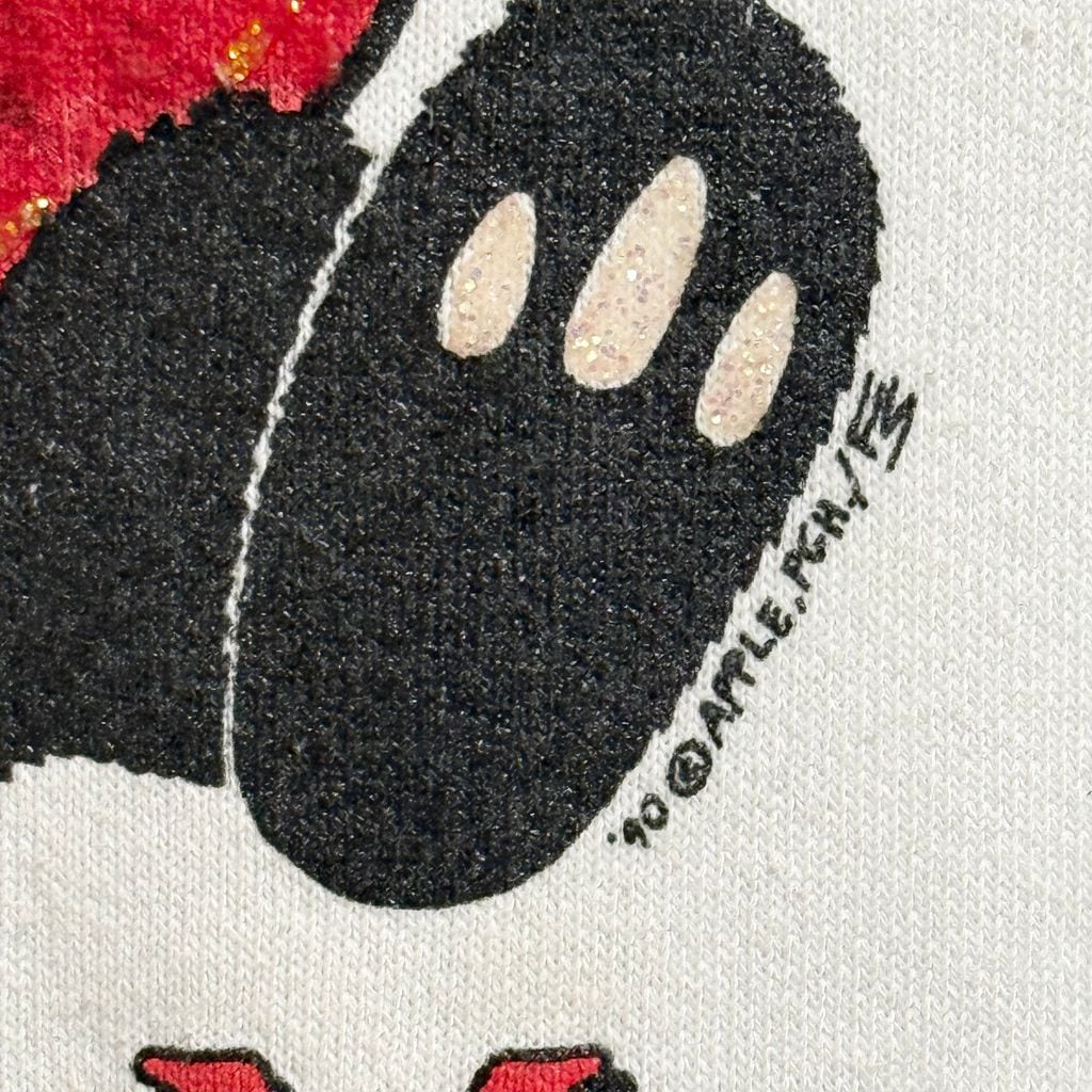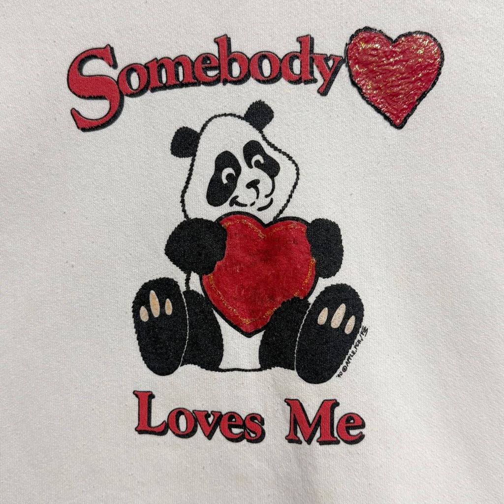 90's USA製 FRUIT OF THE LOOM フルーツオブザルーム パンダ アニマルプリント ハート ペイント キラキラ ラメ ラグランスウェット トレーナー 白 XLサイズ No.M268