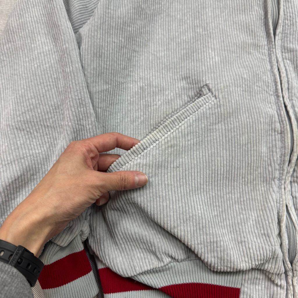 USA製 DeLONG APEX TALON ZIP 刺繍ロゴ コーデュロイジャケット グレー×レッド Lサイズ No.EA141
