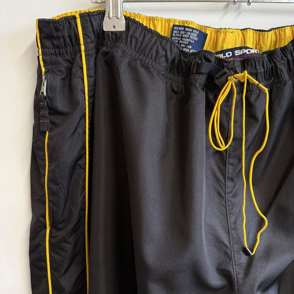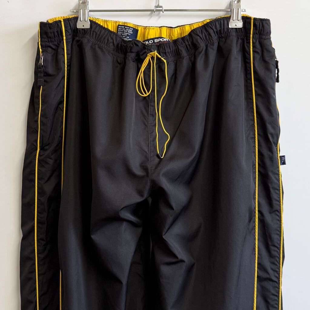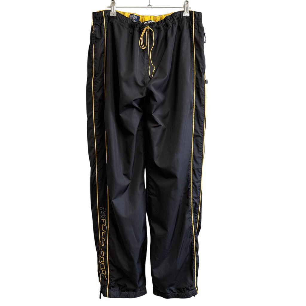 POLO SPORT ポロスポーツ RALPH LAUREN ラルフローレン トラックパンツ サイドジップ トレーニングパンツ ロゴプリント 裏地メッシュ 黒×黄色 XXLサイズ No.M275
