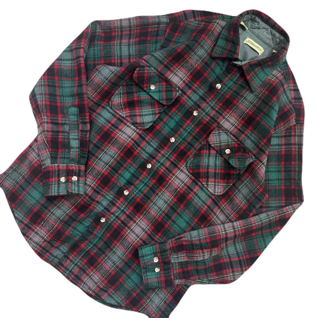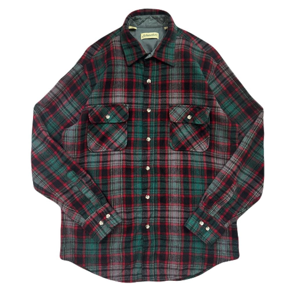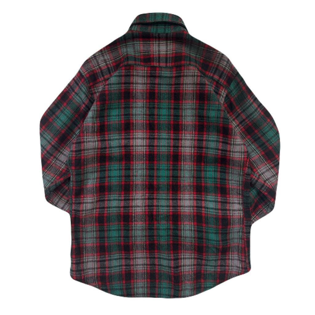 80s~ ST. JHON'S BAY セントジョンズベイ チェック柄 ウールシャツ 長袖シャツ 緑×黒×赤 Lサイズ No.EA143