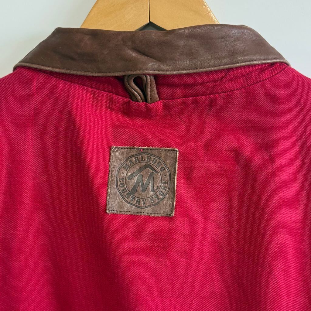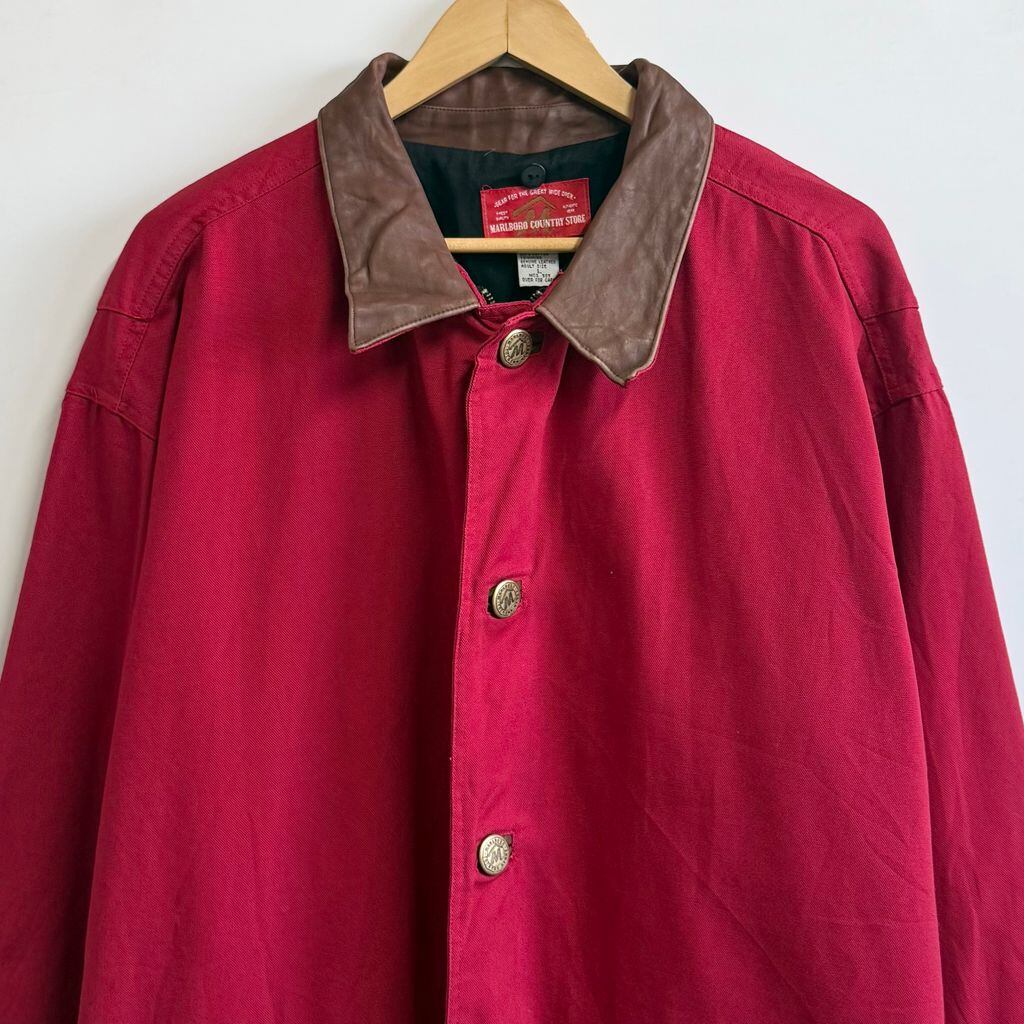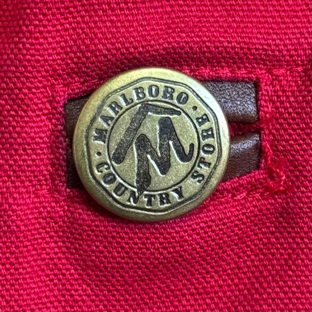 MARLBORO COUNTRY STORE マルボロ カバーオール 襟レザー ハンティングジャケット風 コットンキャンバスコート 赤 レッド Lサイズ No.M284