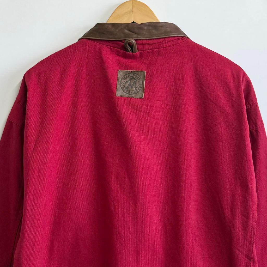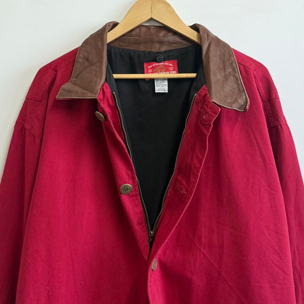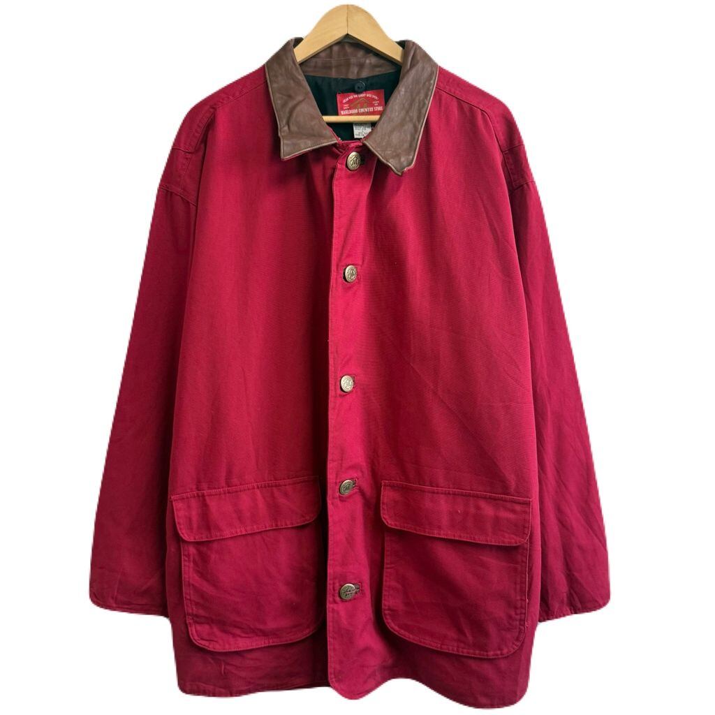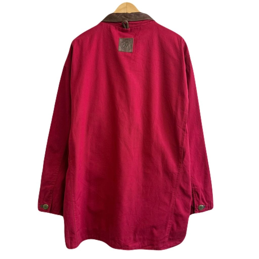 MARLBORO COUNTRY STORE マルボロ カバーオール 襟レザー ハンティングジャケット風 コットンキャンバスコート 赤 レッド Lサイズ No.M284