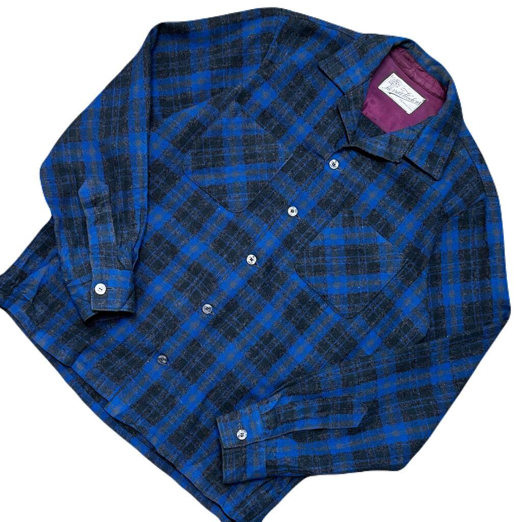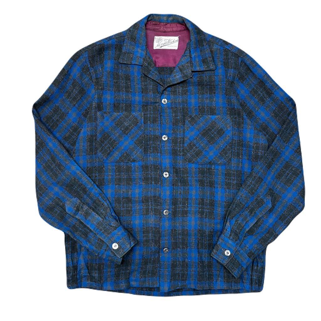 60s~ Merrill Woolens vintage メリルウーレンズ チェック柄 ウールシャツ 長袖シャツ 青×黒 No.EA154