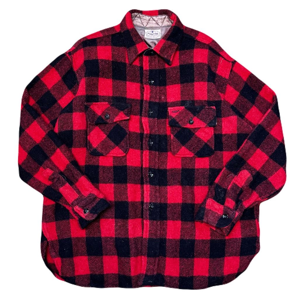 50s Pilgrim vintage ピルグリム ヴィンテージ チェック柄 ウールシャツ 長袖シャツ 赤×黒 No.EA155