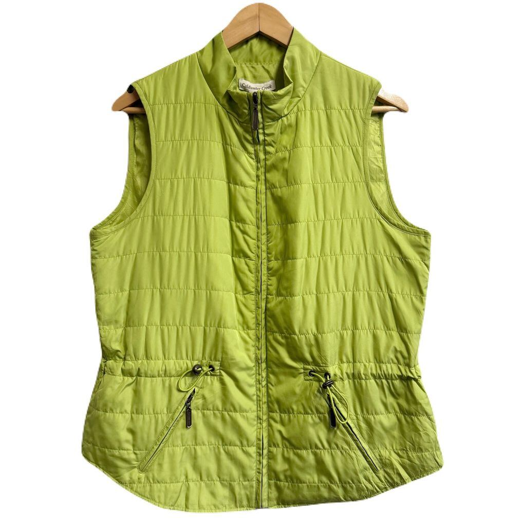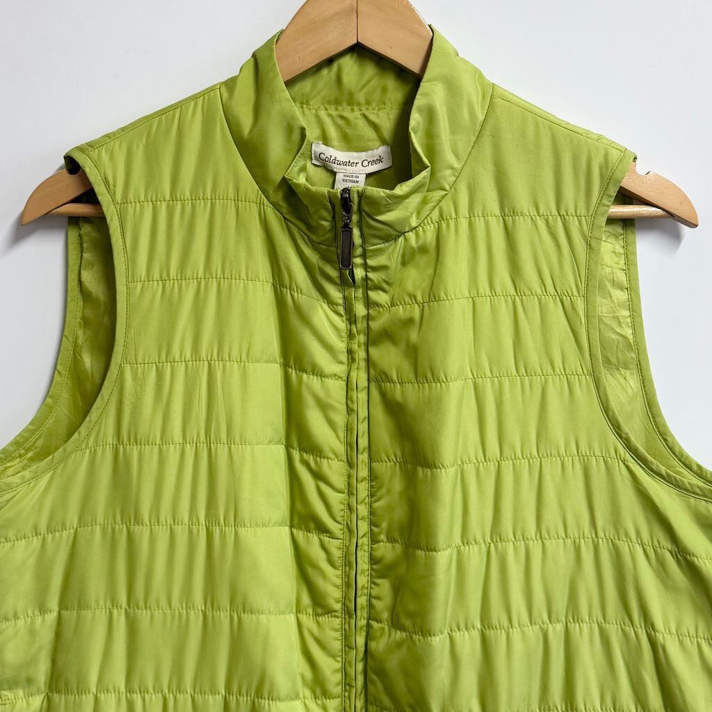 Coldwater Creek コールドウォータークリーク キルティングベスト フルジップ ポケット付き ライムグリーン Mサイズ No.M298