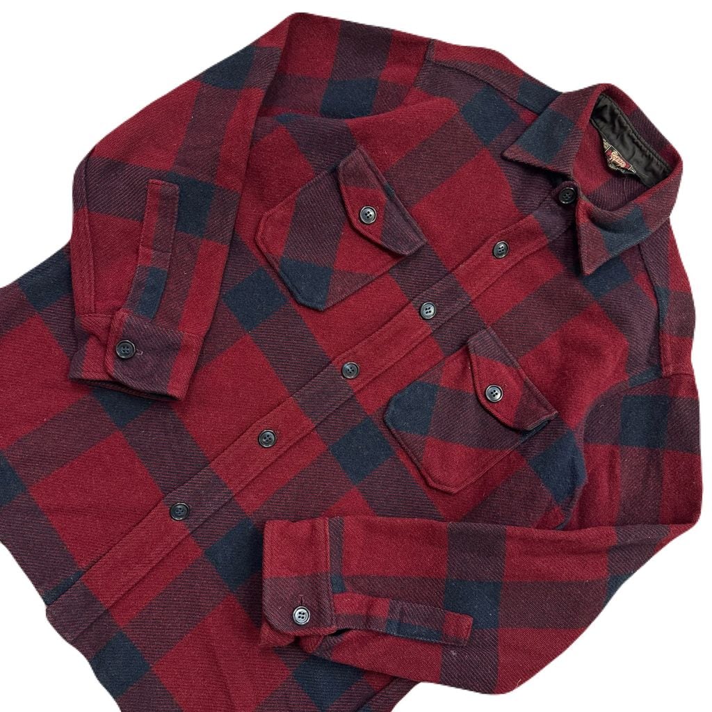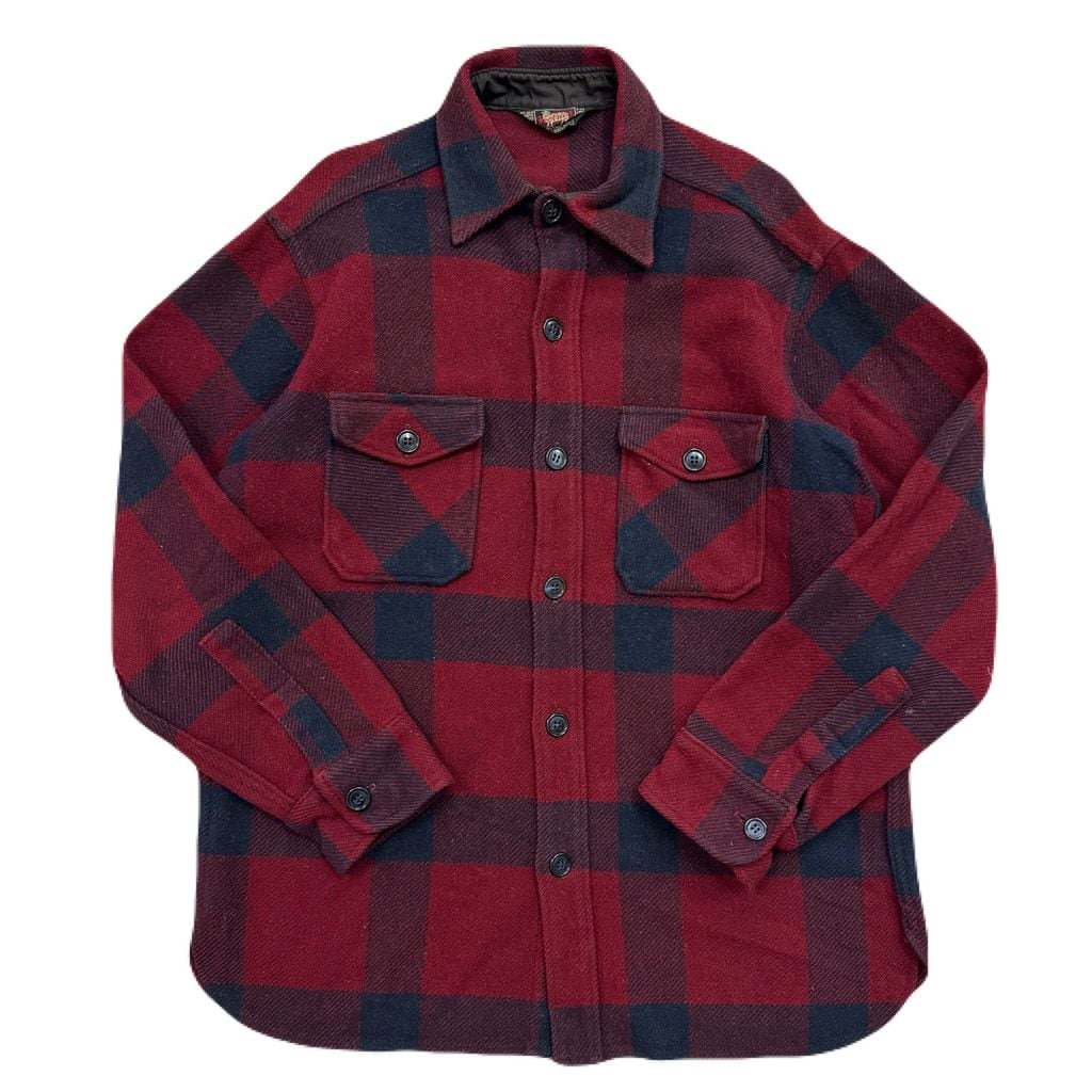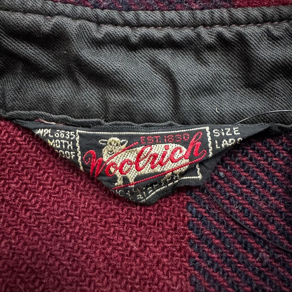 50s~ 黒タグ WOOLRICH ウールリッチ チェック柄 ウールシャツ 長袖シャツ バーガンディ×ネイビー Lサイズ No.EA166
