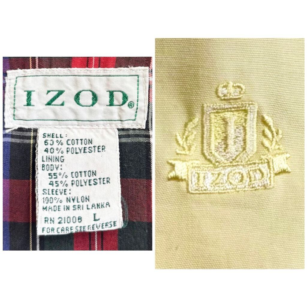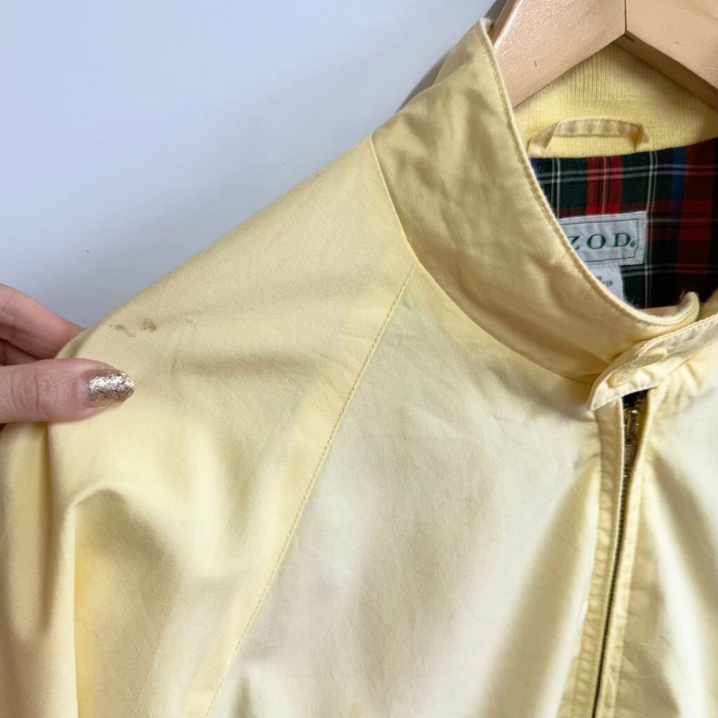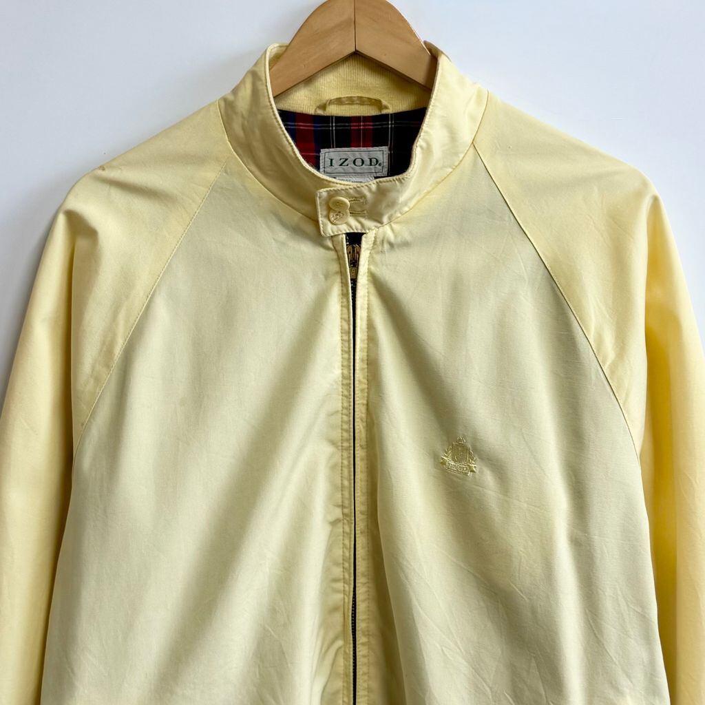 IZOD スイングトップ ハリントンジャケット 裏地チェック柄 ワンポイントロゴ 刺繍 ライトイエロー レモンイエロー Lサイズ No.M310