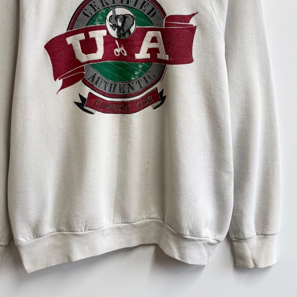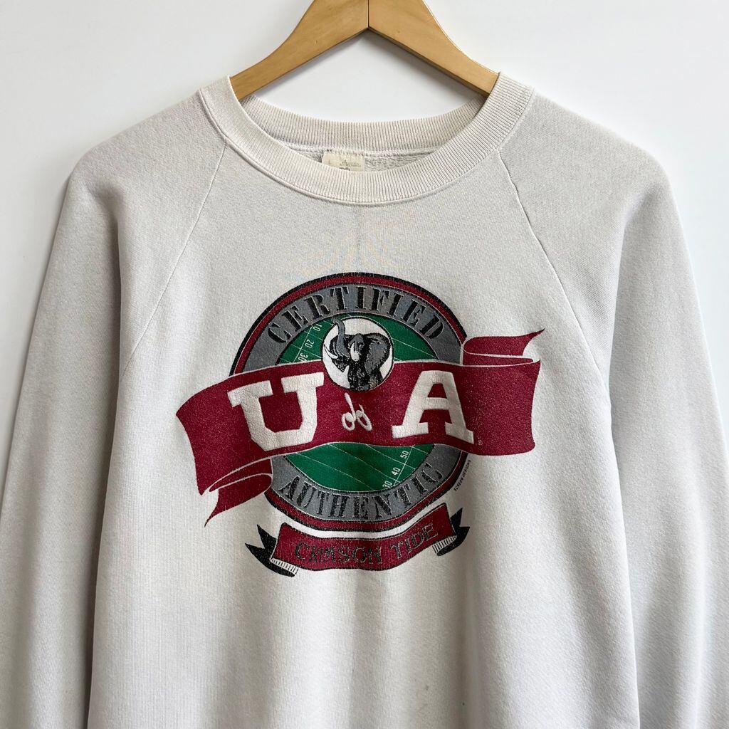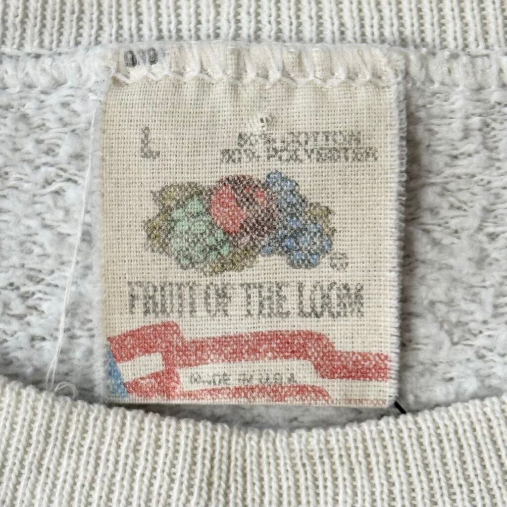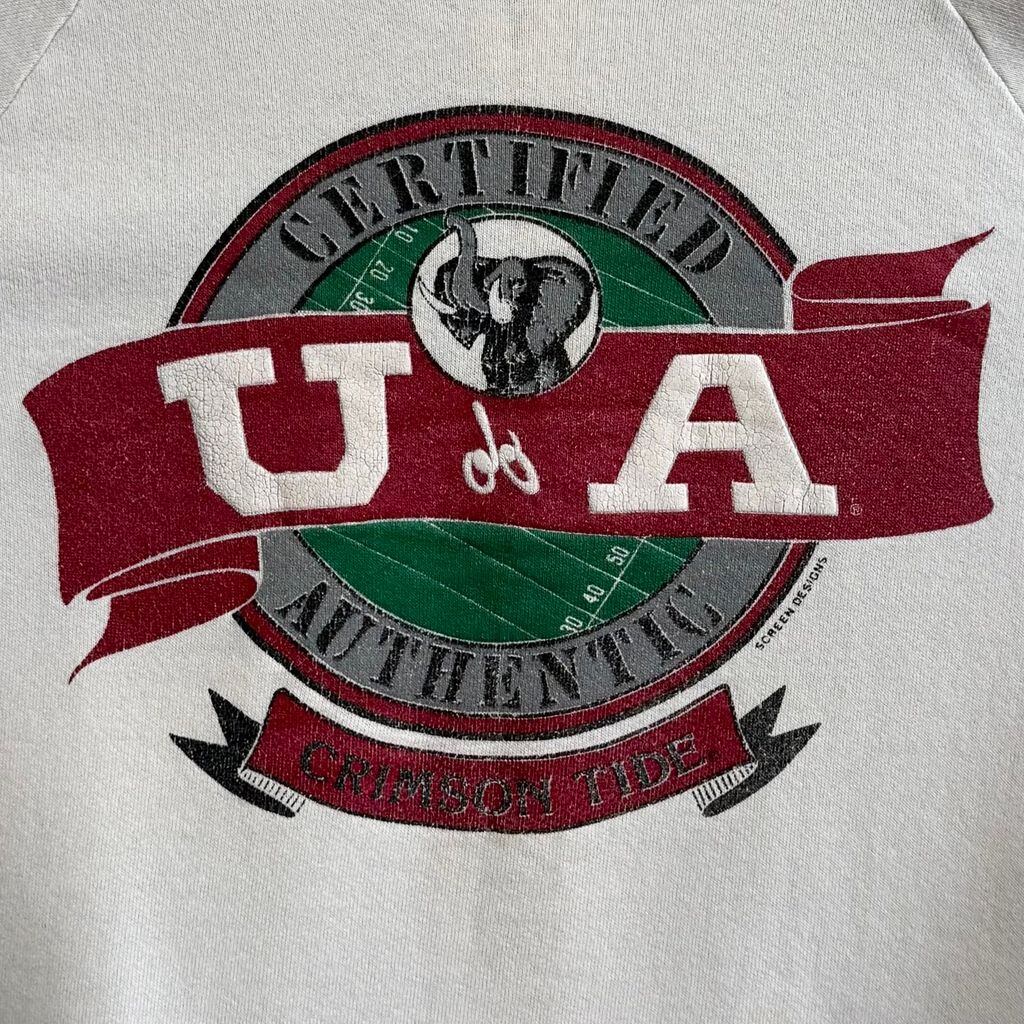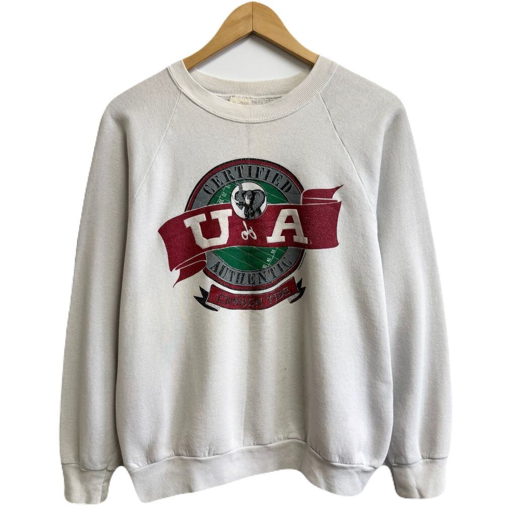 〜90's vintage ビンテージ USA製 FRUIT OF THE LOOM フルーツオブザルーム クリムゾンタイド 象 エレファント アニマルプリント ラグランスウェット トレーナー 白 Lサイズ No.M313