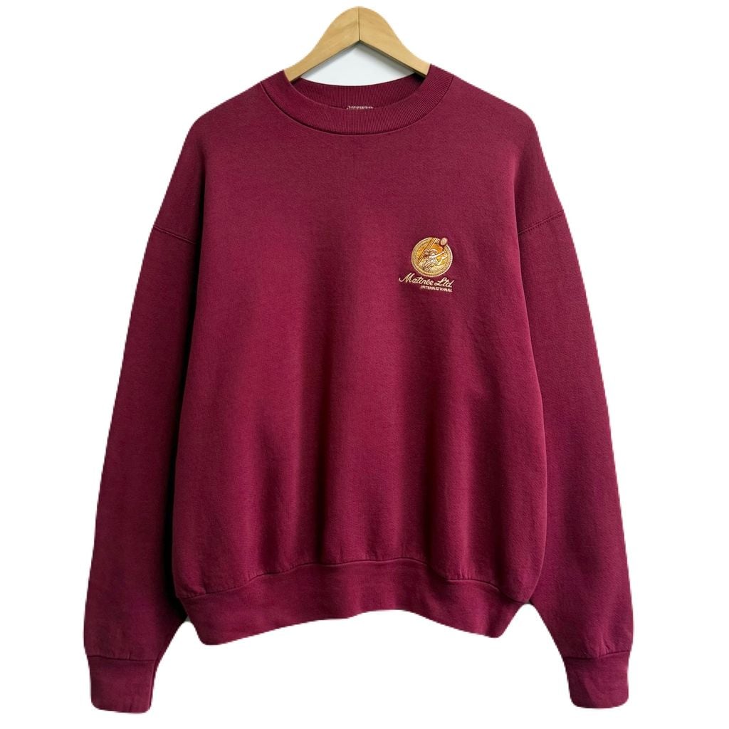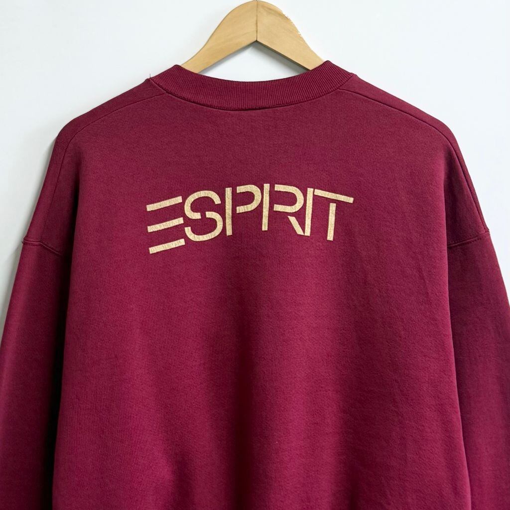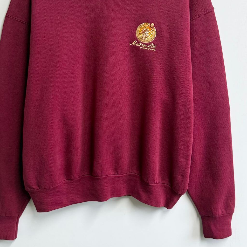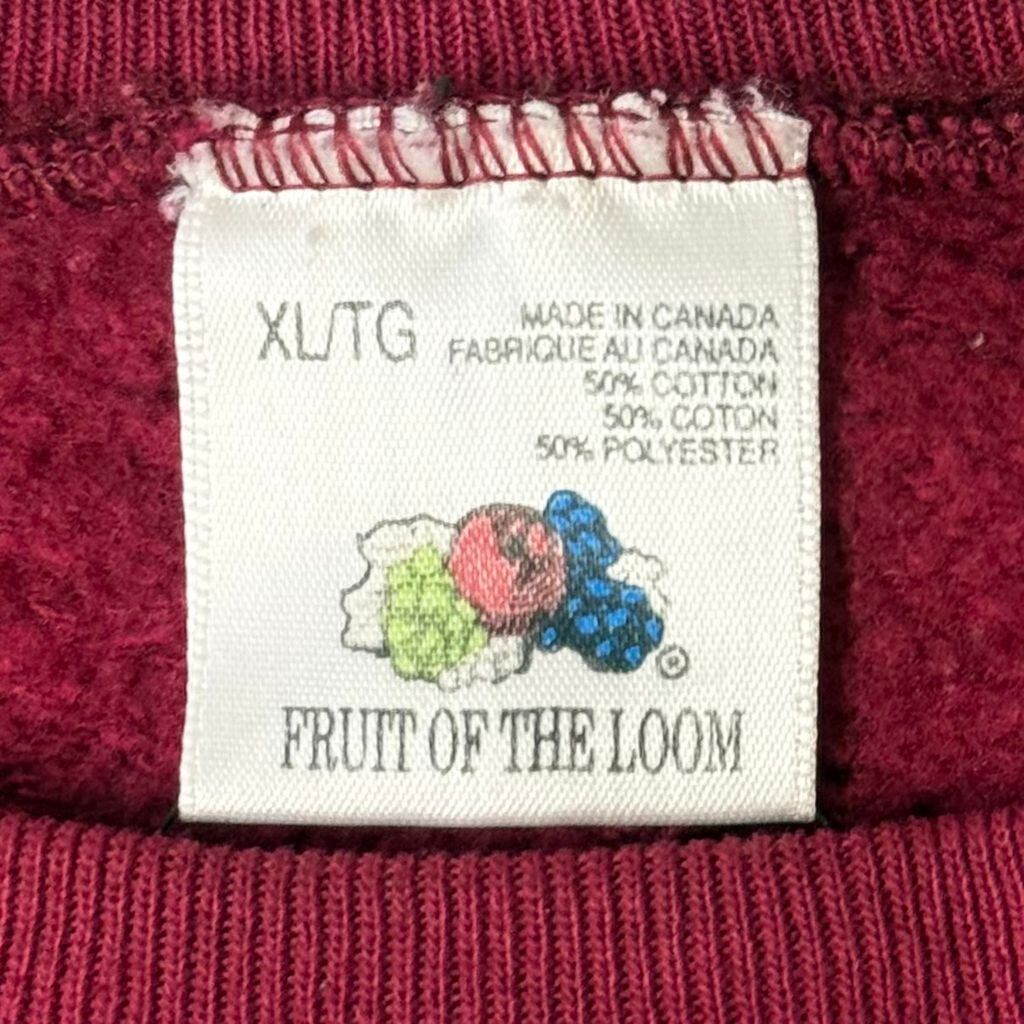 80's〜 vintage ビンテージ カナダ製 FRUIT OF THE LOOM フルーツオブザルーム テニス 刺繍 ESPRIT エスプリ バックプリント トレーナー スウェット ワインレッド XLサイズ No.M316