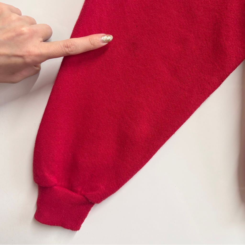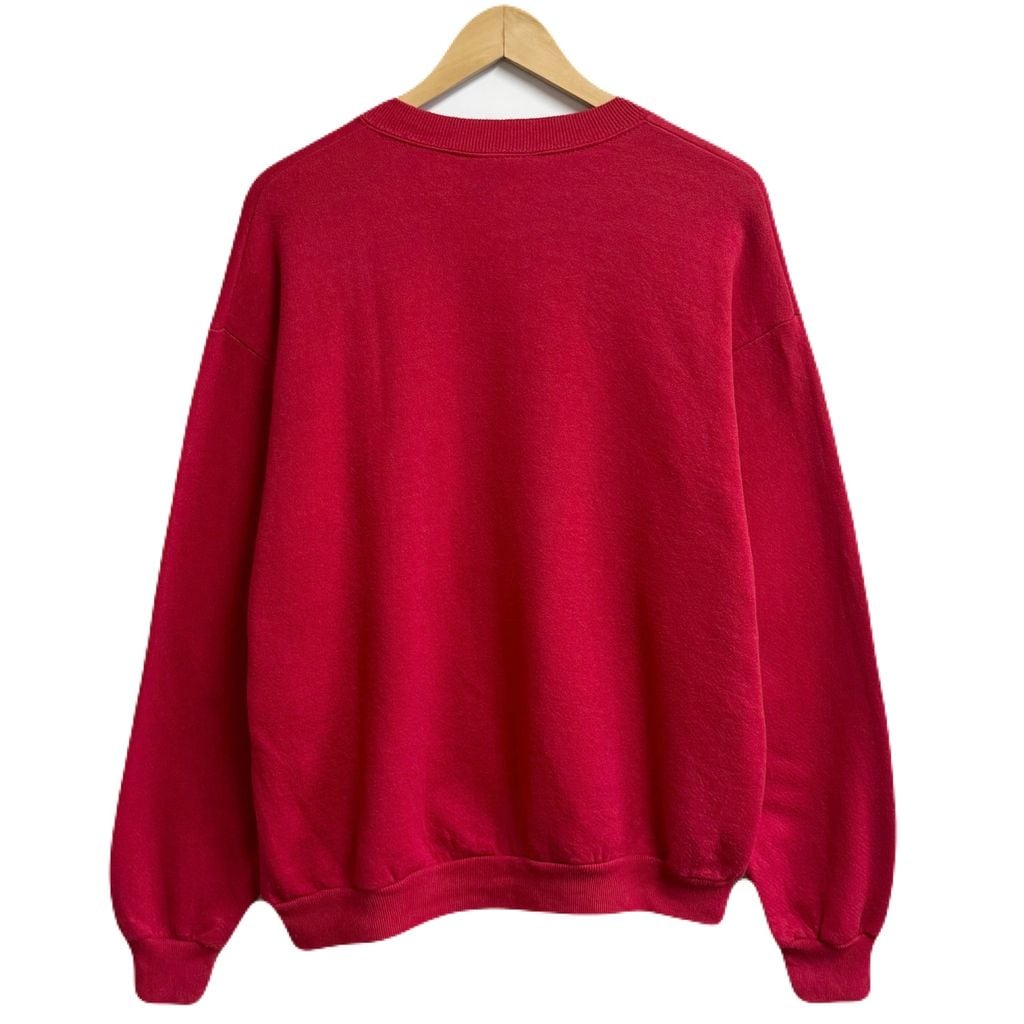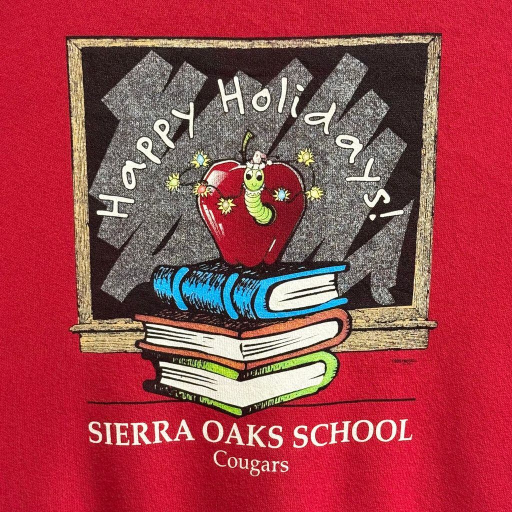 90's vintage ビンテージ USA製 Lee リー フロントプリント りんご イモムシ 本 黒板 アメカジ トレーナー スウェット 裏起毛 赤 レッド Lサイズ No.M318