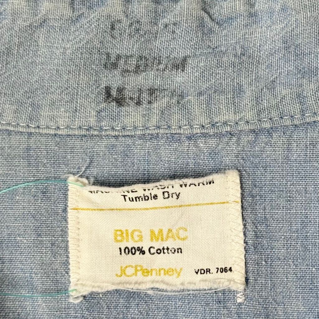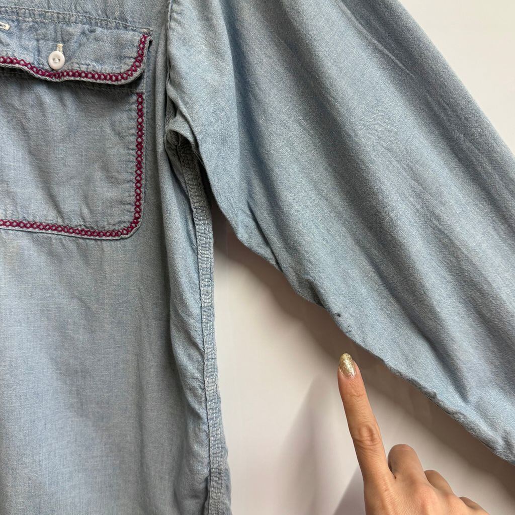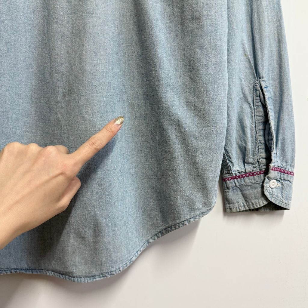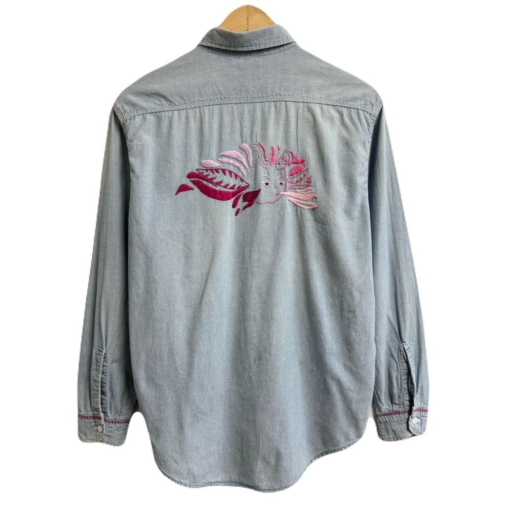 BIG MAC ビッグマック シャンブレーシャツ 花 モチーフ アート 刺繍 コットンシャツ ポケット付き 長袖シャツ ライトブルー 青 Mサイズ No.M319