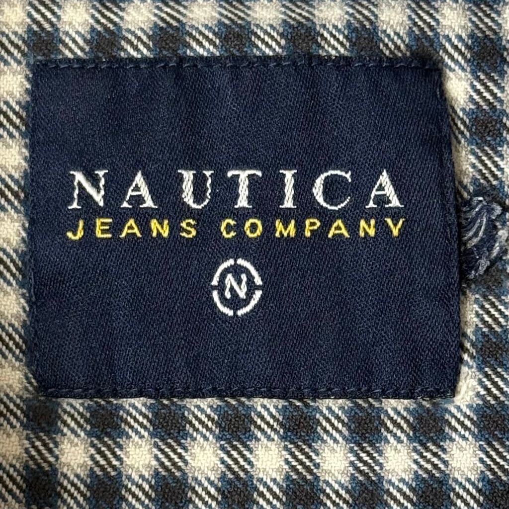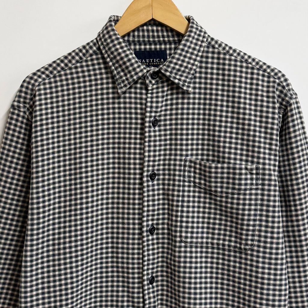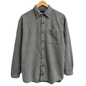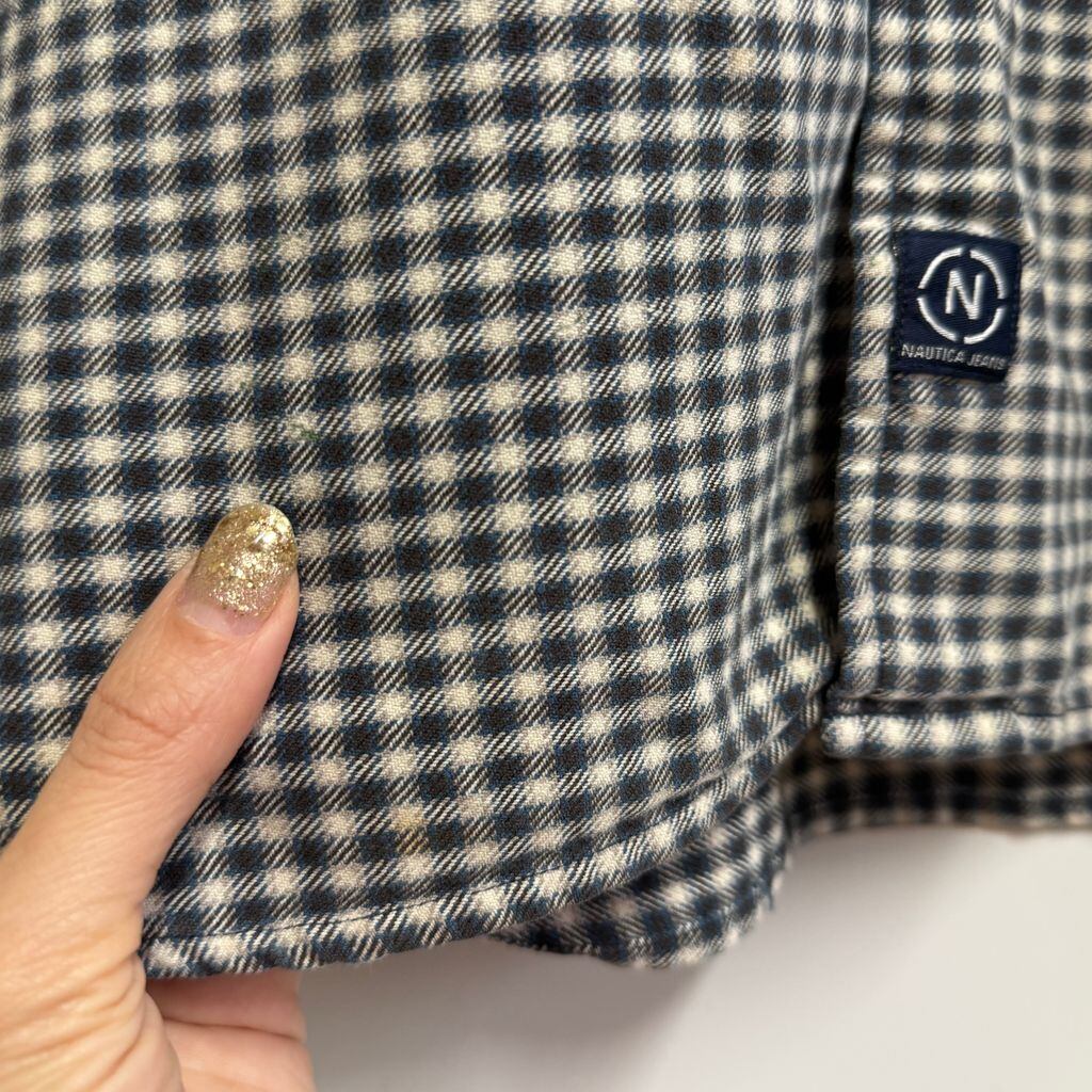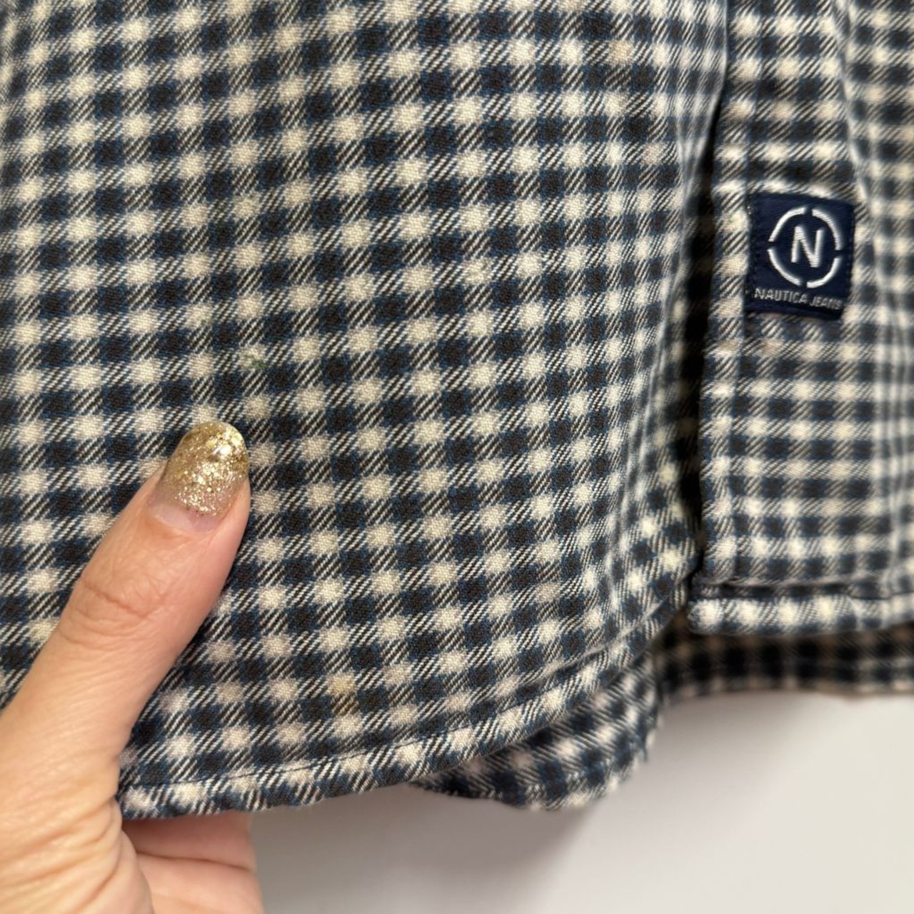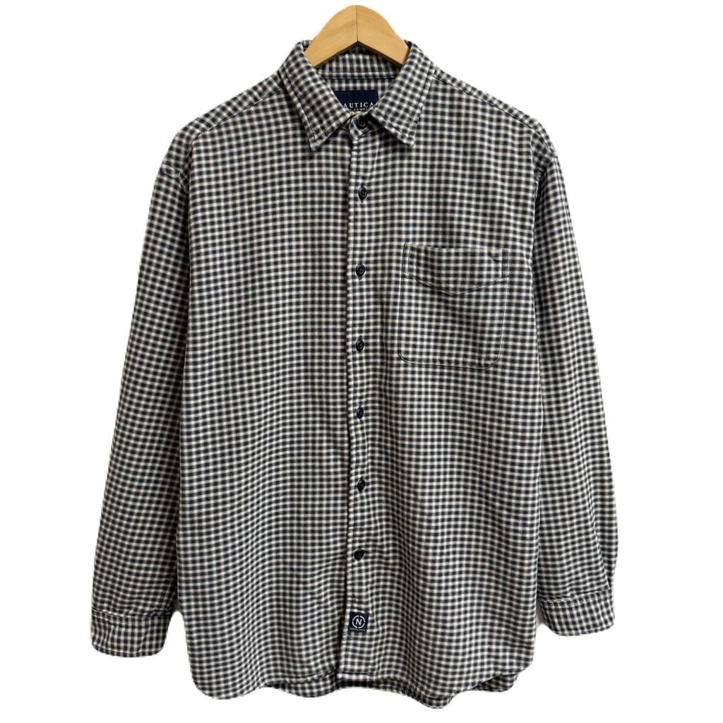 NAUTICA ノーティカ マイクロオンブレ チェック柄 ポケット付き 長袖シャツ 黒×白×青×ライトグレー No.M320