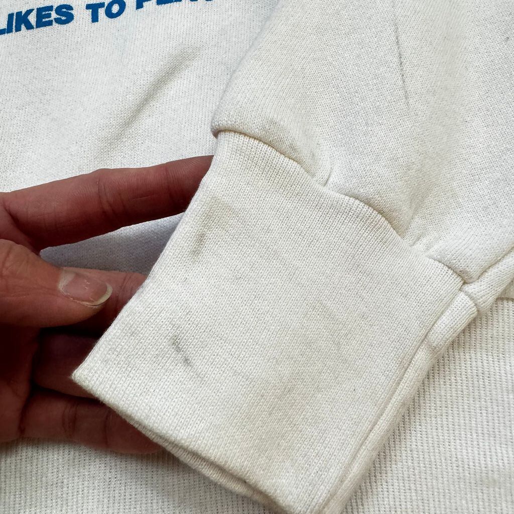 USA製 90s FRUIT OF THE LOOM playmobil フルーツオブザルーム プレイモービル キャラクター ラグランスウェット トレーナー 白 XLサイズ No.EA170