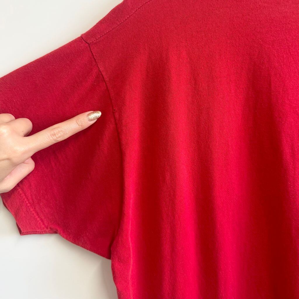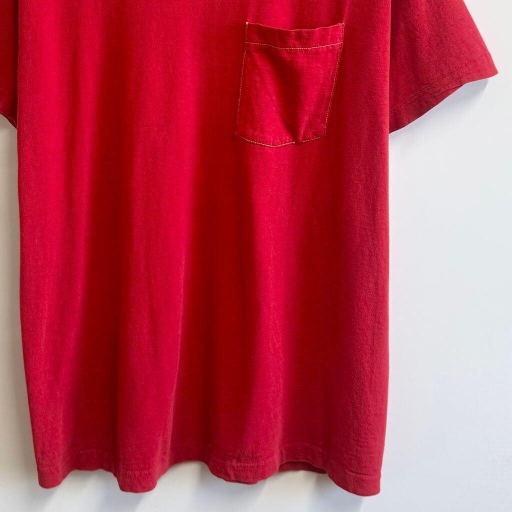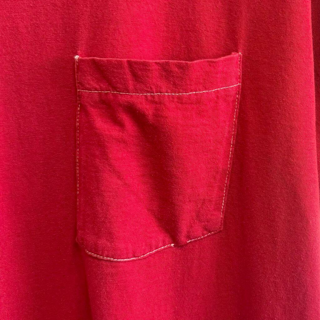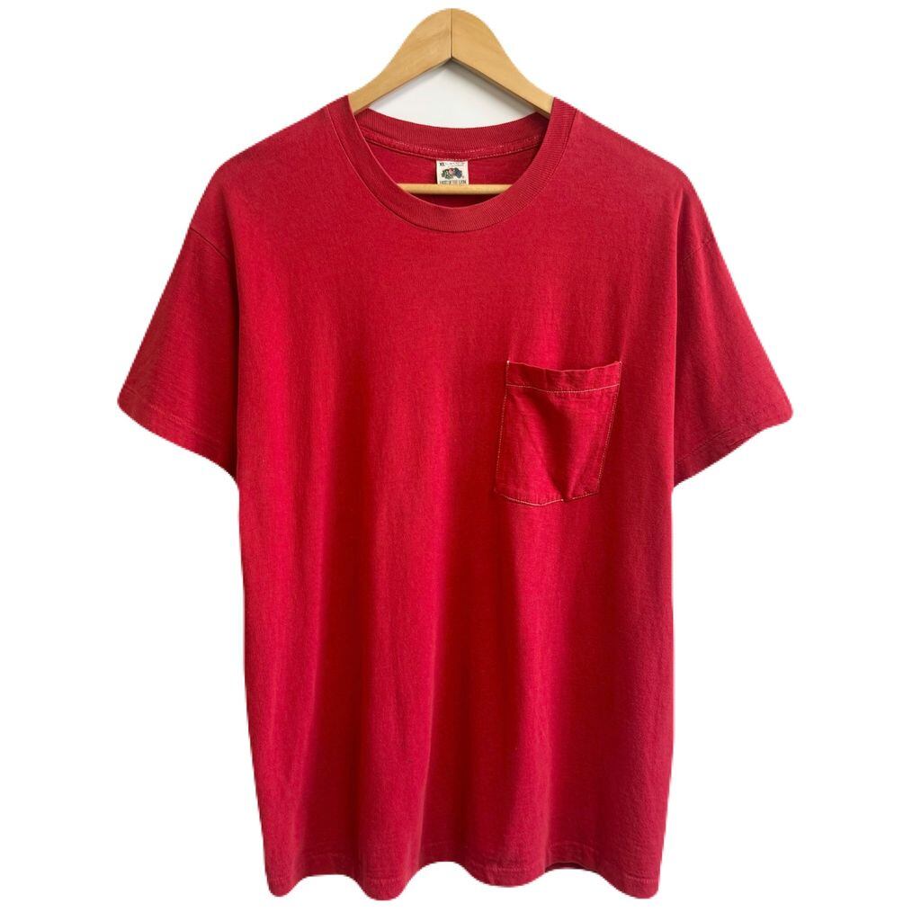 USA製 FRUIT OF THE LOOM フルーツオブザルーム 無地 胸ポケット付き シングルステッチ 半袖Tシャツ 赤 レッド XLサイズ No.M333