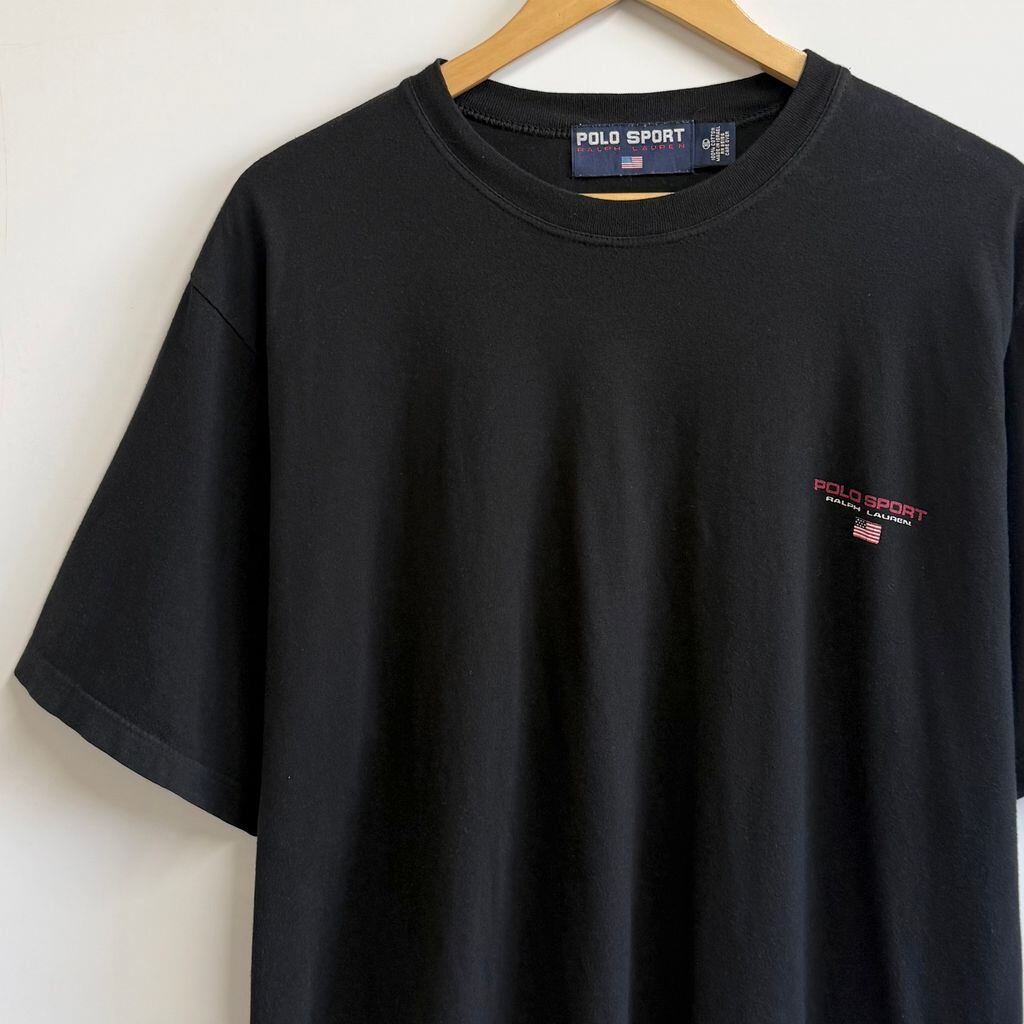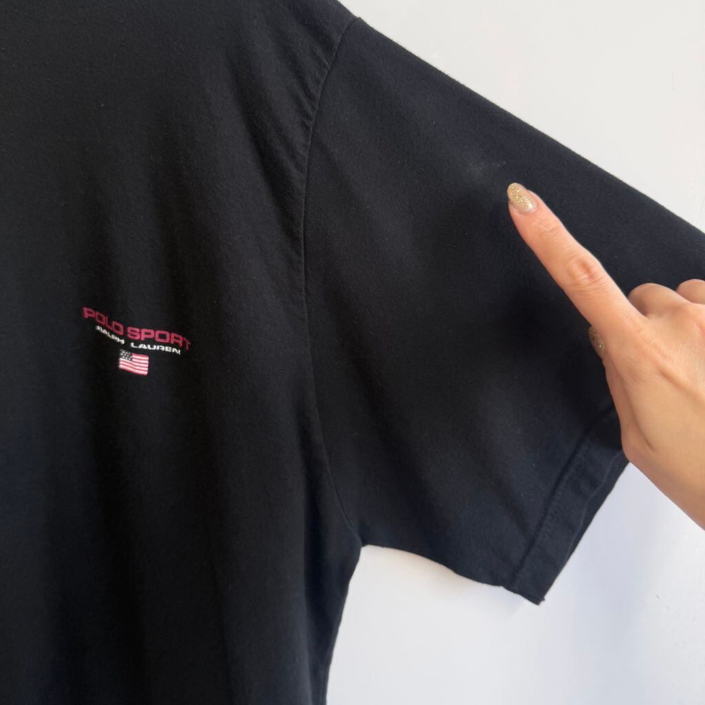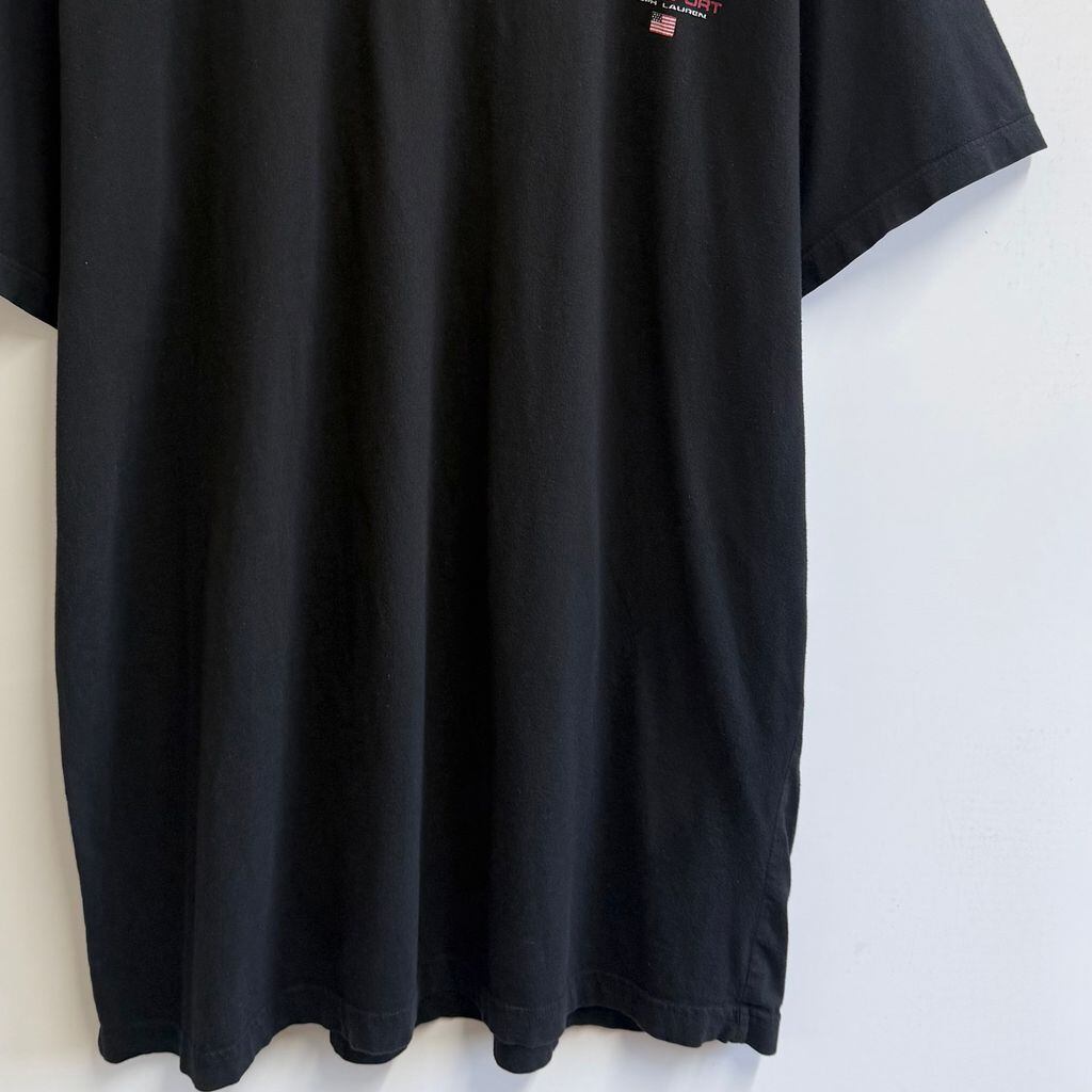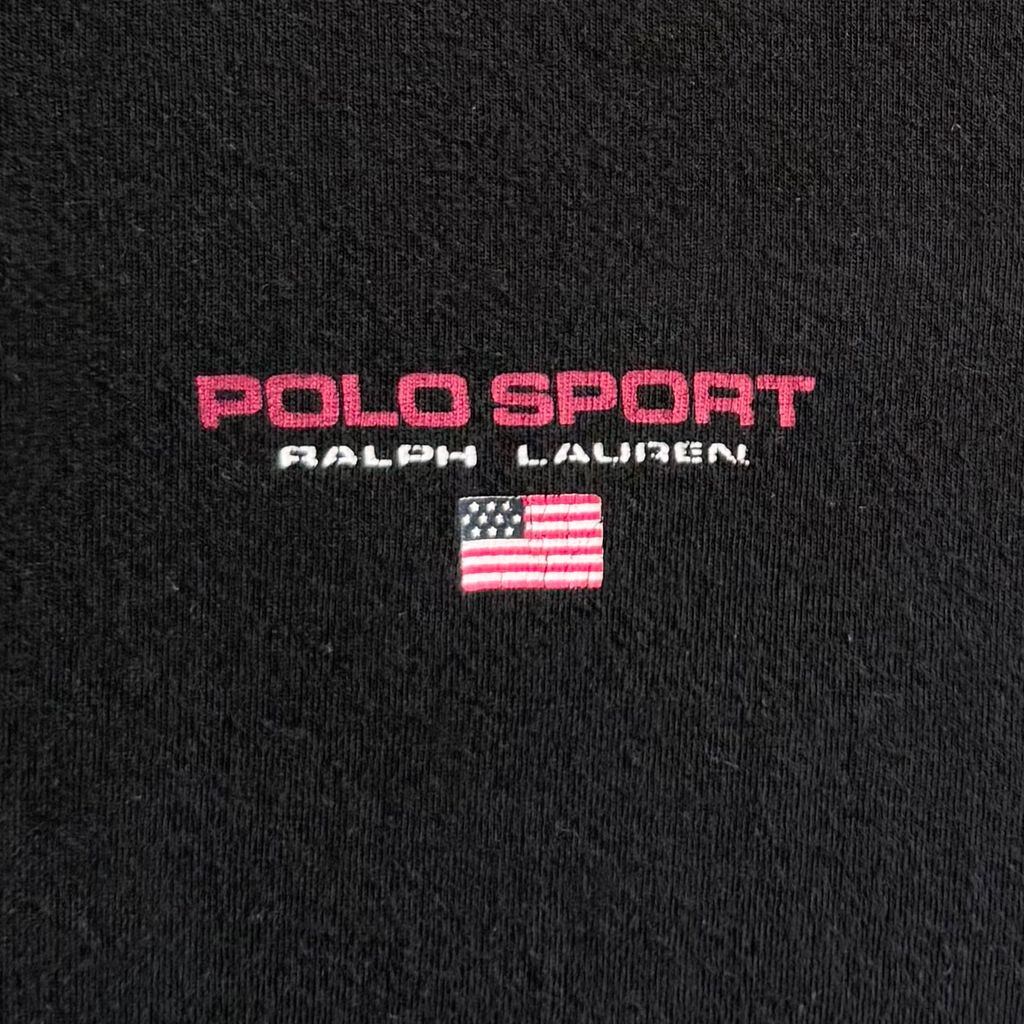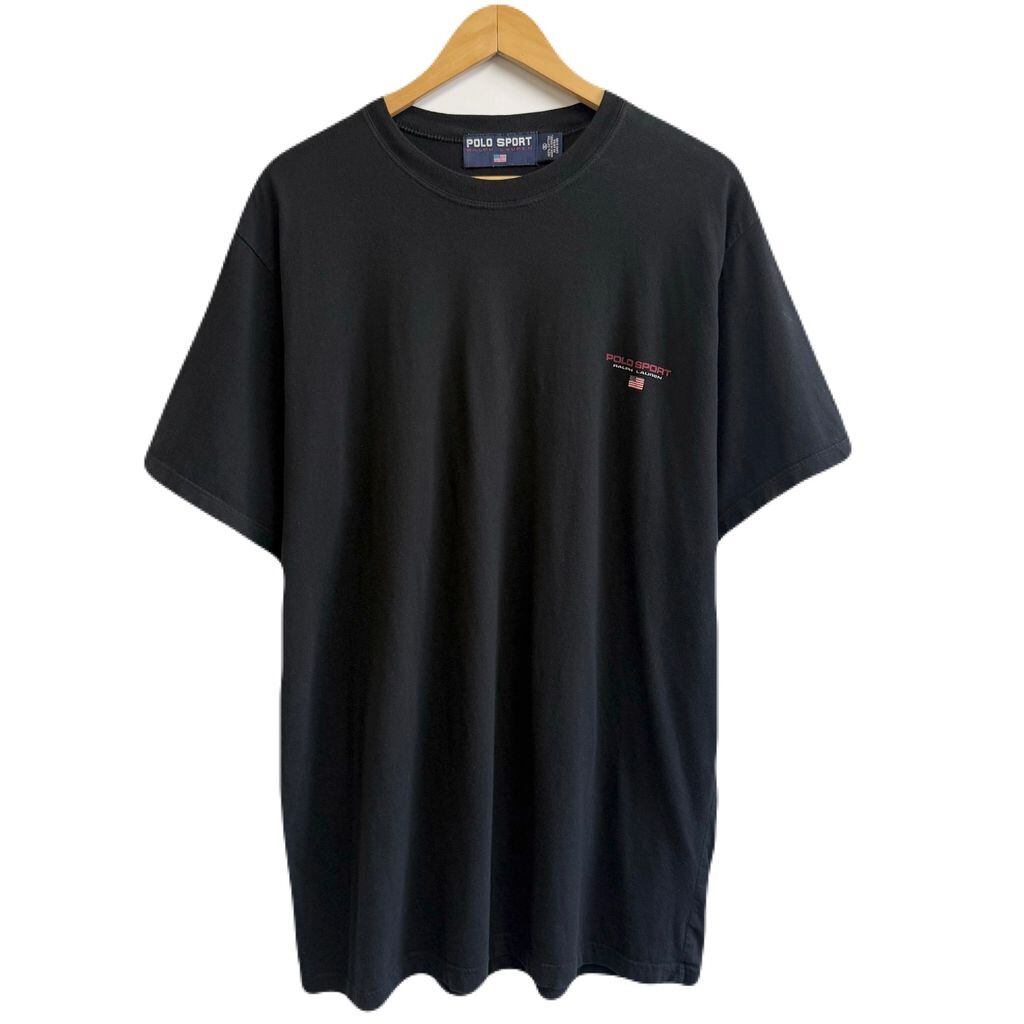 POLO SPORT ポロスポーツ RALPH LAUREN ラルフローレン ロゴプリント 星条旗 半袖Tシャツ 黒 ブラック XLサイズ No.M337