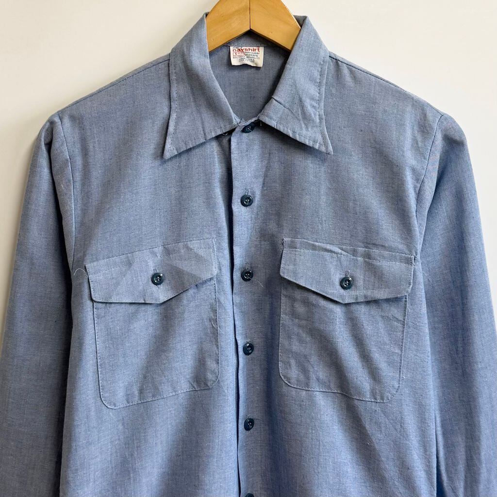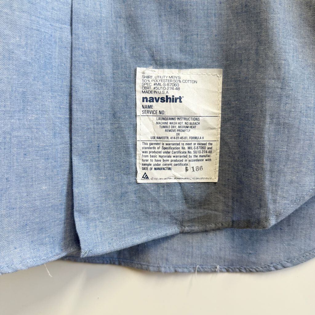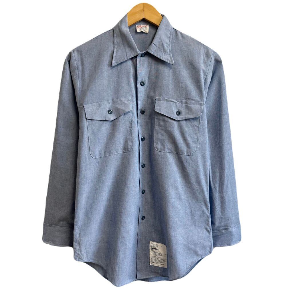 USA製 U.S. NAVY navshirt シャンブレーシャツ ユーティリティシャツ ライトブルー 青 Sサイズ No.M342