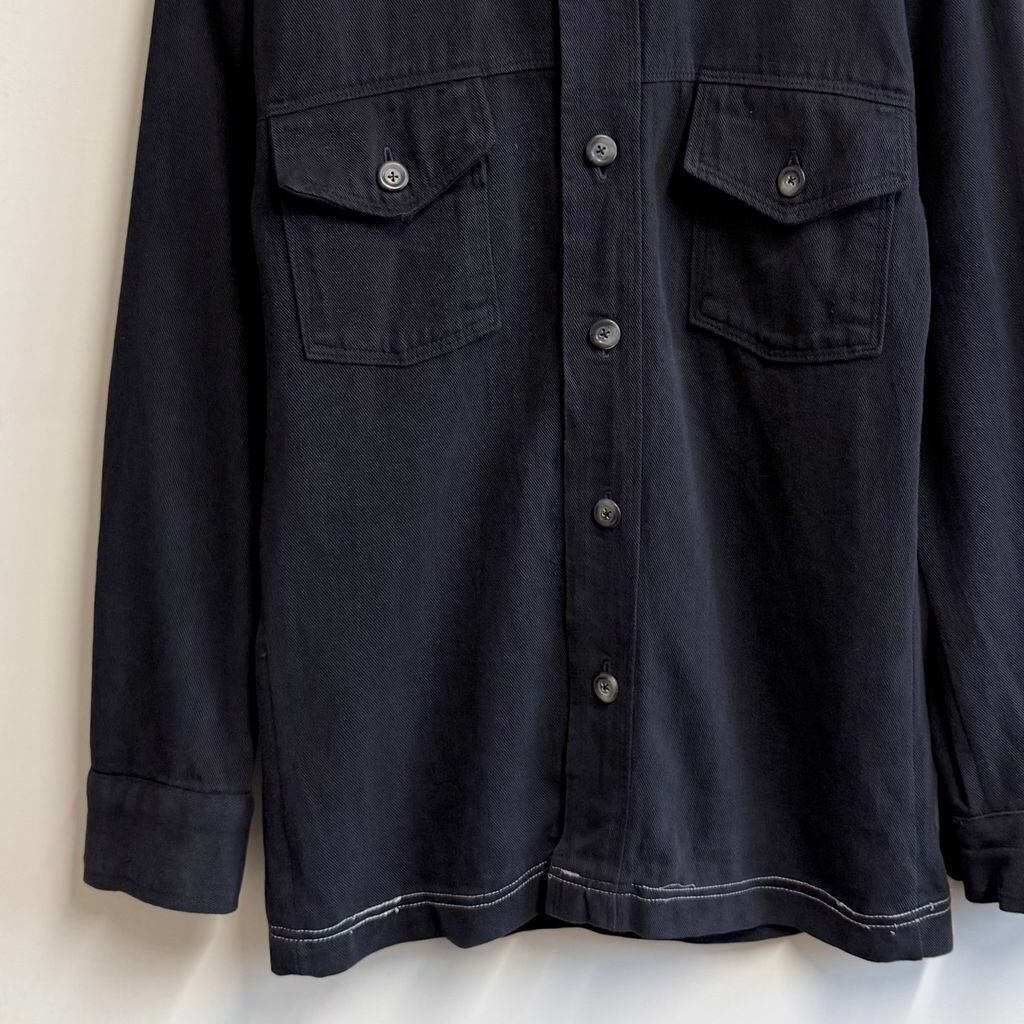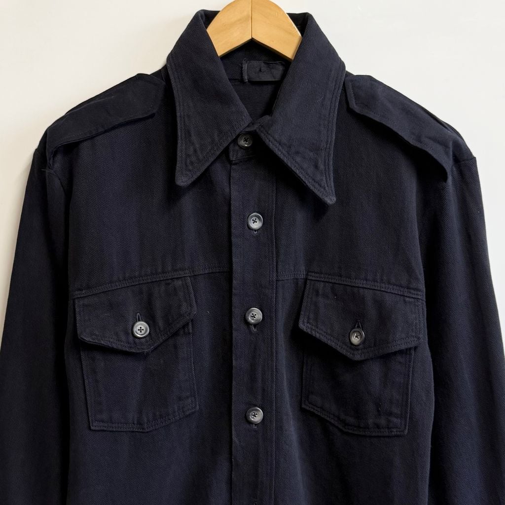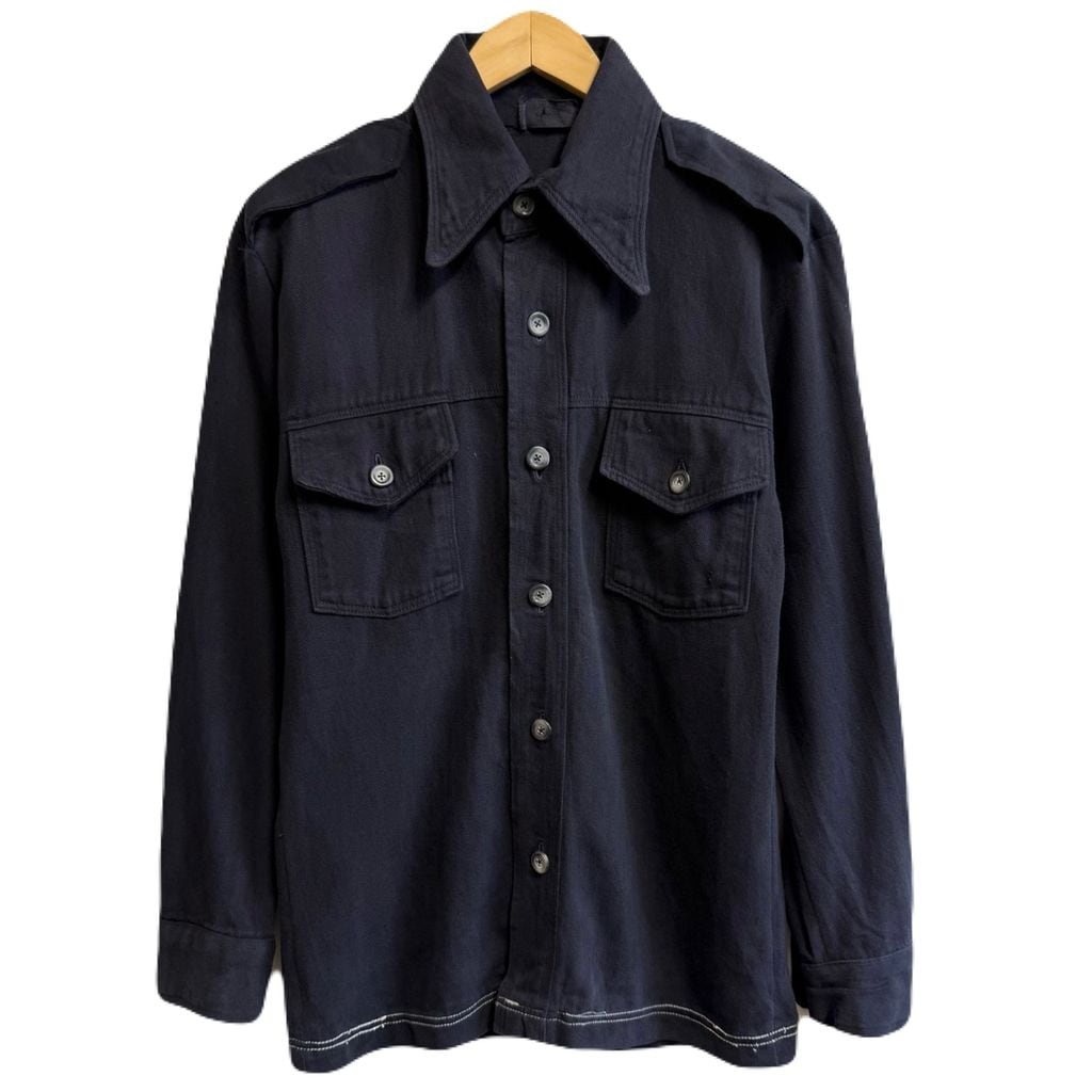 エポレット 無地 ポケット付き 長袖シャツ 紺 ネイビー No.M346