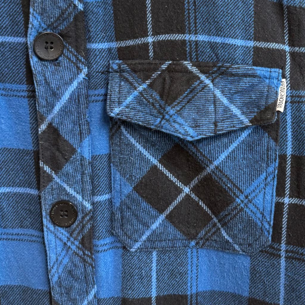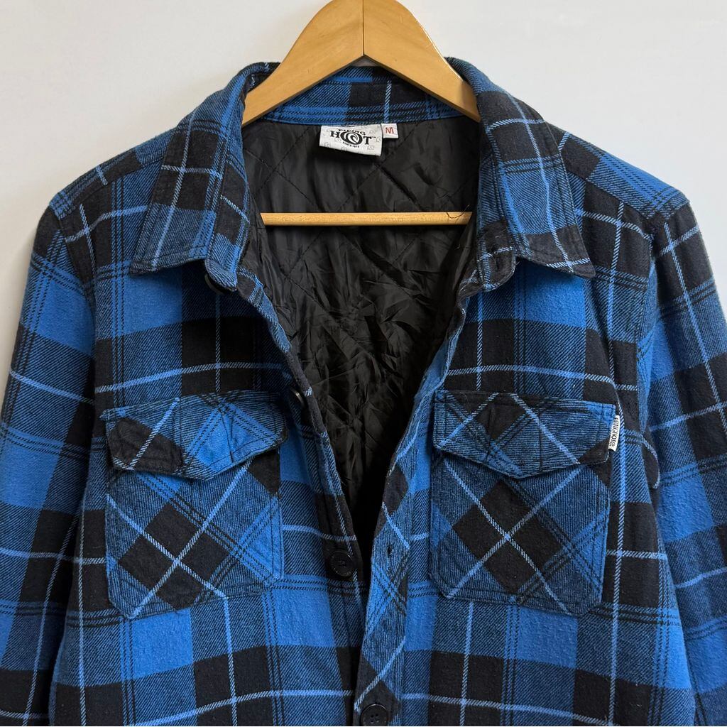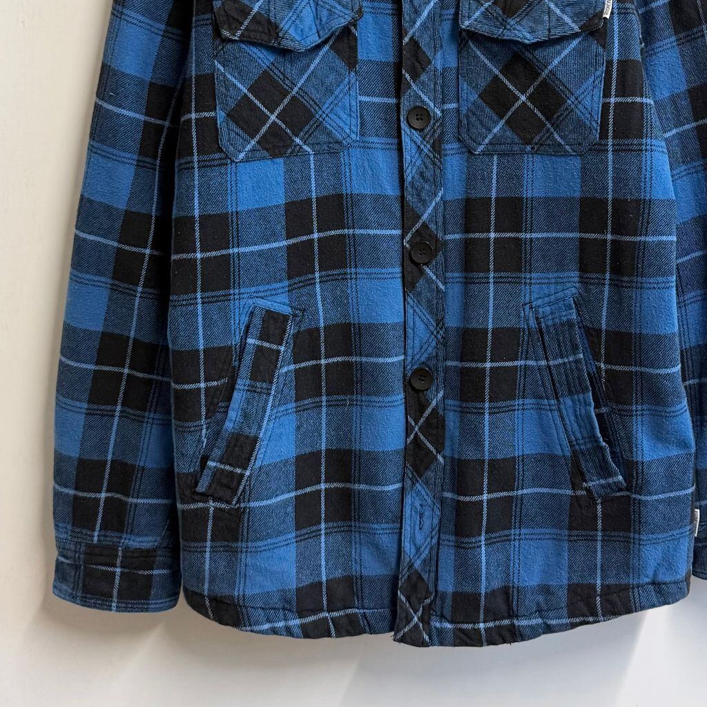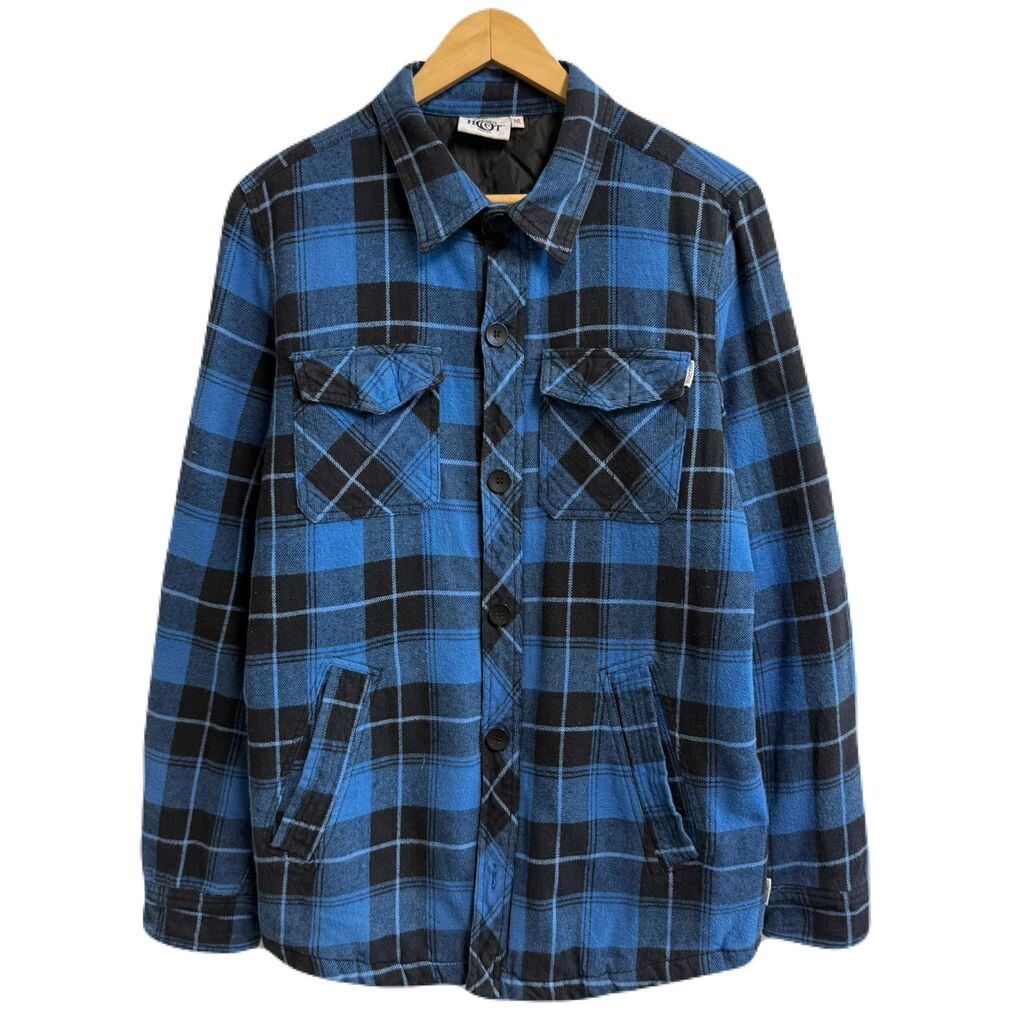 PIPING HOT パイピングホット シャツジャケット キルティング裏地 チェック柄 ポケット付き 厚手長袖シャツ 青×黒 Mサイズ No.M348