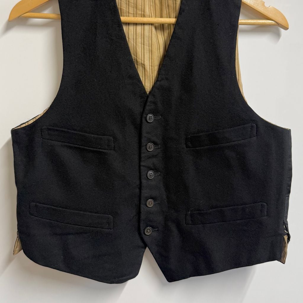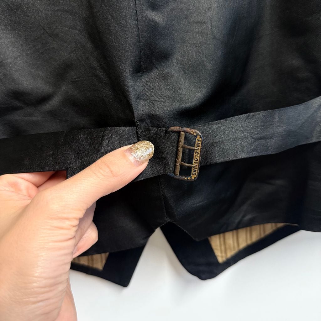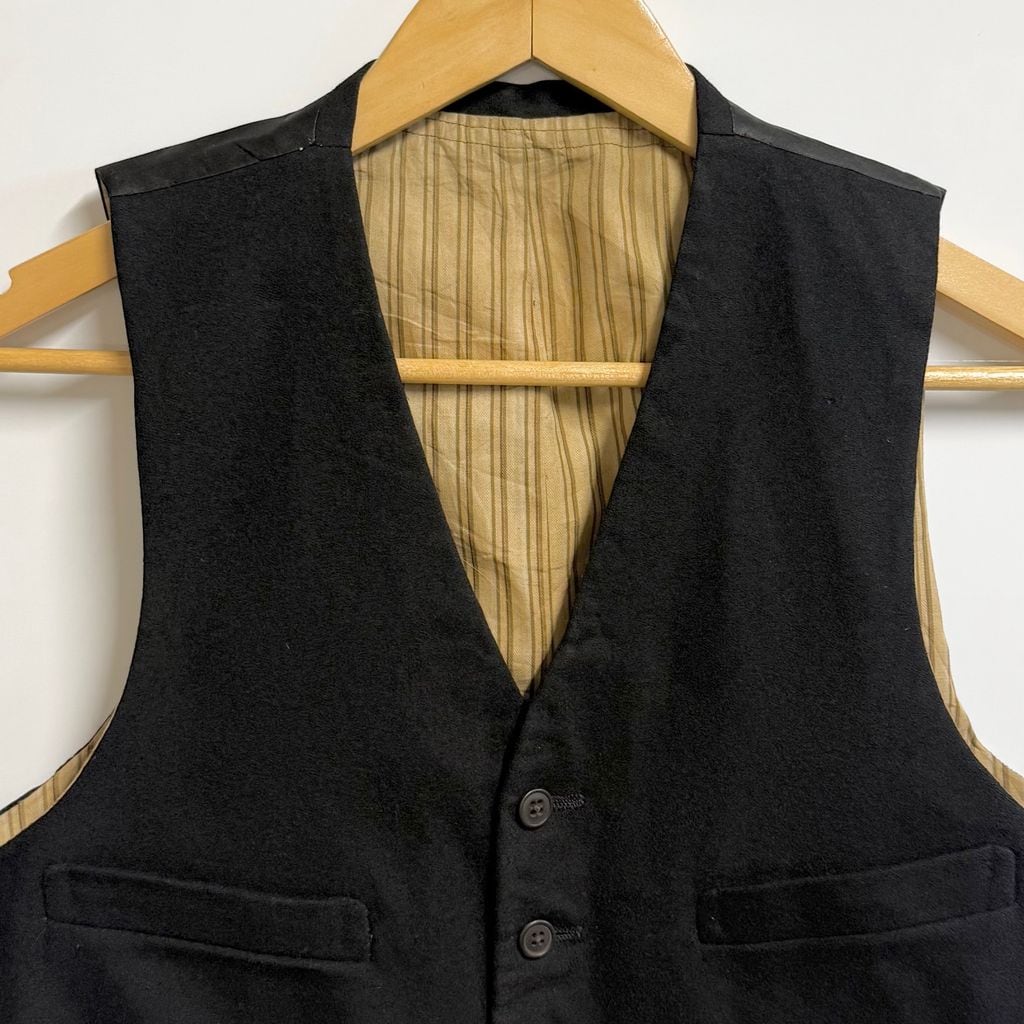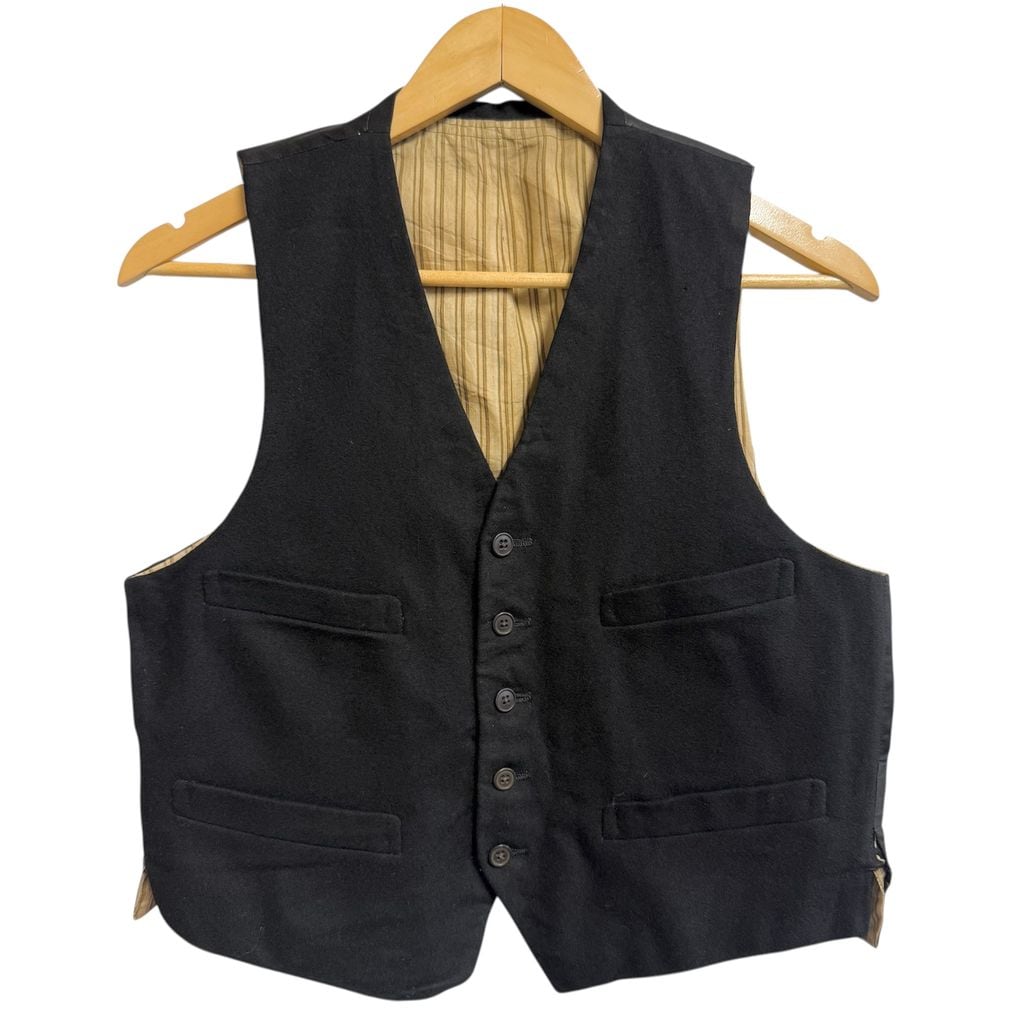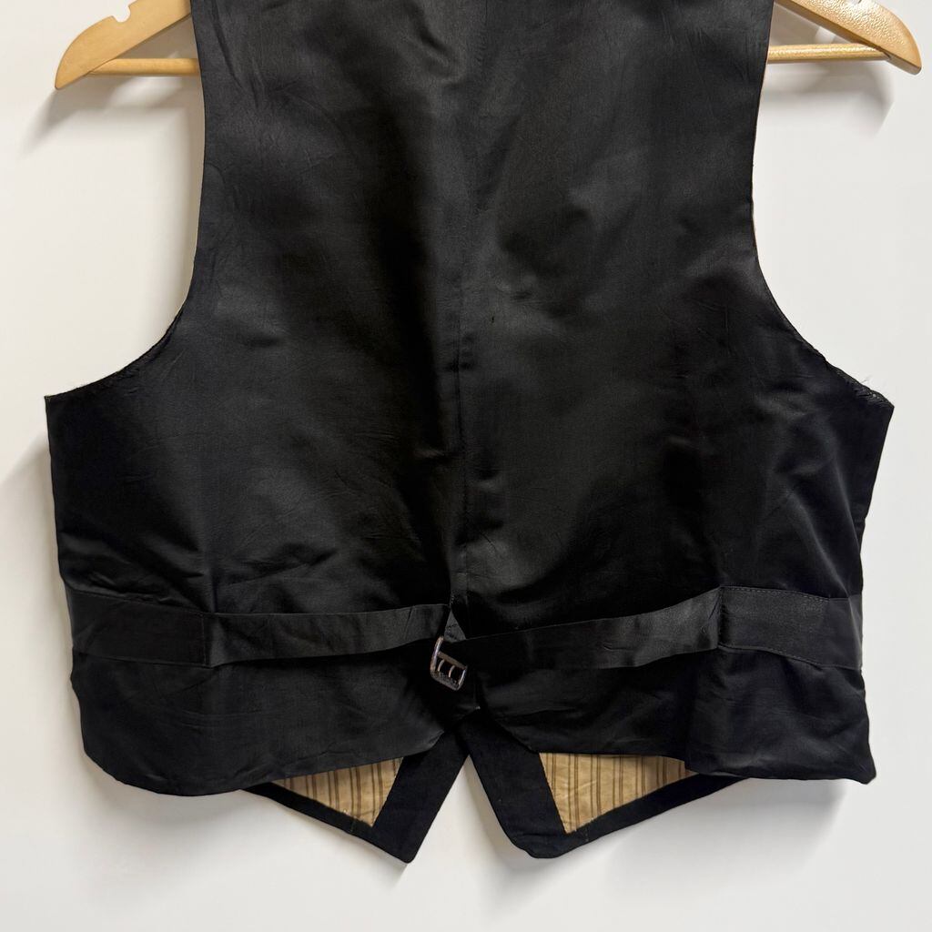 1920's〜 vintage ビンテージ ジレ ベスト 切り替えデザイン 無地 フロントボタン 黒 No.M351