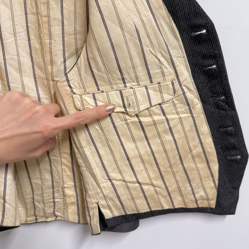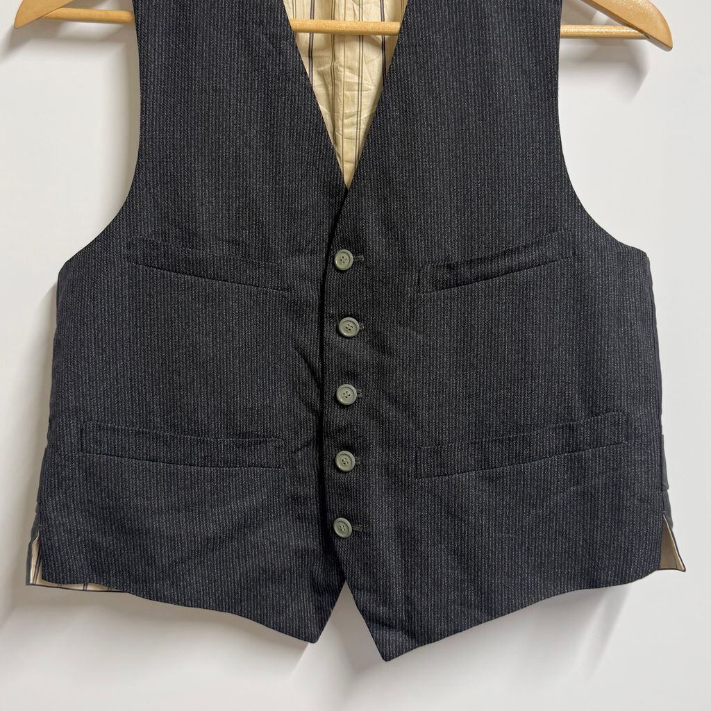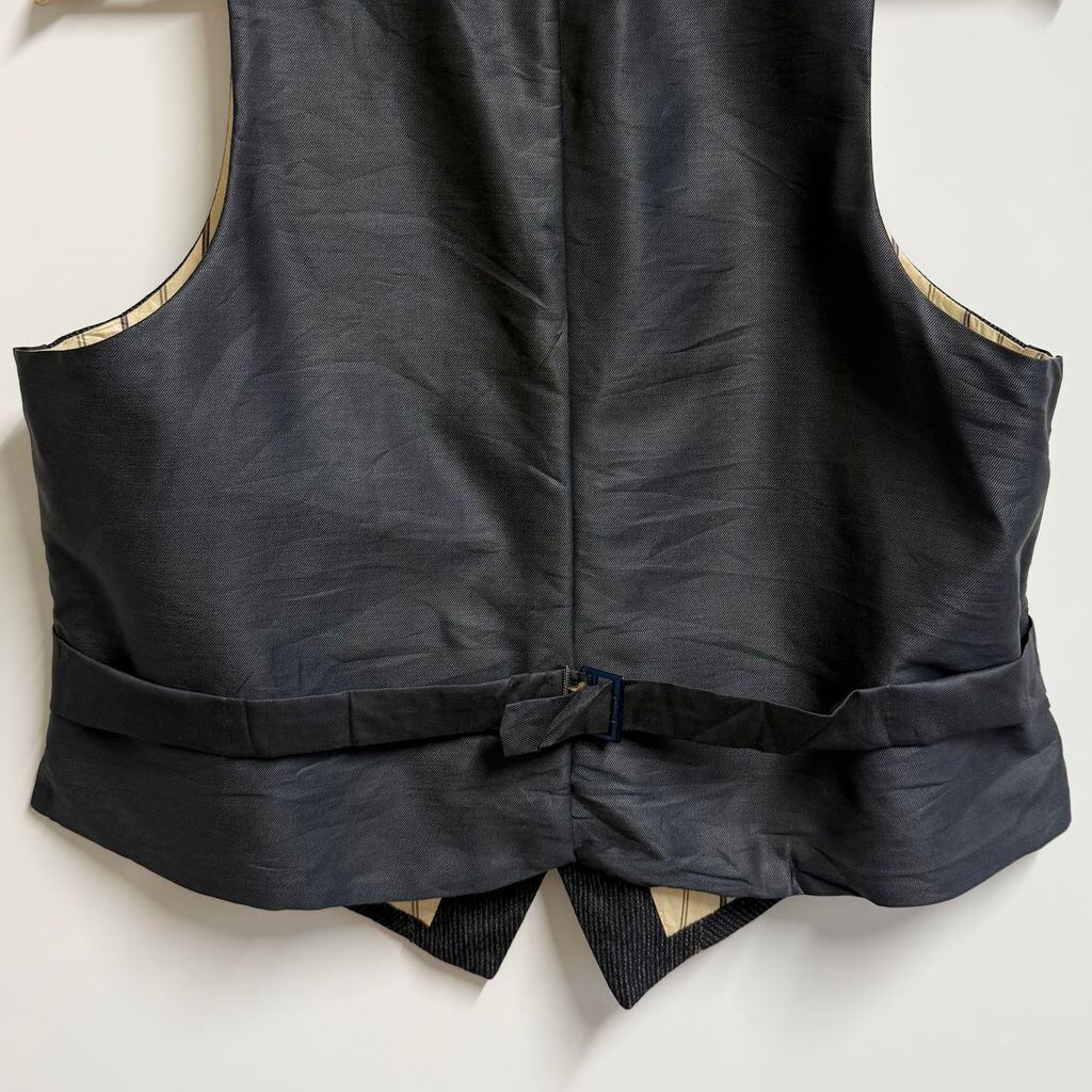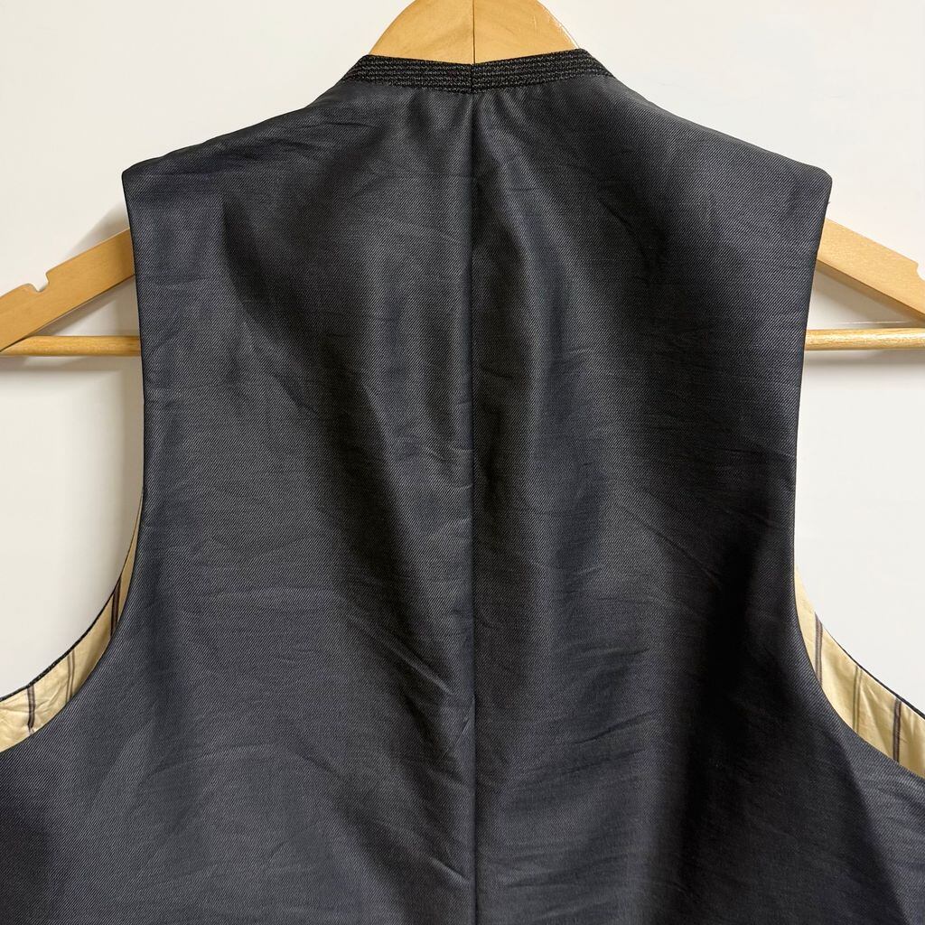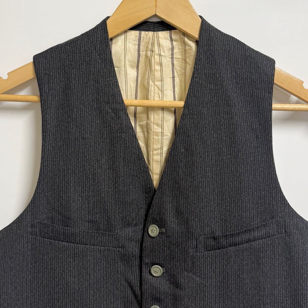 30's〜 vintage ビンテージ EURO ユーロ フランス ジレ ベスト 切り替えデザイン ストライプ×無地 フロントボタン 黒×グレー No.M352