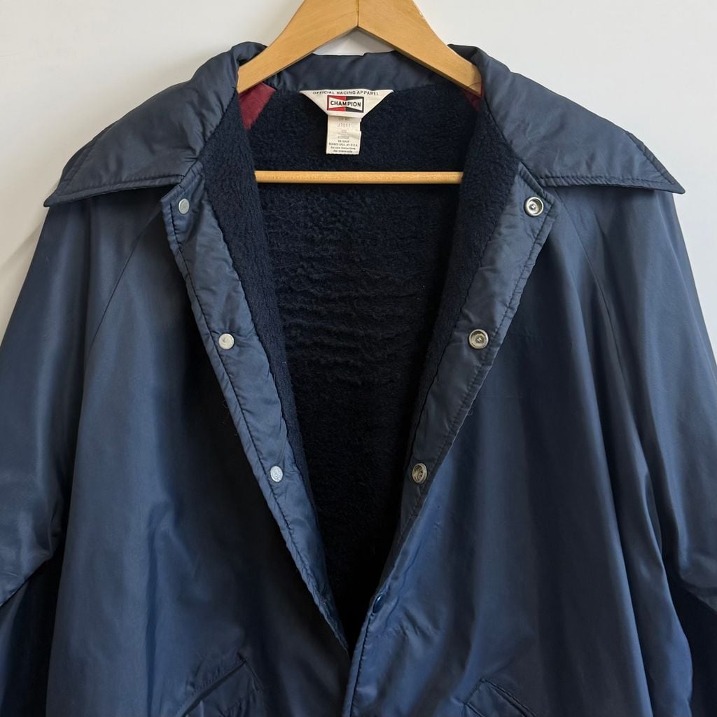 USA製 CHAMPION チャンピオン ナイロンコーチジャケット 裏ボア ボアジャケット スナップボタン 紺 ネイビー Mサイズ No.M357