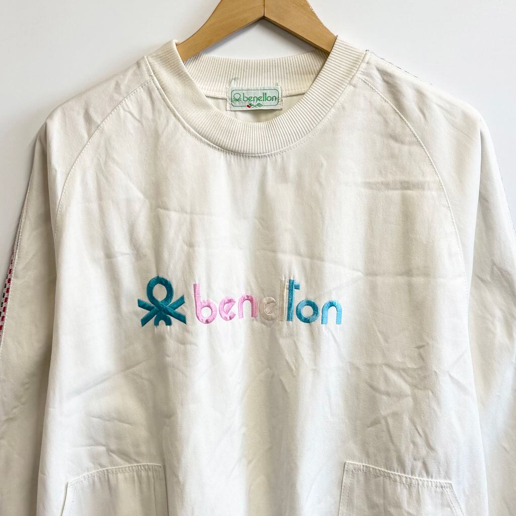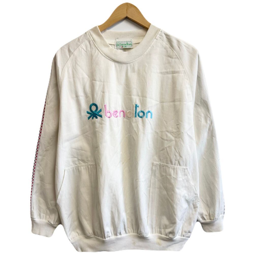80's〜90's vintage ビンテージ EURO ユーロ benetton ベネトン セパポケ プルオーバー ロゴ刺繍 白 No.M365