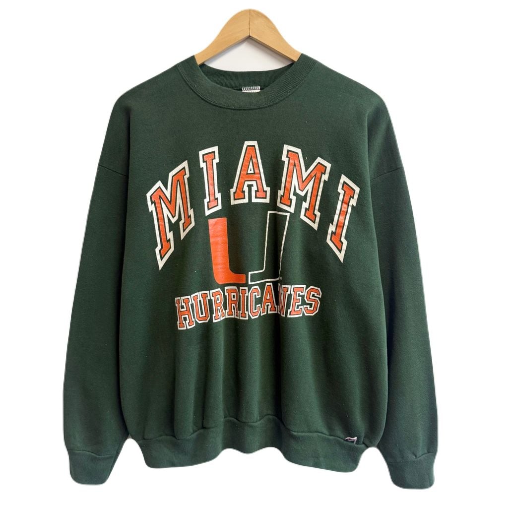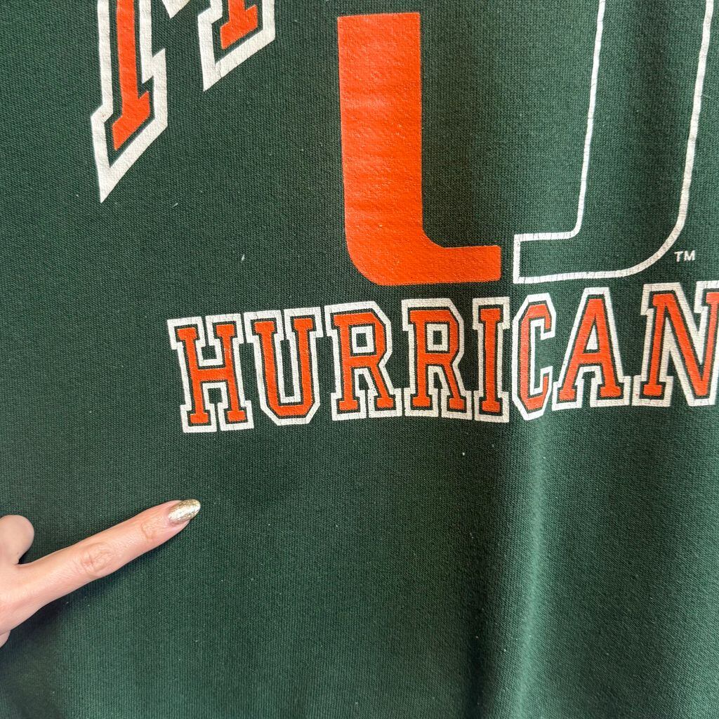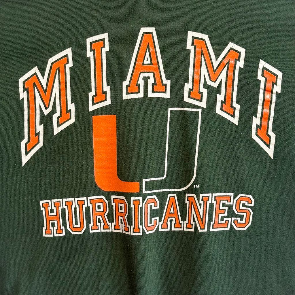 〜90's vintage ビンテージ USA製 LOGO7 マイアミハリケーンズ Miami カレッジロゴ トレーナー スウェット 緑 グリーン XLサイズ No.M367