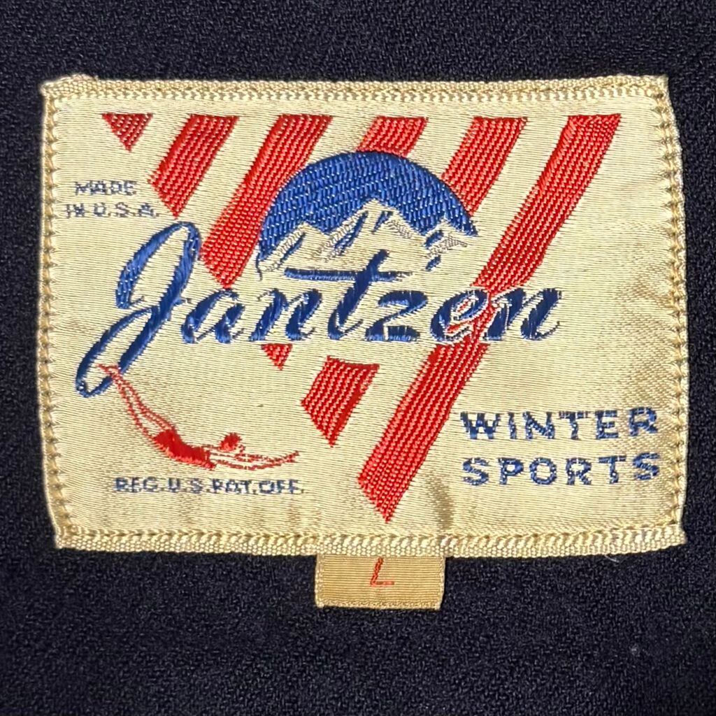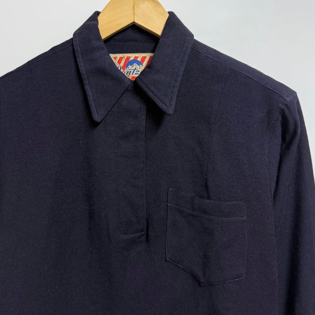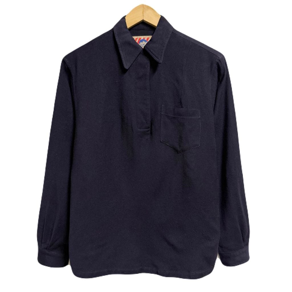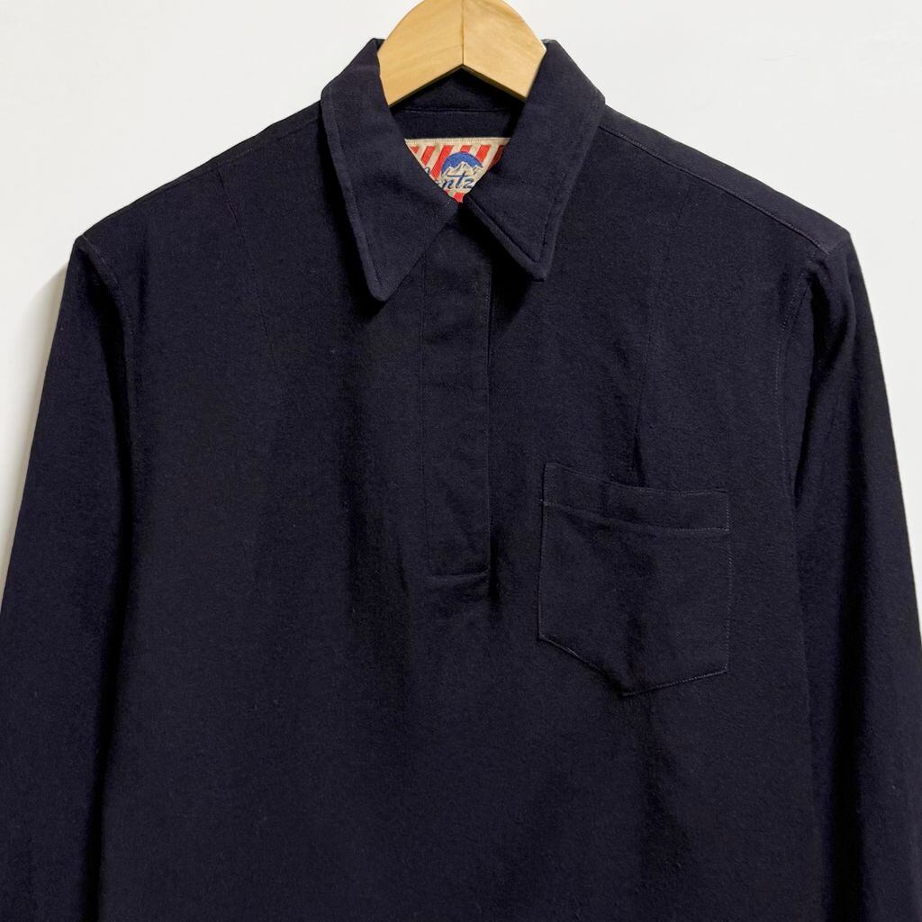 40's〜 vintage ビンテージ USA製 Jantzen ジャンセン プルオーバーワークシャツ 無地 ポケット付き 厚手長袖シャツ 紺 ネイビー Lサイズ No.M378