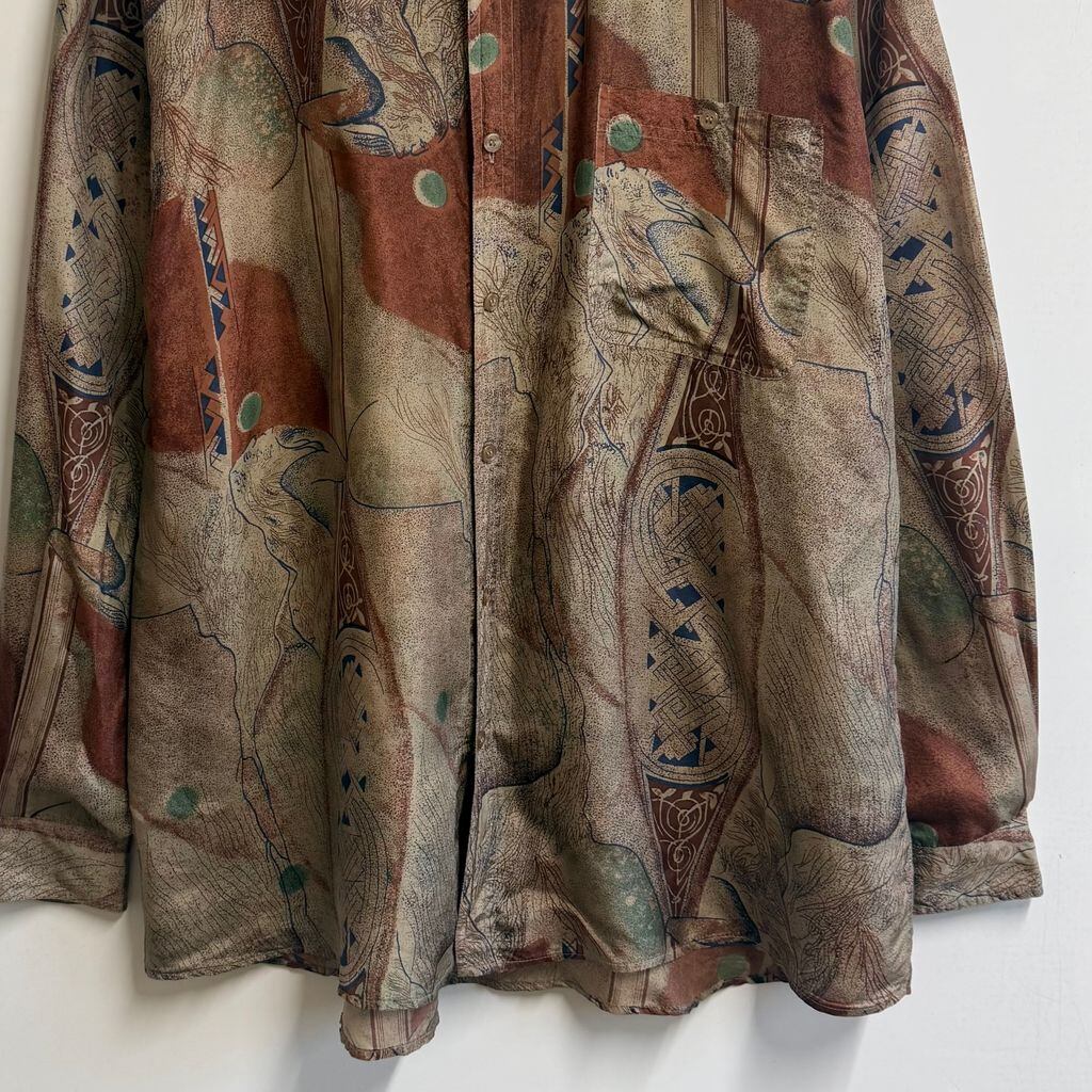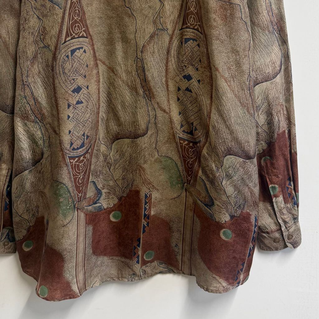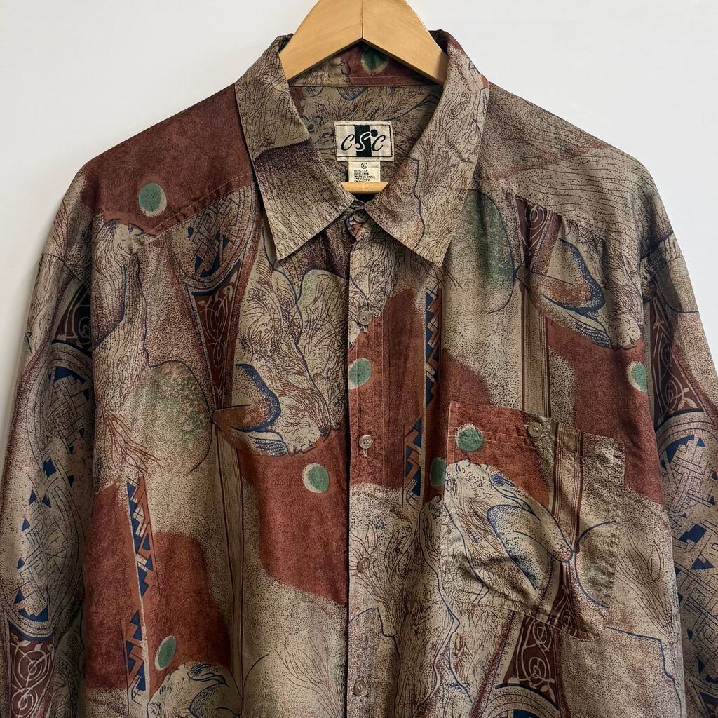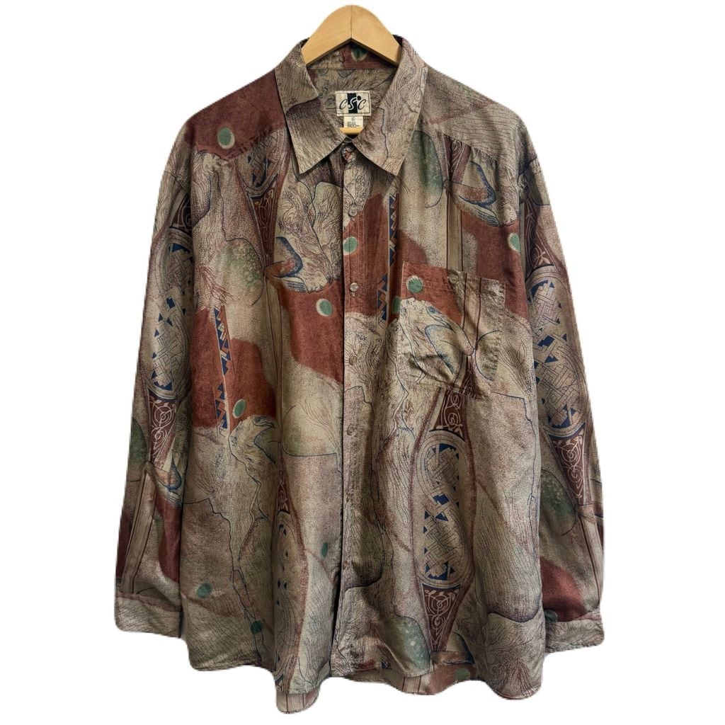 CSC シルクシャツ アート 総柄 柄シャツ アースカラー 多色 XLサイズ No.M402