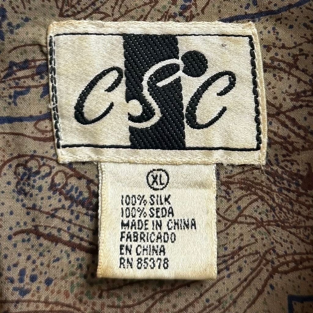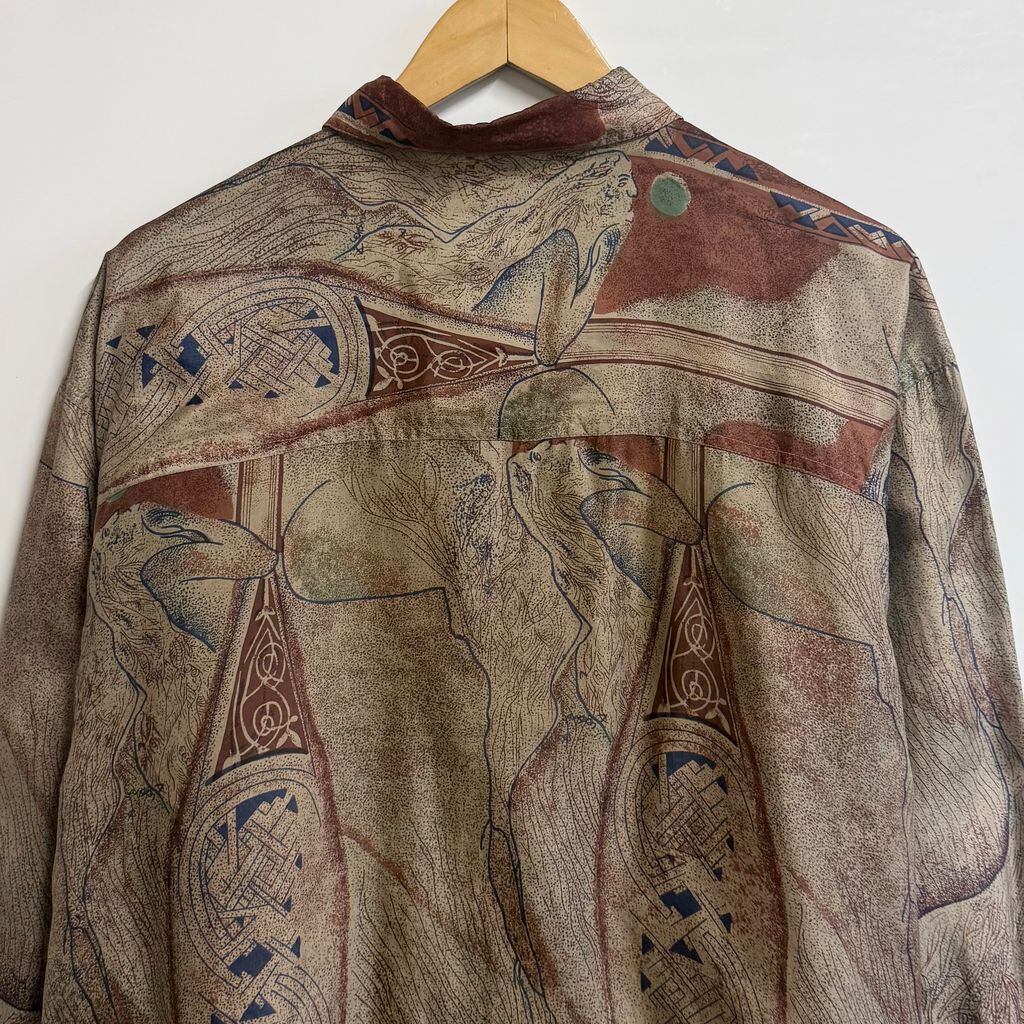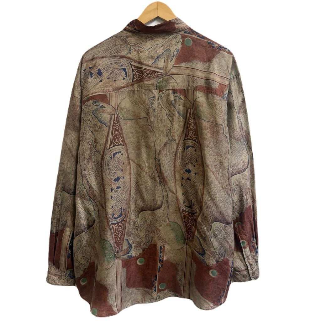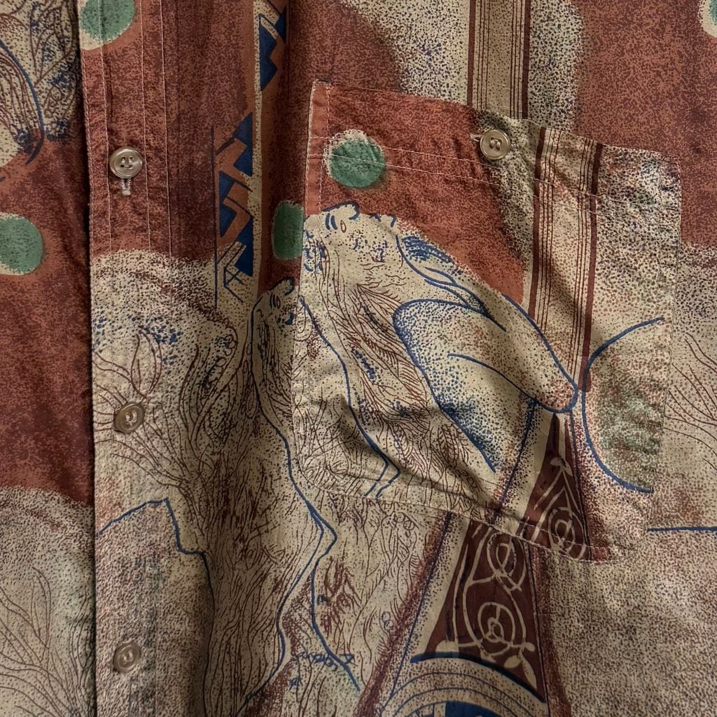CSC シルクシャツ アート 総柄 柄シャツ アースカラー 多色 XLサイズ No.M402