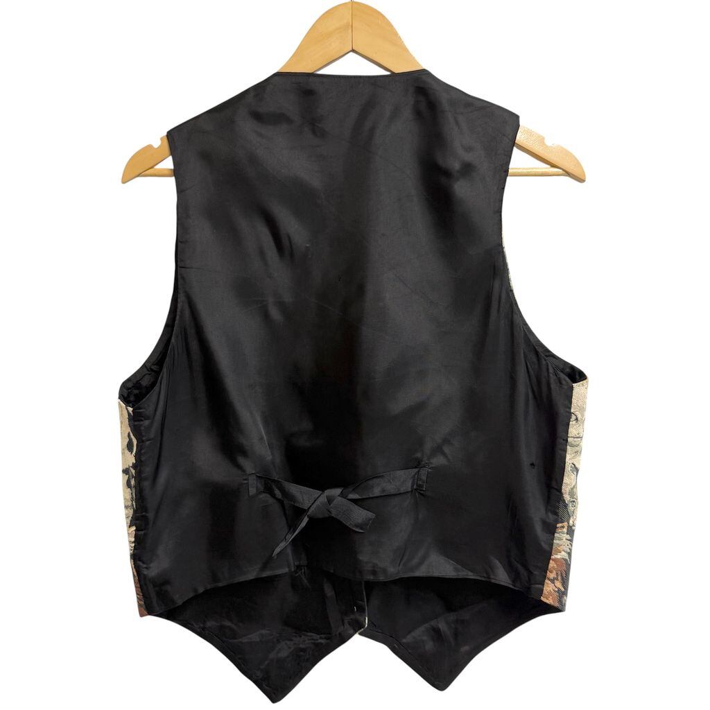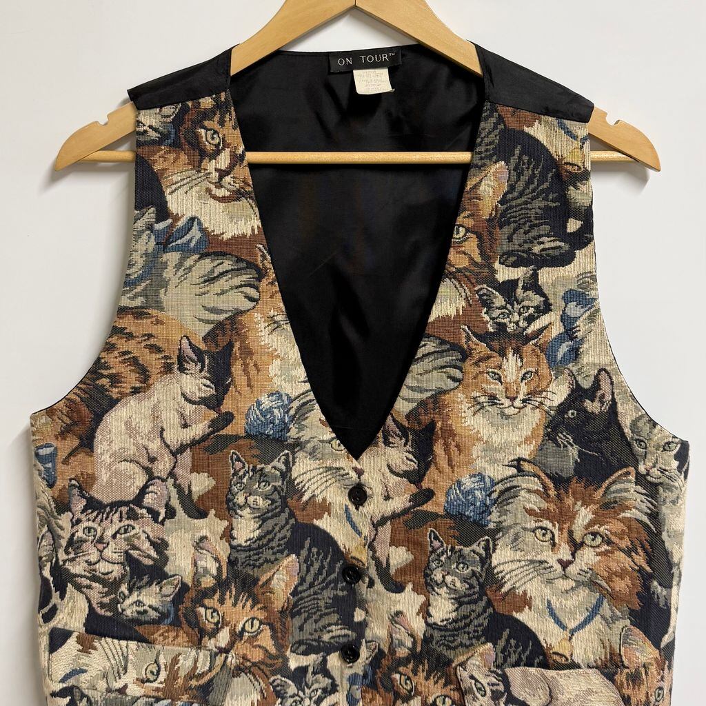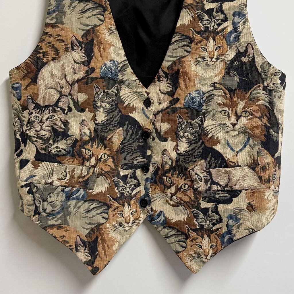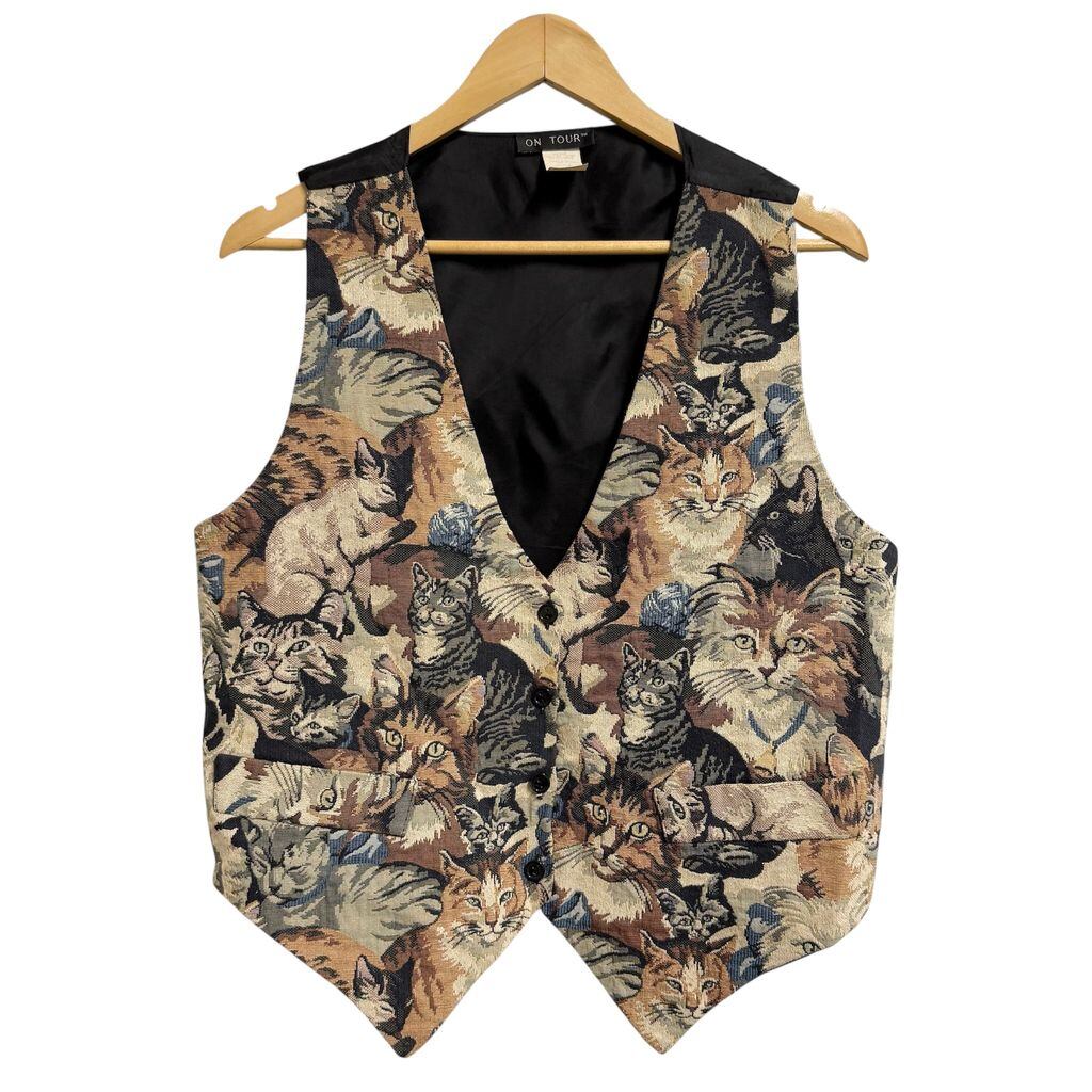 ON TOUR ゴブラン ジャガード織りベスト 猫柄 ネコ cat 切り替えデザイン 柄×無地 黒×多色 Lサイズ No.M404
