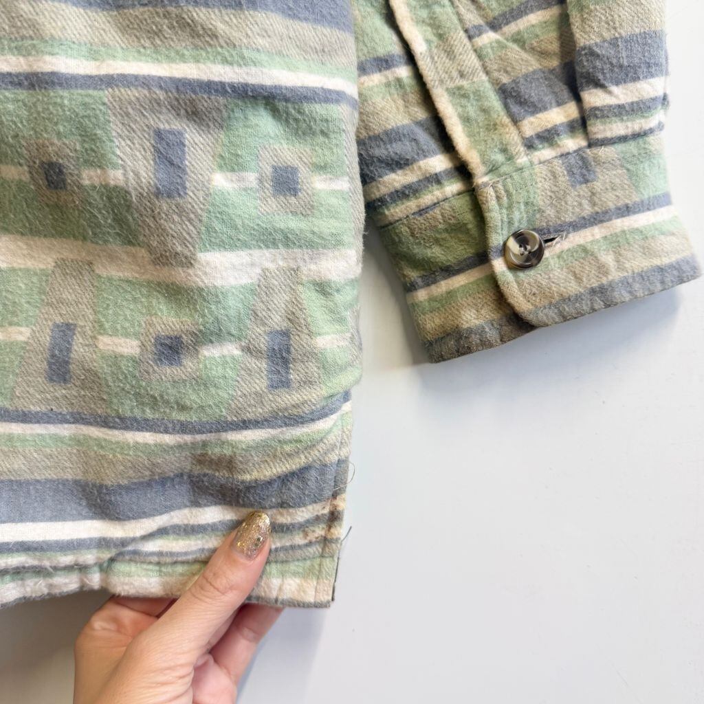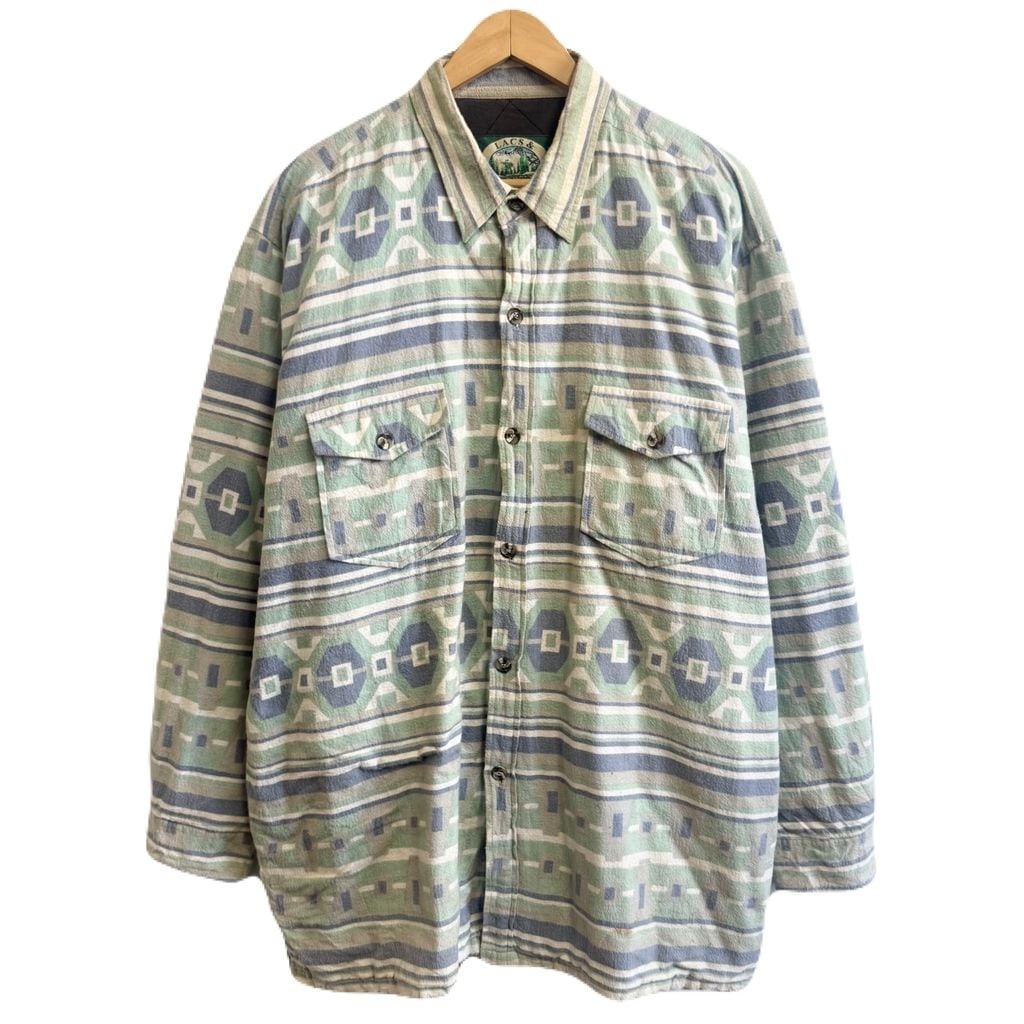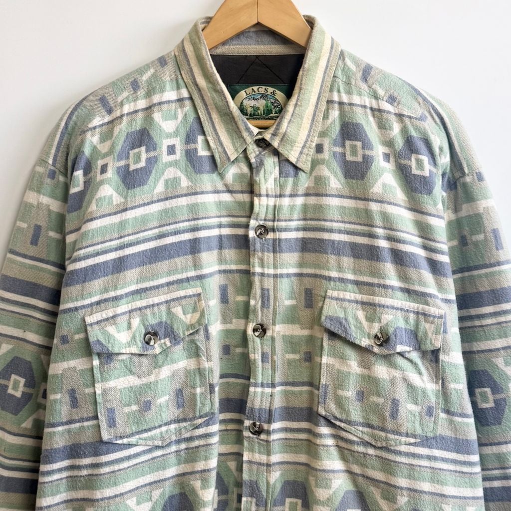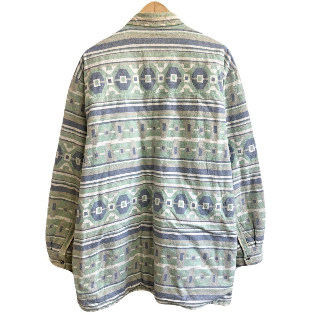 LACS&MONTAGNES フランネルシャツジャケット ネイティブ柄 ミントグリーン×ブルーグレー×白×多色 XXLサイズ No.M420