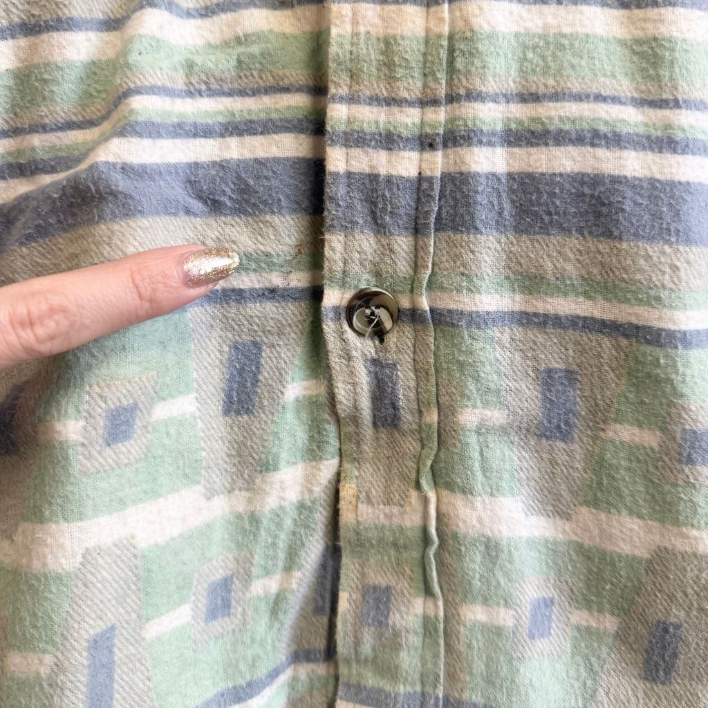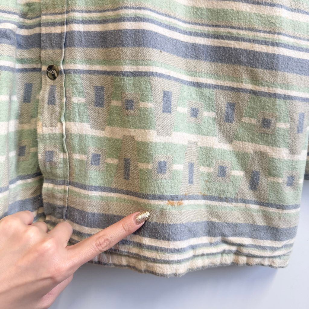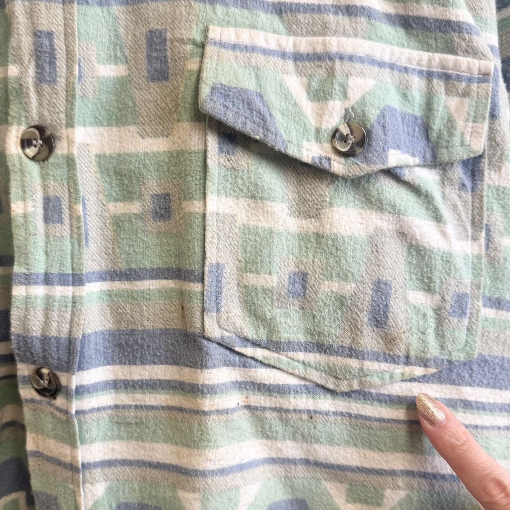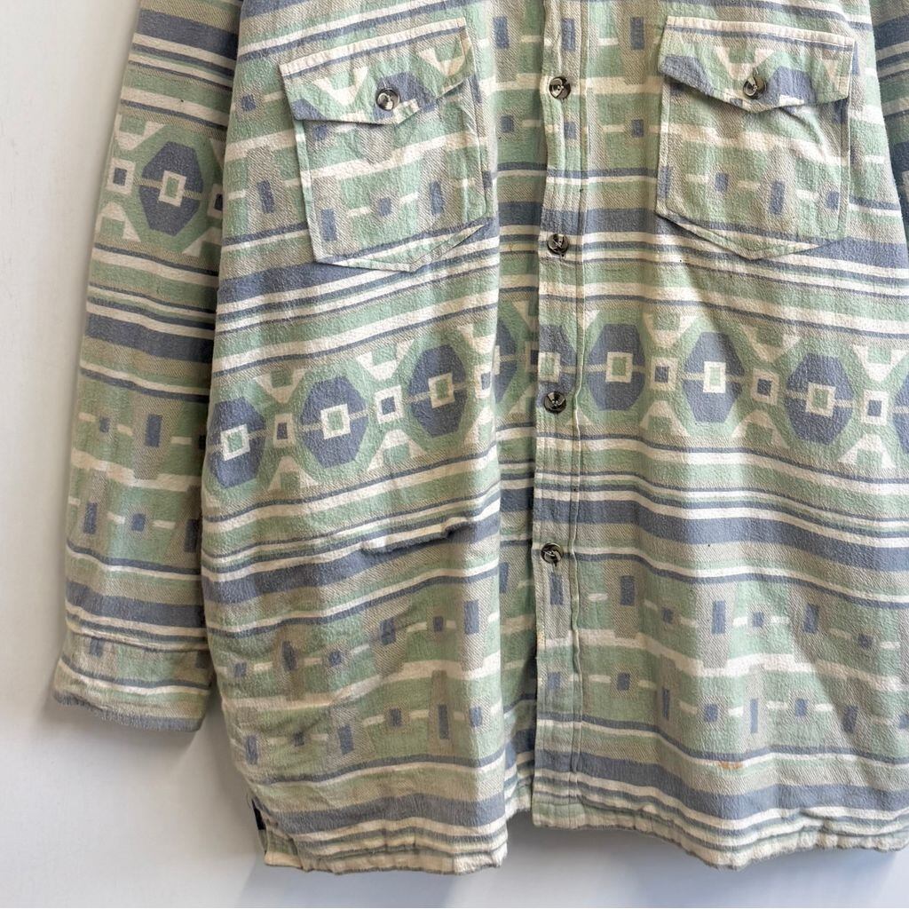 LACS&MONTAGNES フランネルシャツジャケット ネイティブ柄 ミントグリーン×ブルーグレー×白×多色 XXLサイズ No.M420