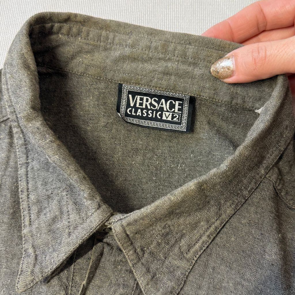 VERSACE CLASSIC V2 ヴェルサーチクラシック 黒シャンブレー 長袖シャツ シャンブレーシャツ グレー系 XLサイズ No.M422