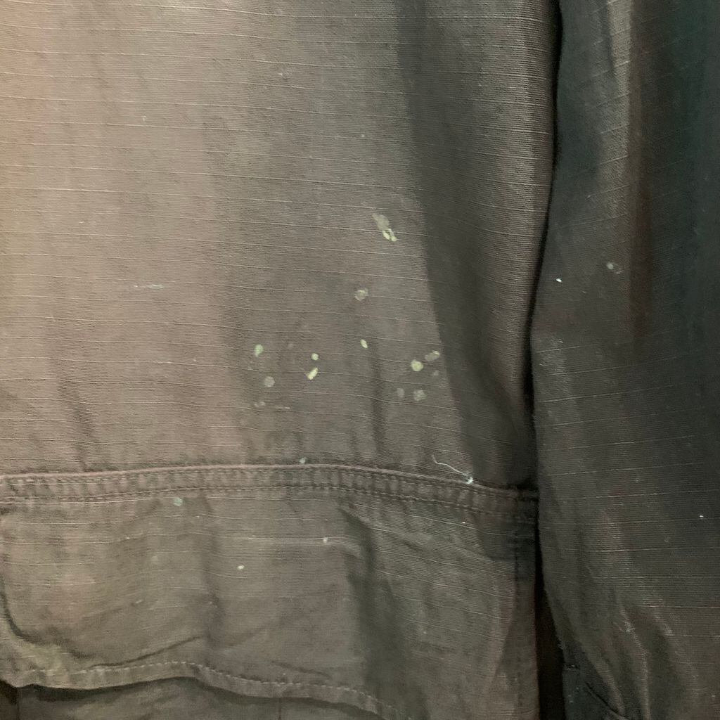 右胸ポケット、第四ボタン付近、左下フラップ付近、右袖、左肩付近などに色抜け(変色)有り