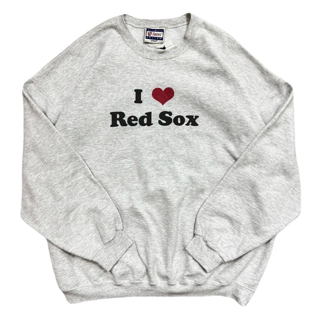 90s~ Hanes I LOVE Red Sox ヘインズ レッドソックス プリント スウェット トレーナー ライトグレー No.EA195