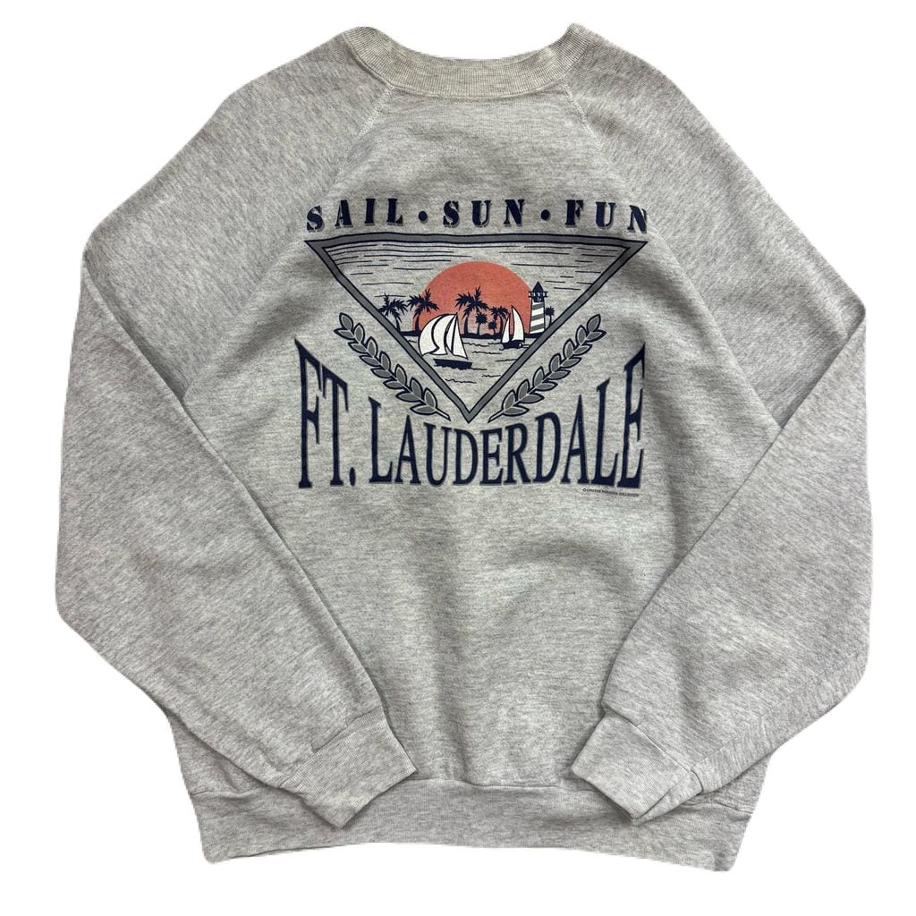 USA製 TULTEX FT.LAUDERDALE フォート ローダデール ヨット 船 プリント ラグランスウェット トレーナー グレー XLサイズ No.EA197