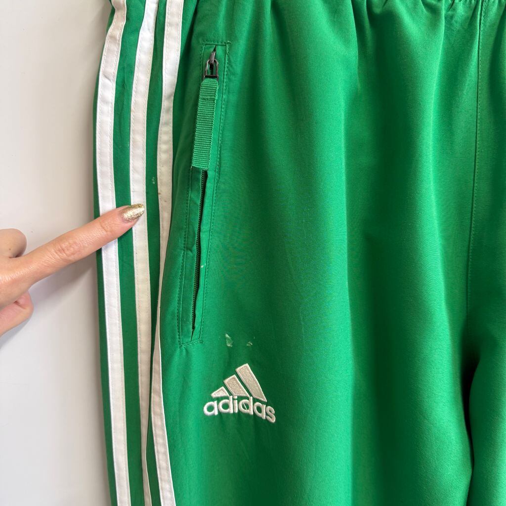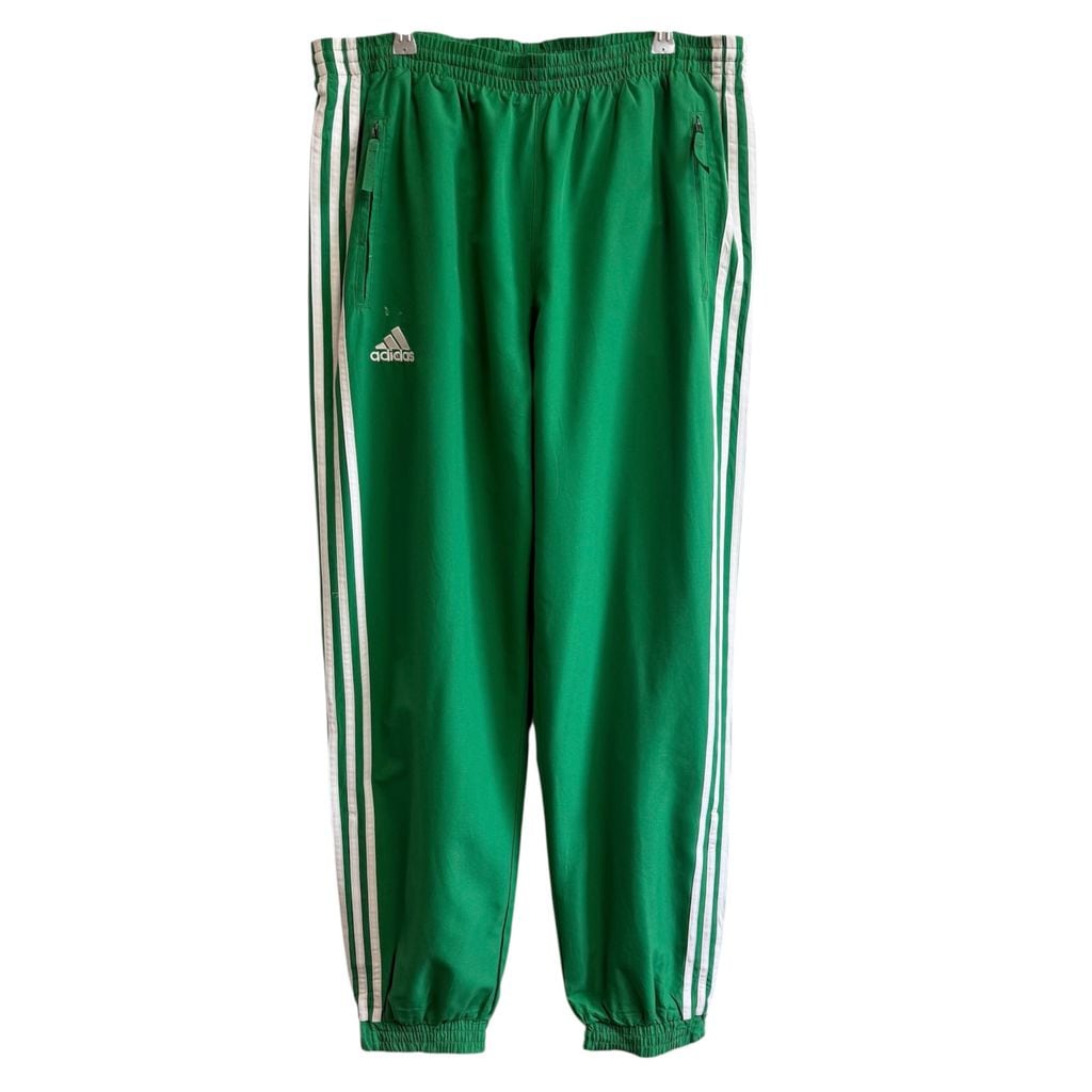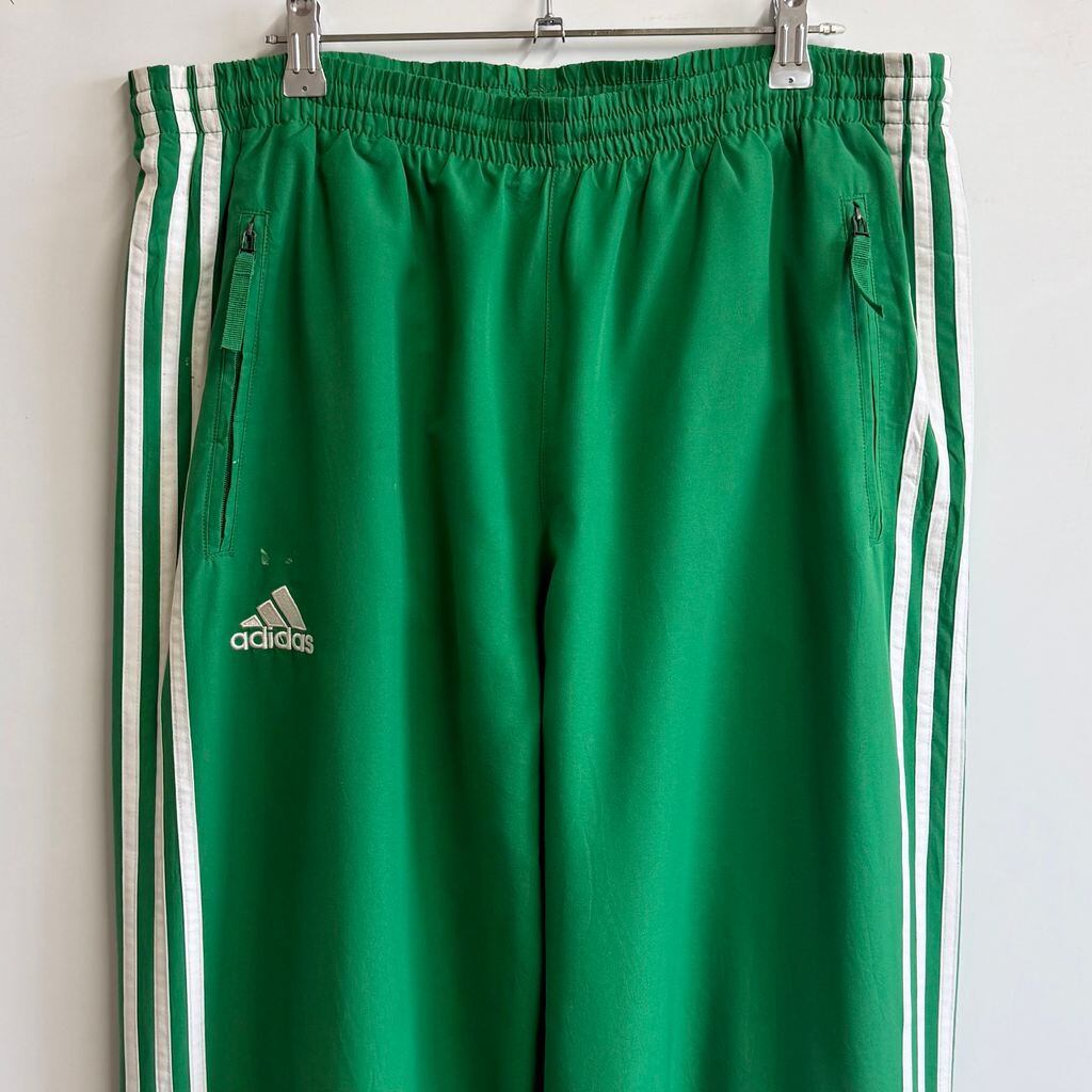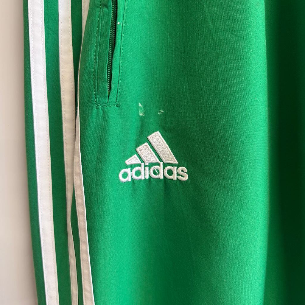adidas アディダス トラックパンツ ジャージ スリーストライプス ロゴ刺繍 緑×白 XOサイズ No.M431