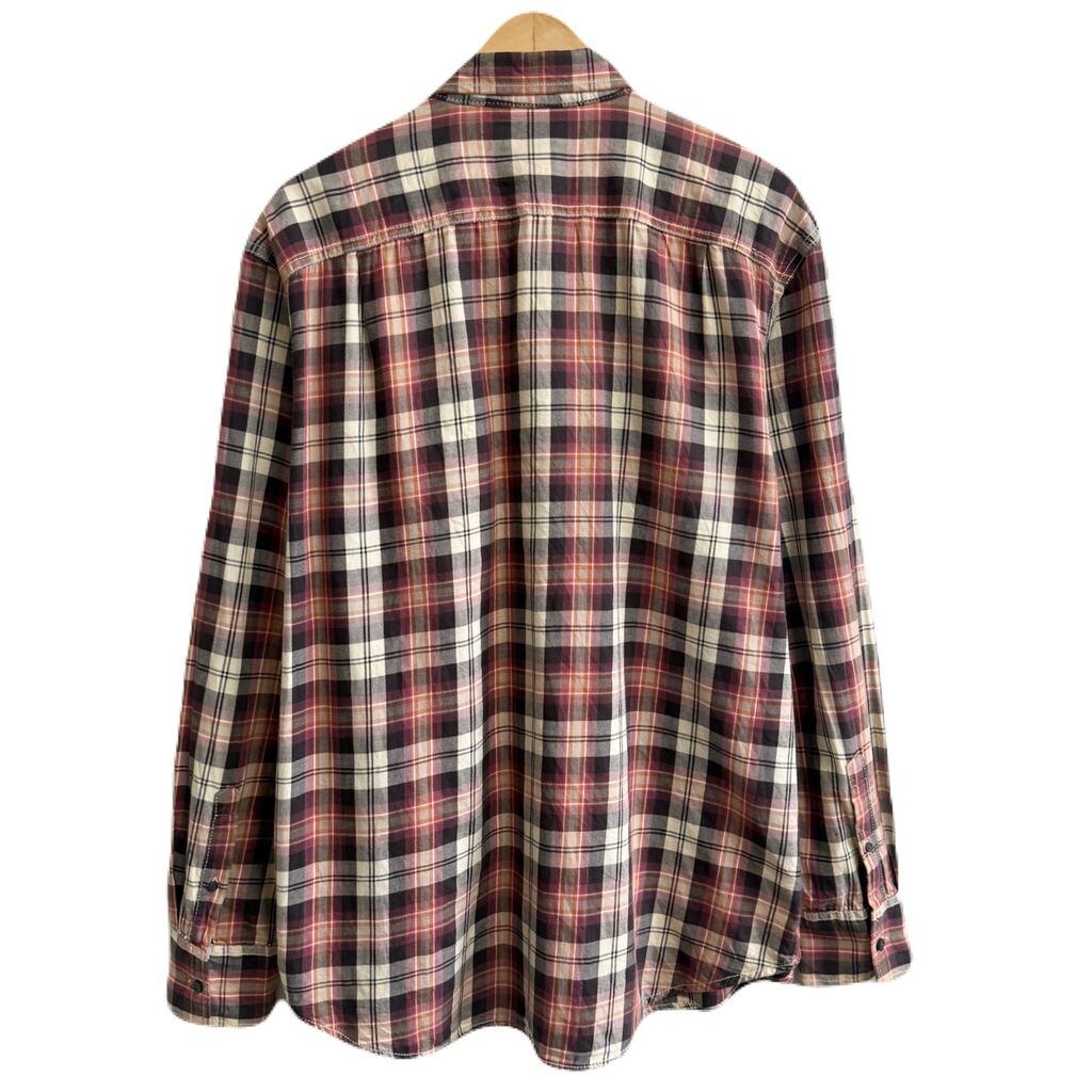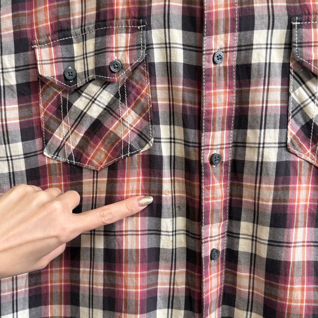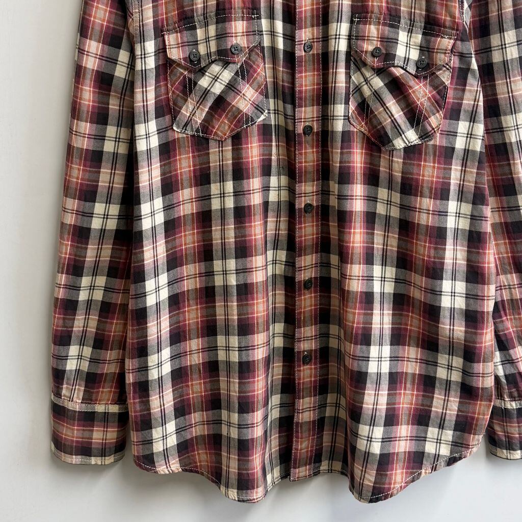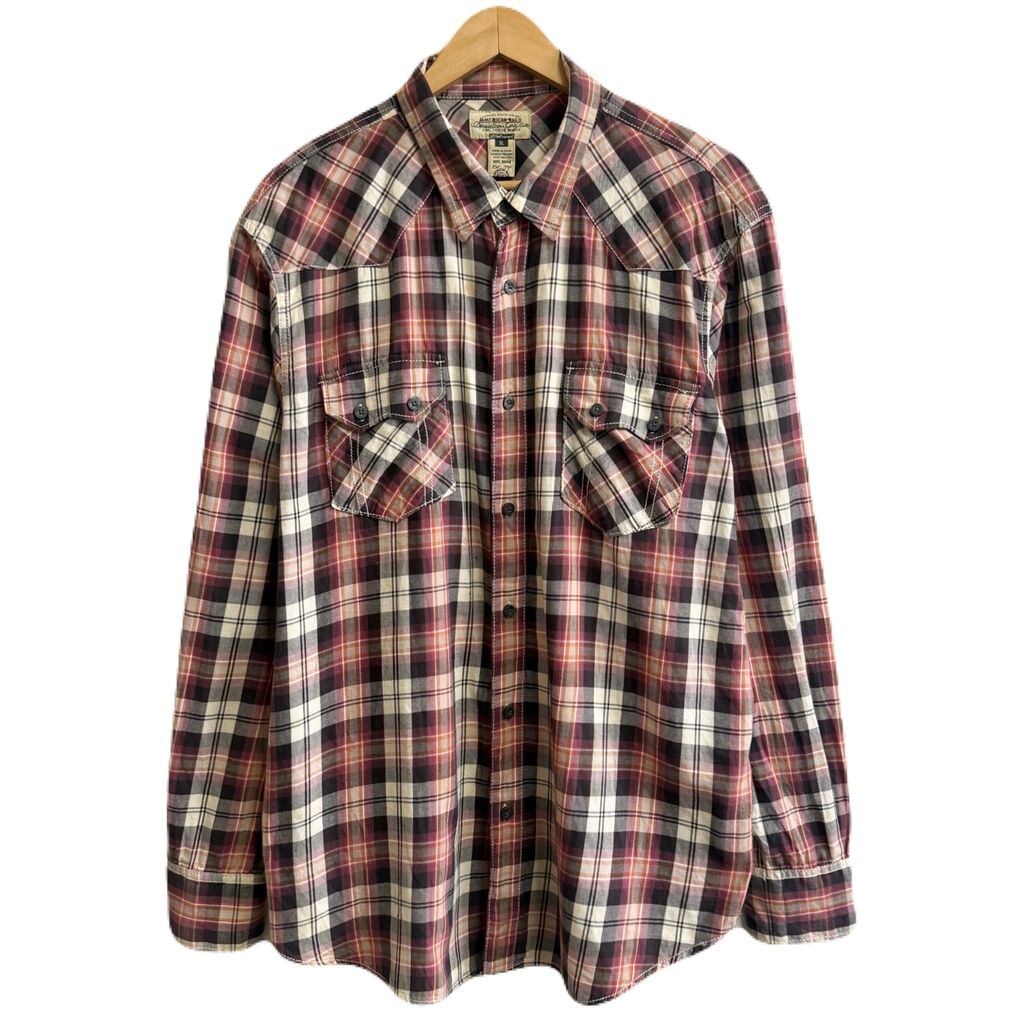 AMERICAN RAG CIE ウエスタンシャツ風 コットンシャツ チェック柄 ポケット付き 長袖シャツ 紫×ピンク×オレンジ×アイボリー×多色 XLサイズ No.M445