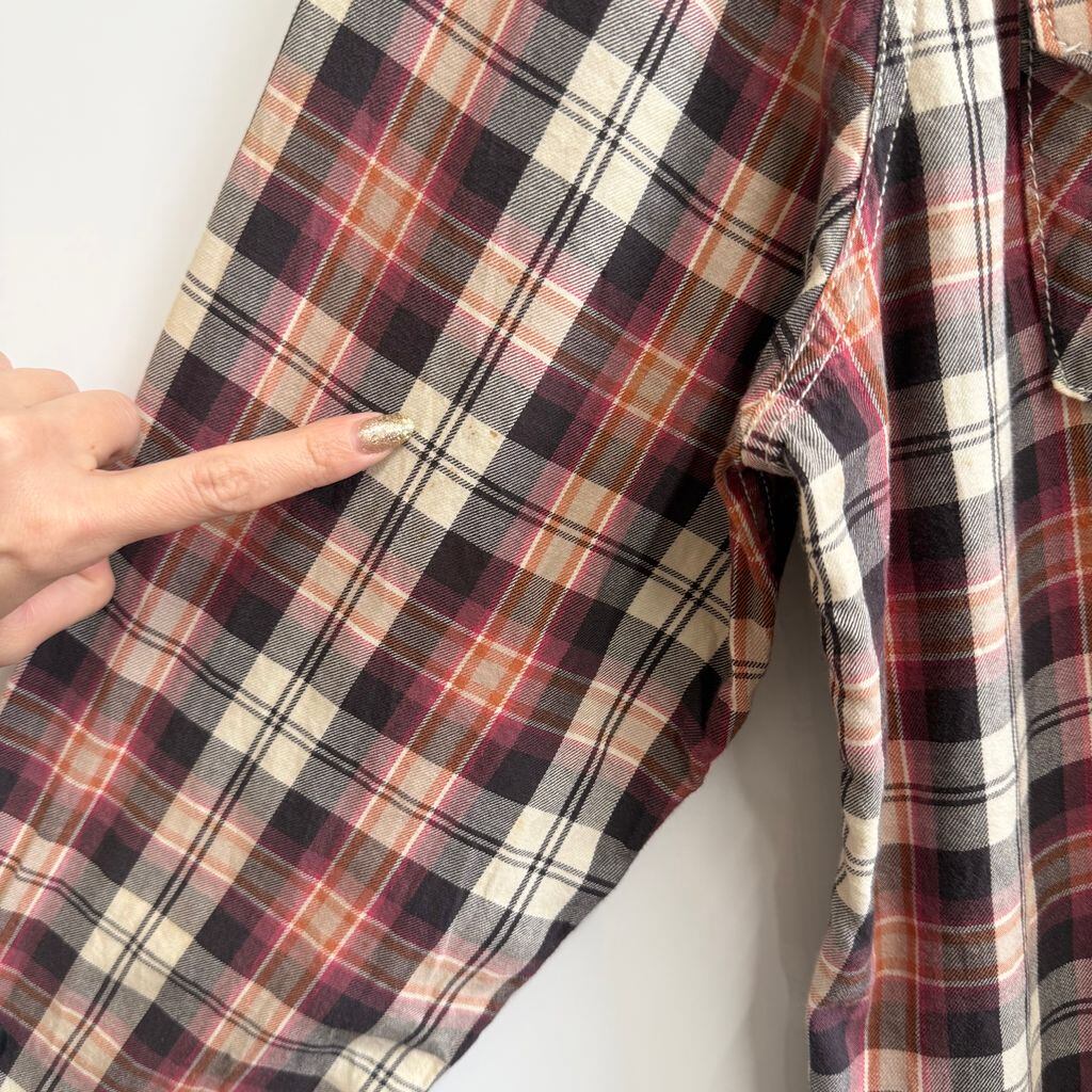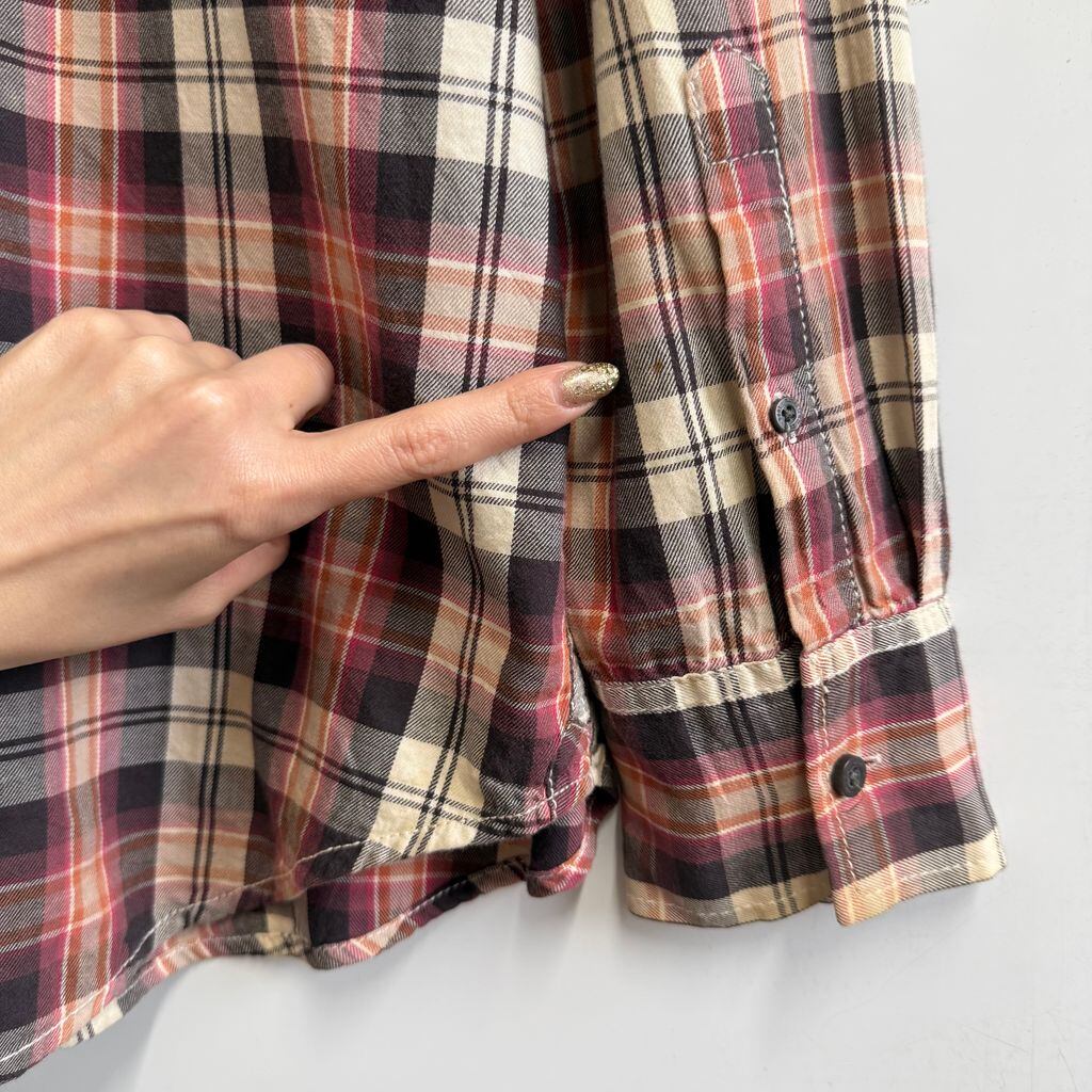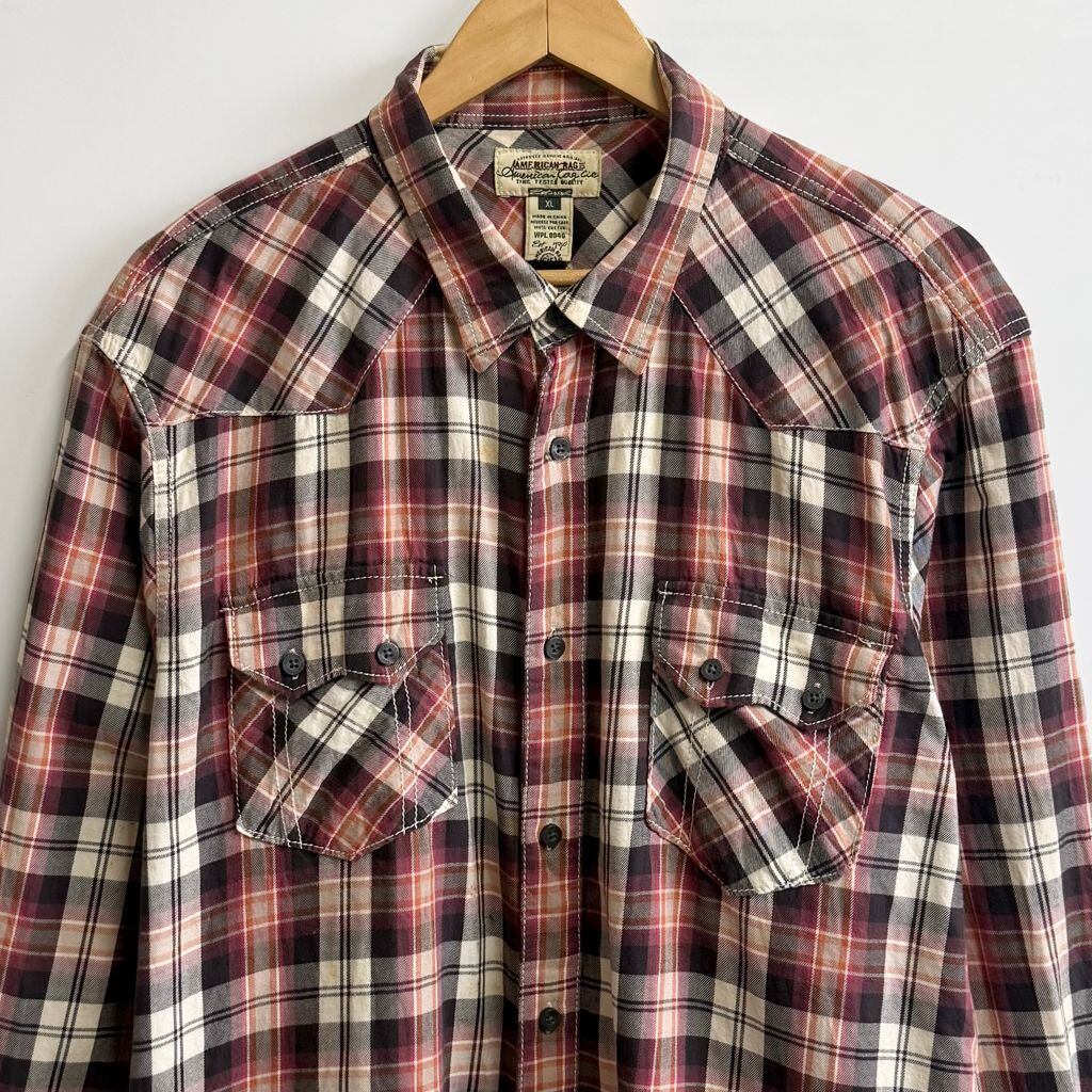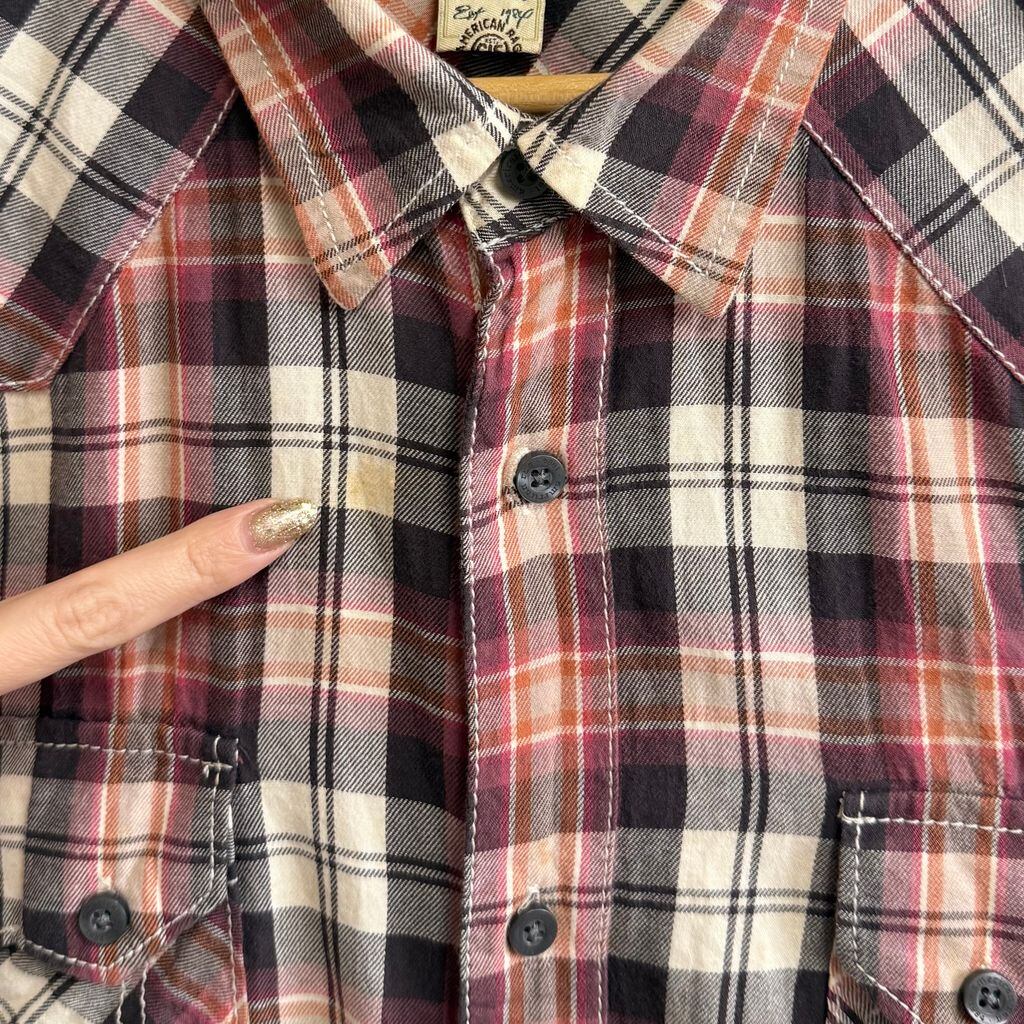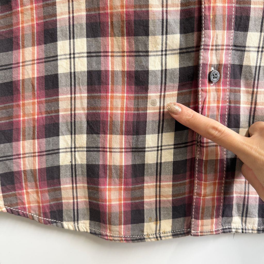 AMERICAN RAG CIE ウエスタンシャツ風 コットンシャツ チェック柄 ポケット付き 長袖シャツ 紫×ピンク×オレンジ×アイボリー×多色 XLサイズ No.M445