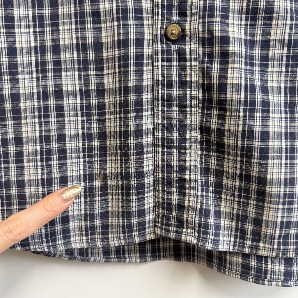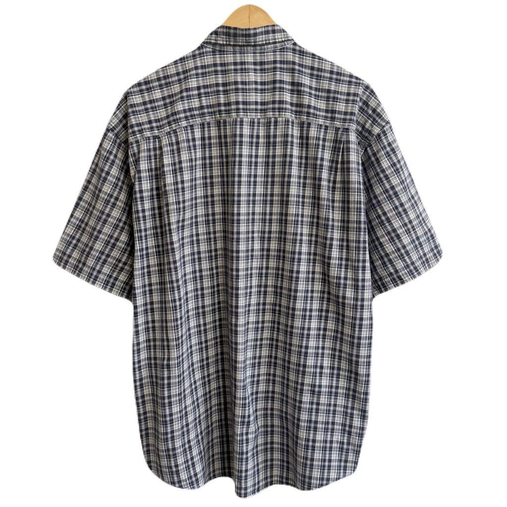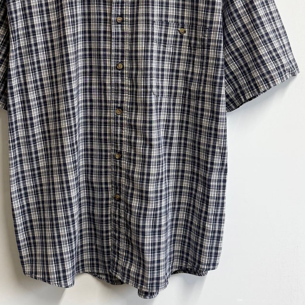 Eddie Bauer エディーバウアー ボタンダウンシャツ コットンシャツ チェック柄 ポケット付き 半袖シャツ 紺×白×多色 XLサイズ No.M453