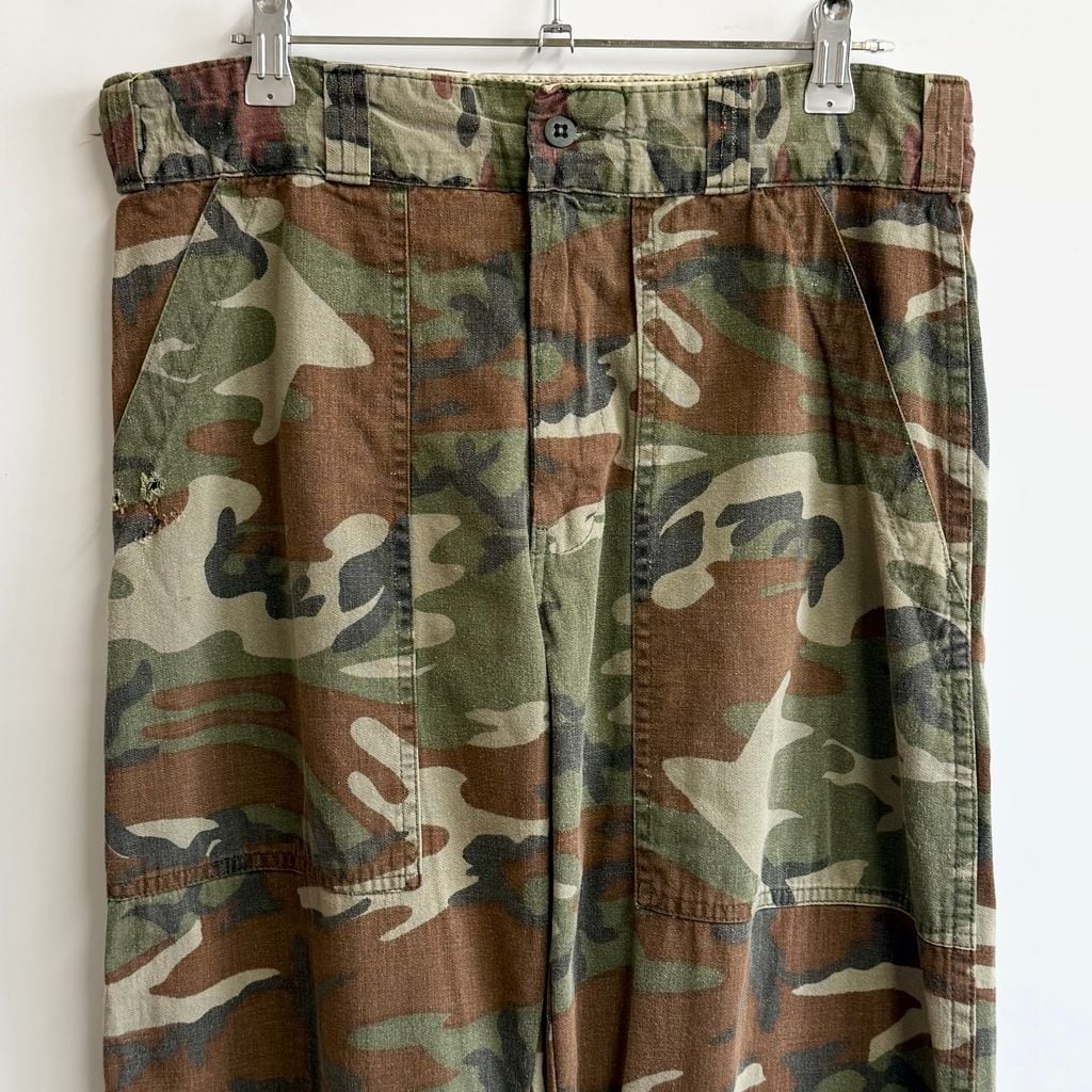 70's Sears シアーズ 42TALON タロンジップ ウッドランドカモ カーゴパンツ カモフラ 迷彩柄 多色 W33程度 No.M458