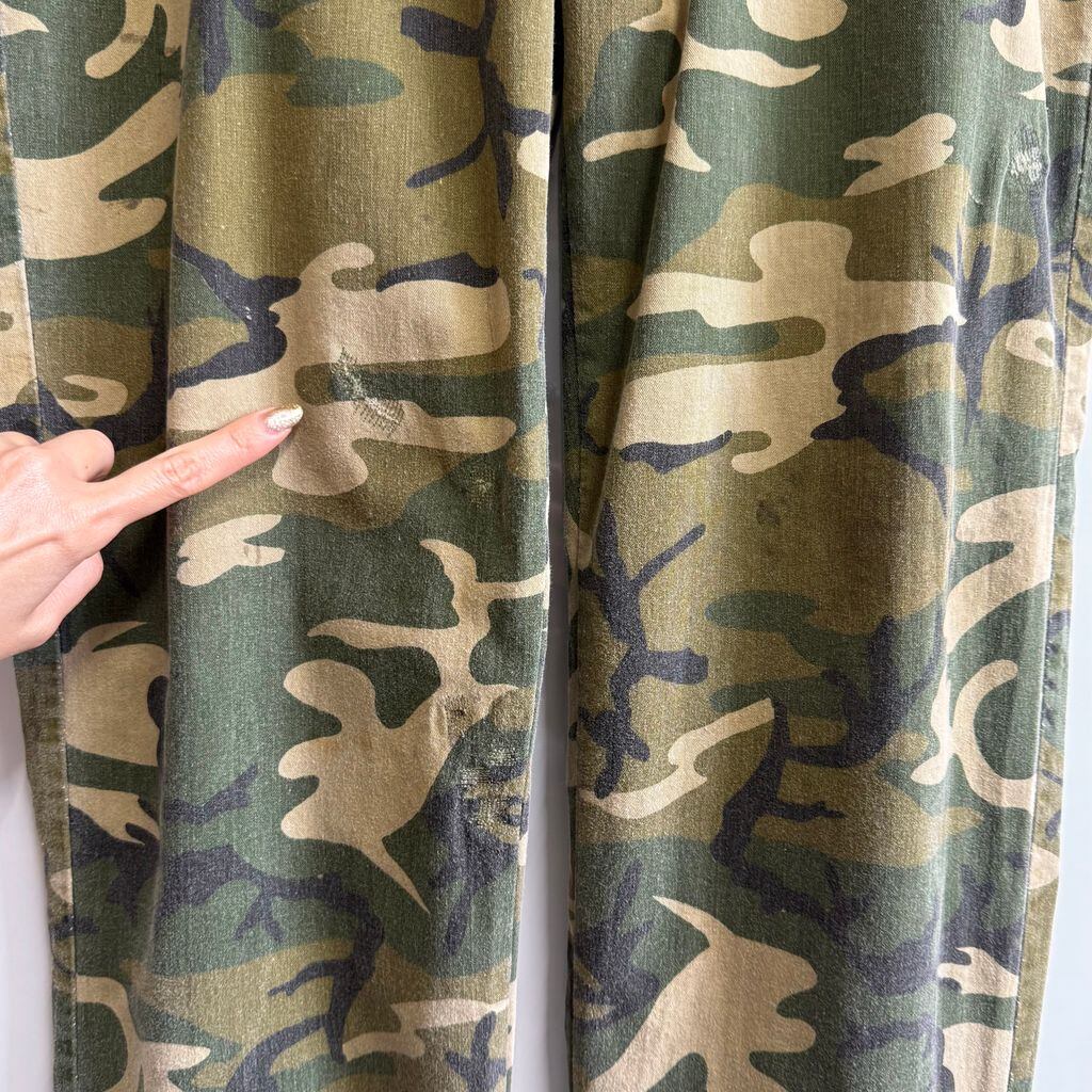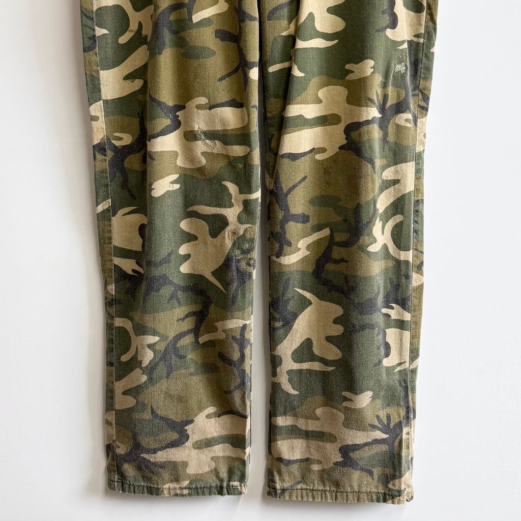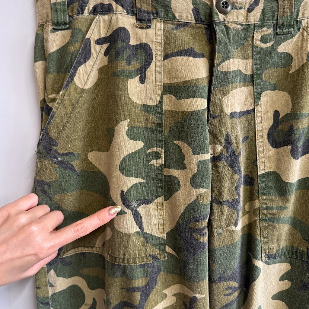 ウッドランドカモ カーゴパンツ IDEAL アイディールジップ カモフラ 迷彩柄 グリーン×多色 W33程度 No.M459