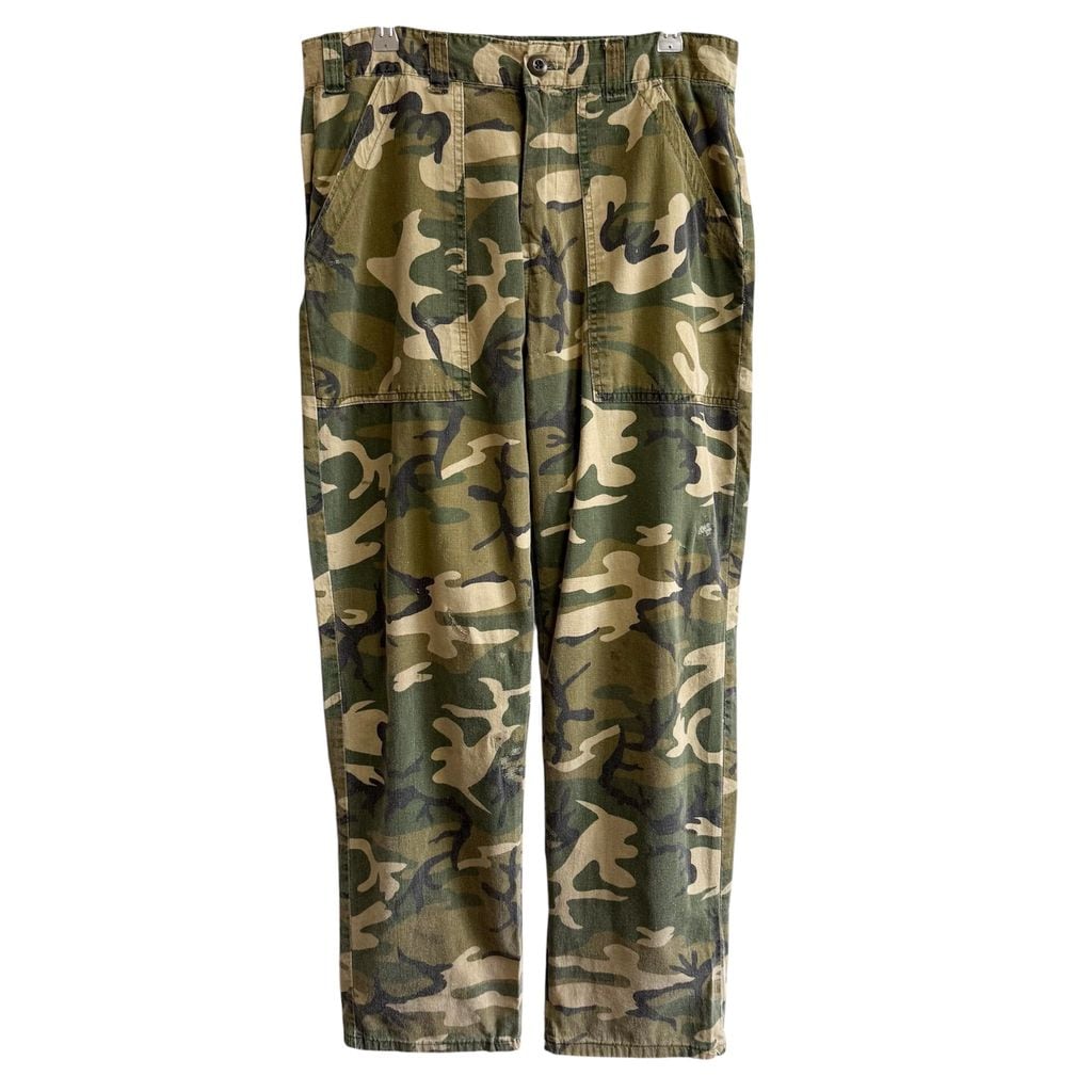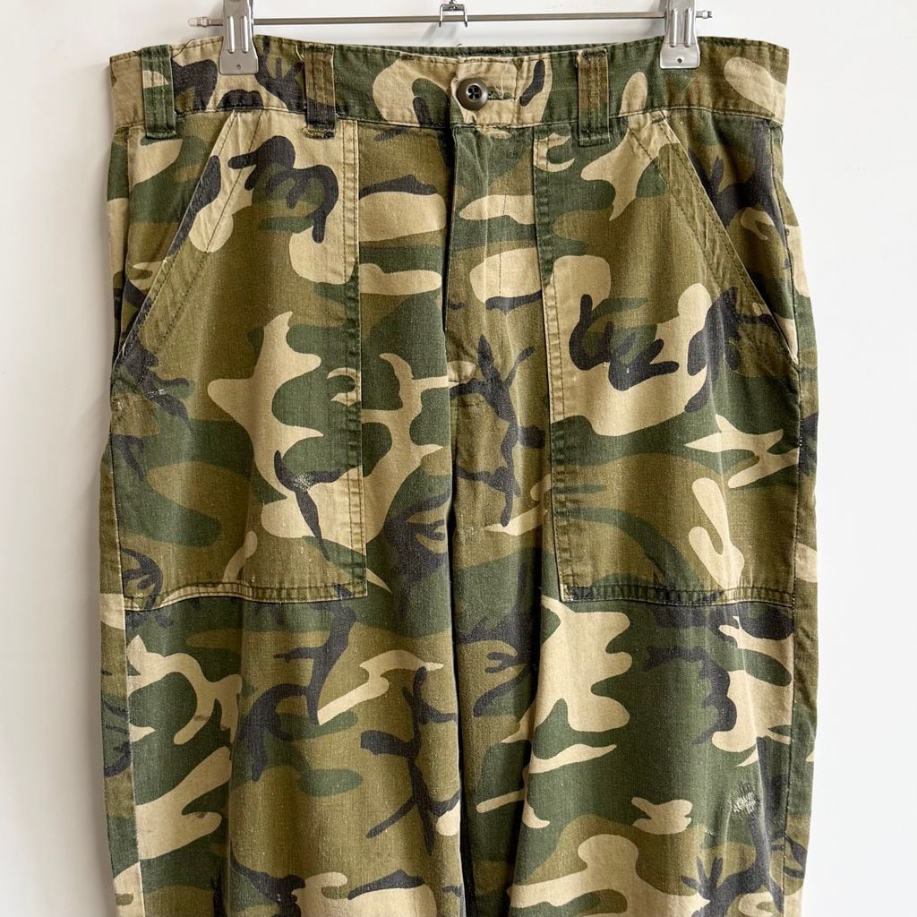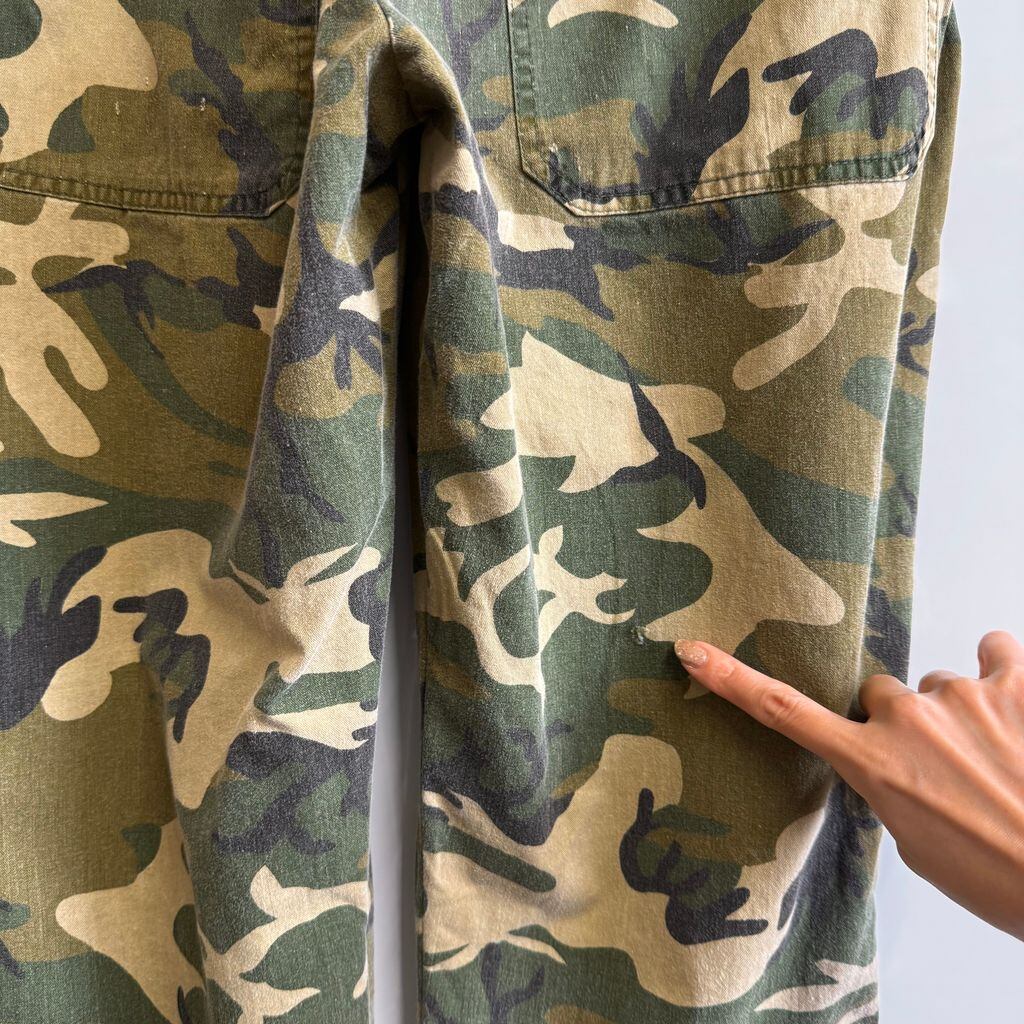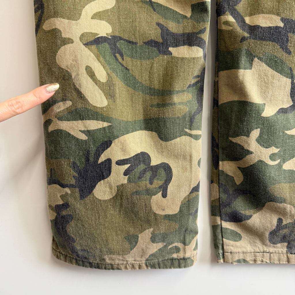 ウッドランドカモ カーゴパンツ IDEAL アイディールジップ カモフラ 迷彩柄 グリーン×多色 W33程度 No.M459