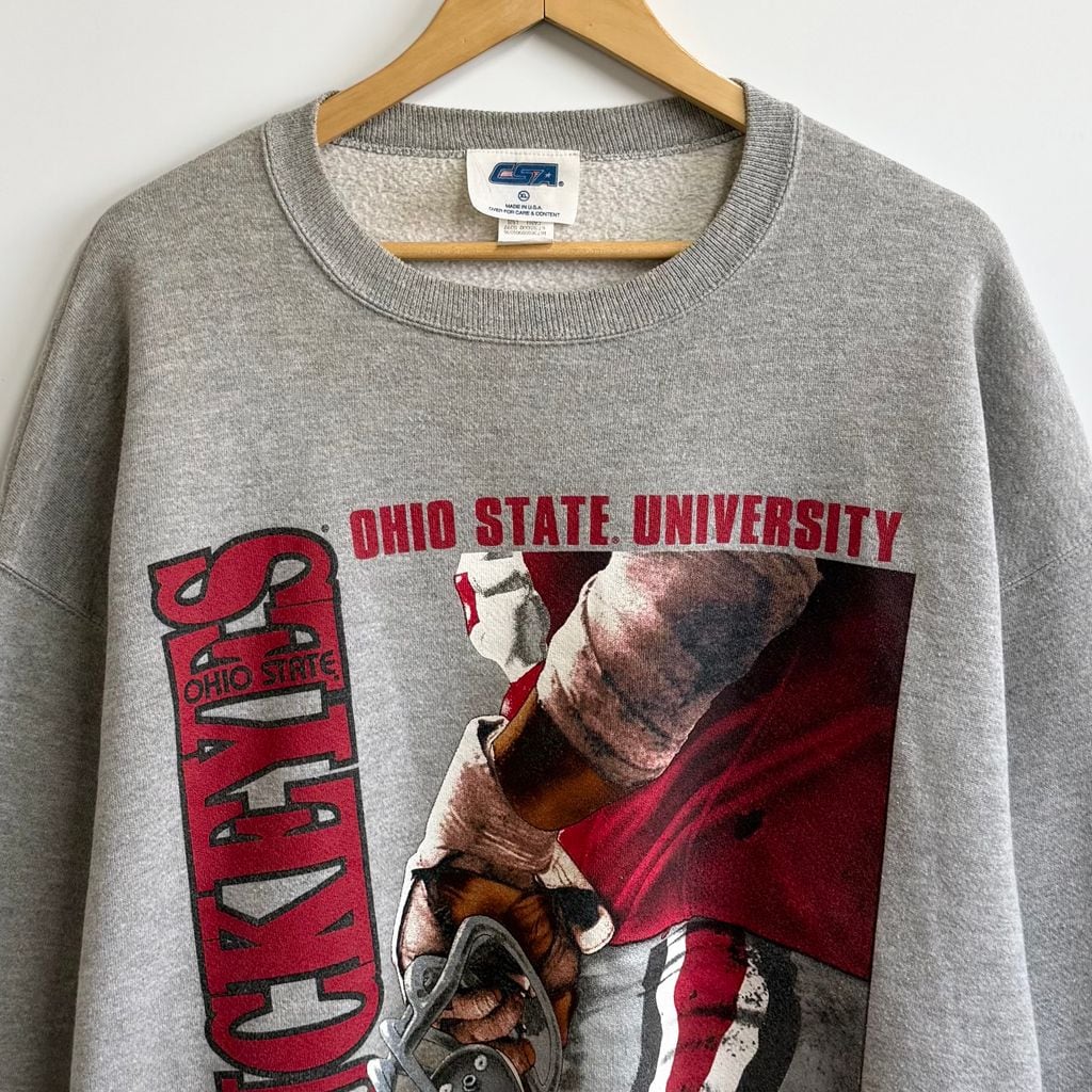 90's vintage ビンテージ USA製 CSA OHIO STATE オハイオ州 アメフト BUCKEYES トレーナー スウェット 裏起毛 グレー XLサイズ No.M473