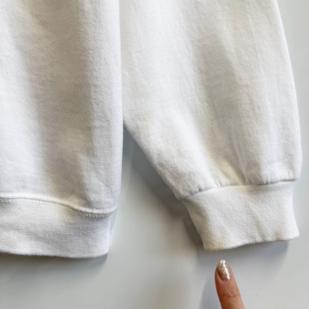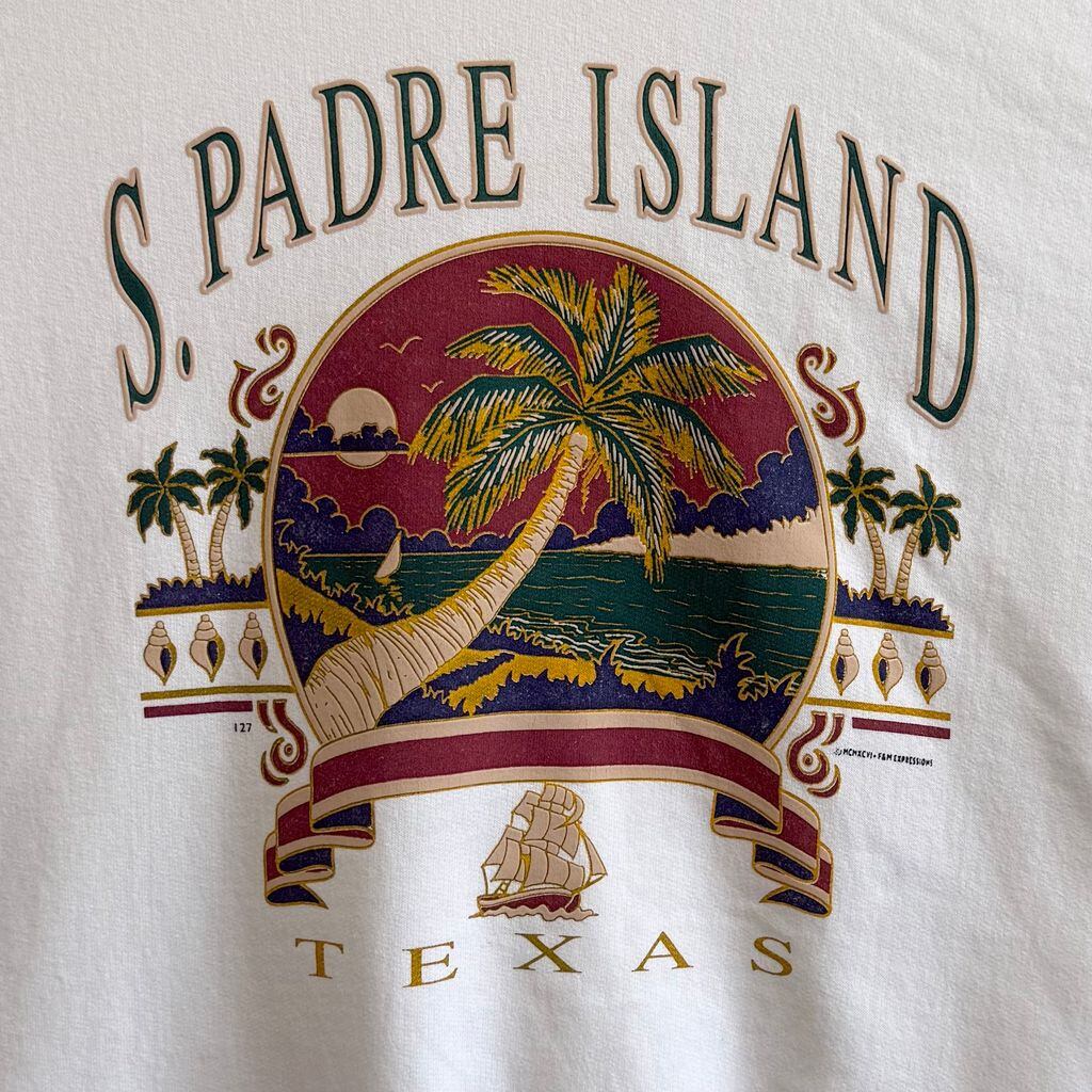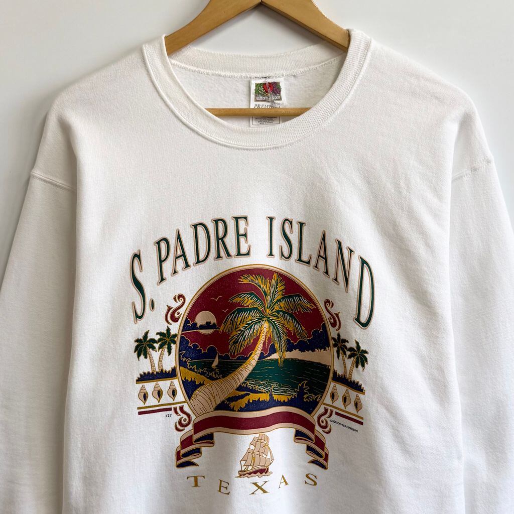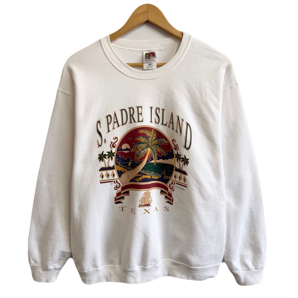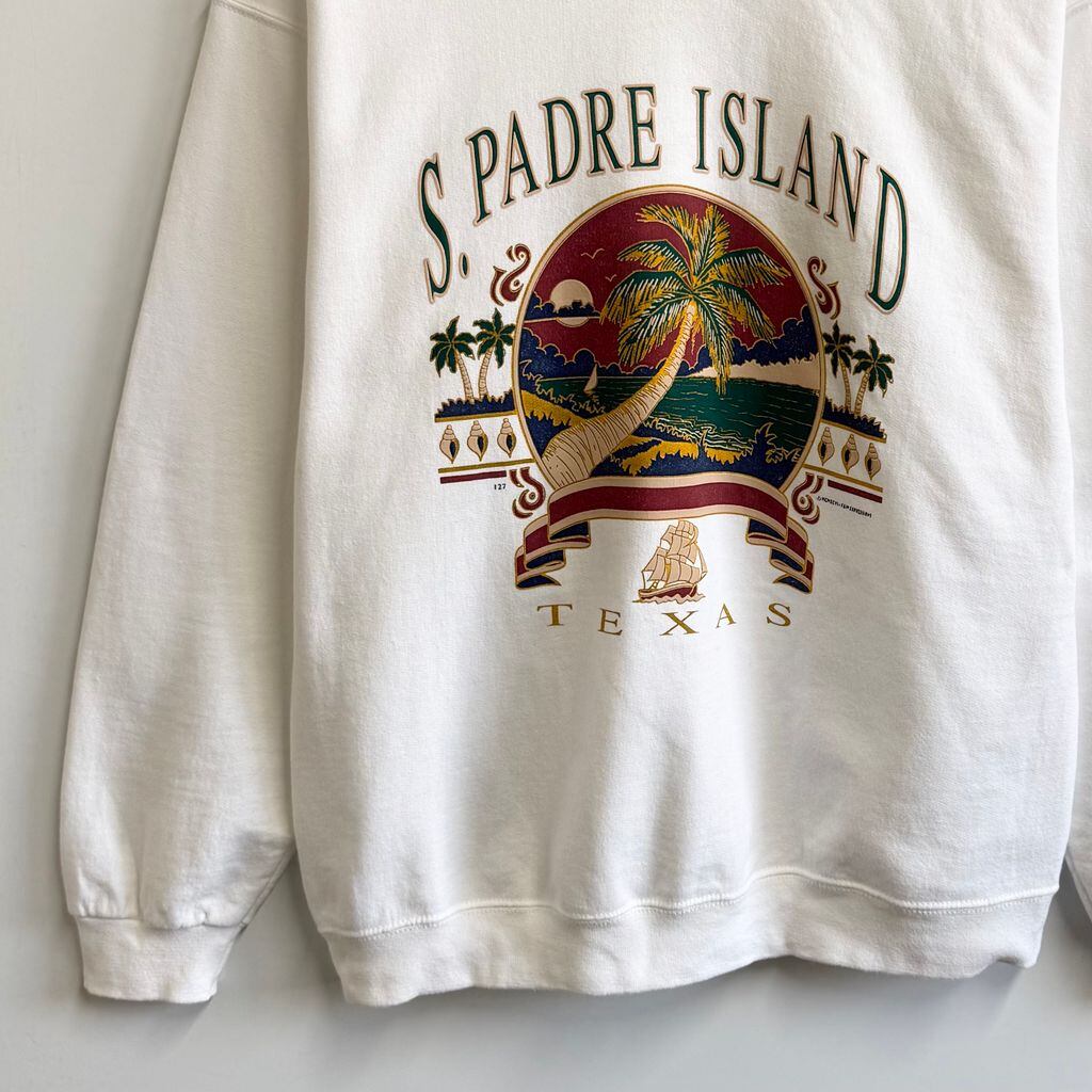 90's〜 vintage ビンテージ FRUIT OF THE LOOM フルーツオブザルーム フロントプリント テキサス ヤシの木 海 船 トレーナー スウェット 裏起毛 白 Mサイズ No.M474