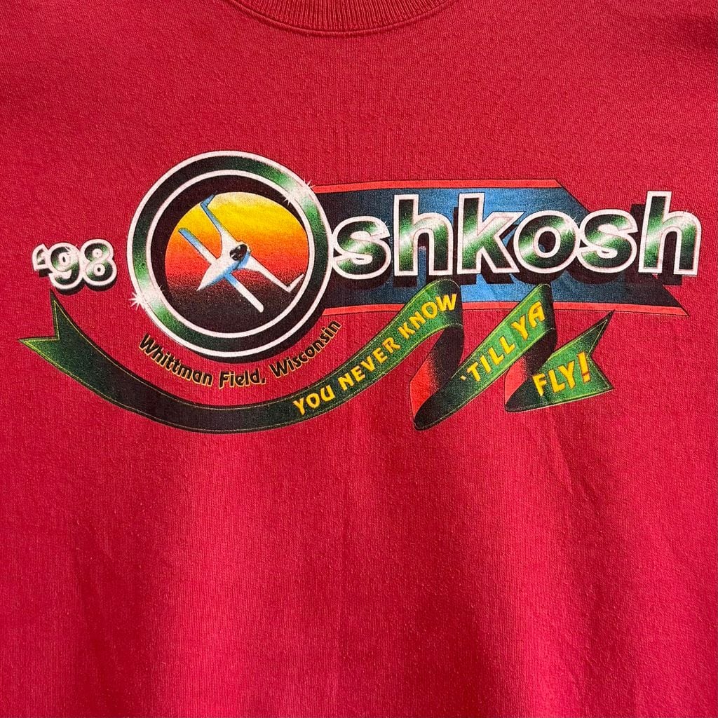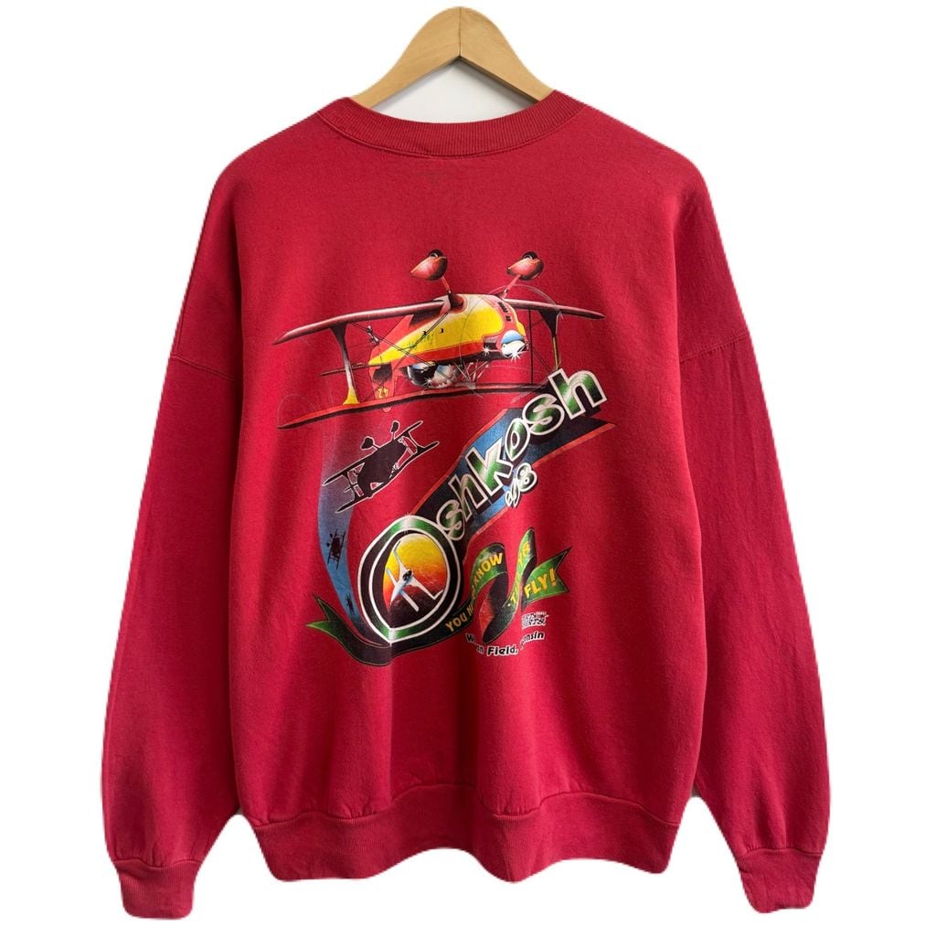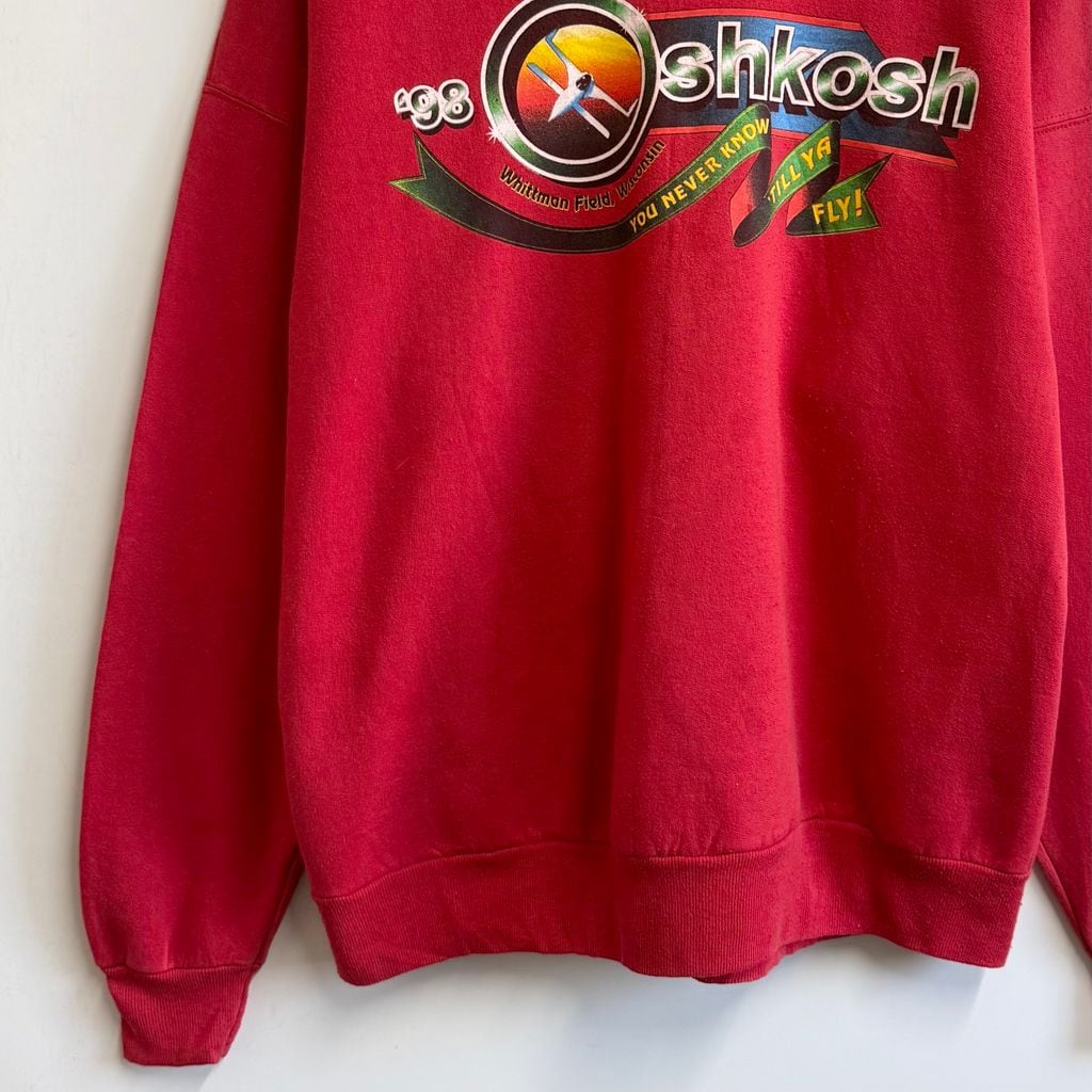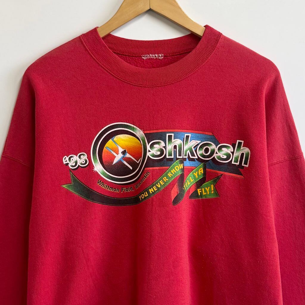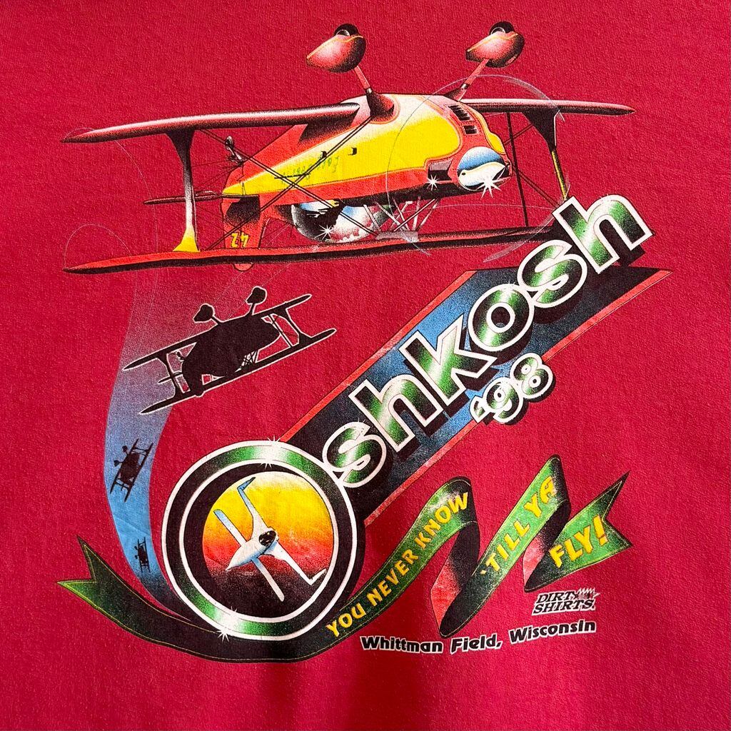 98年 OSHKOSH オシュコシュ 航空ショー 飛行機 両面プリント トレーナー スウェット 赤 レッド No.M475