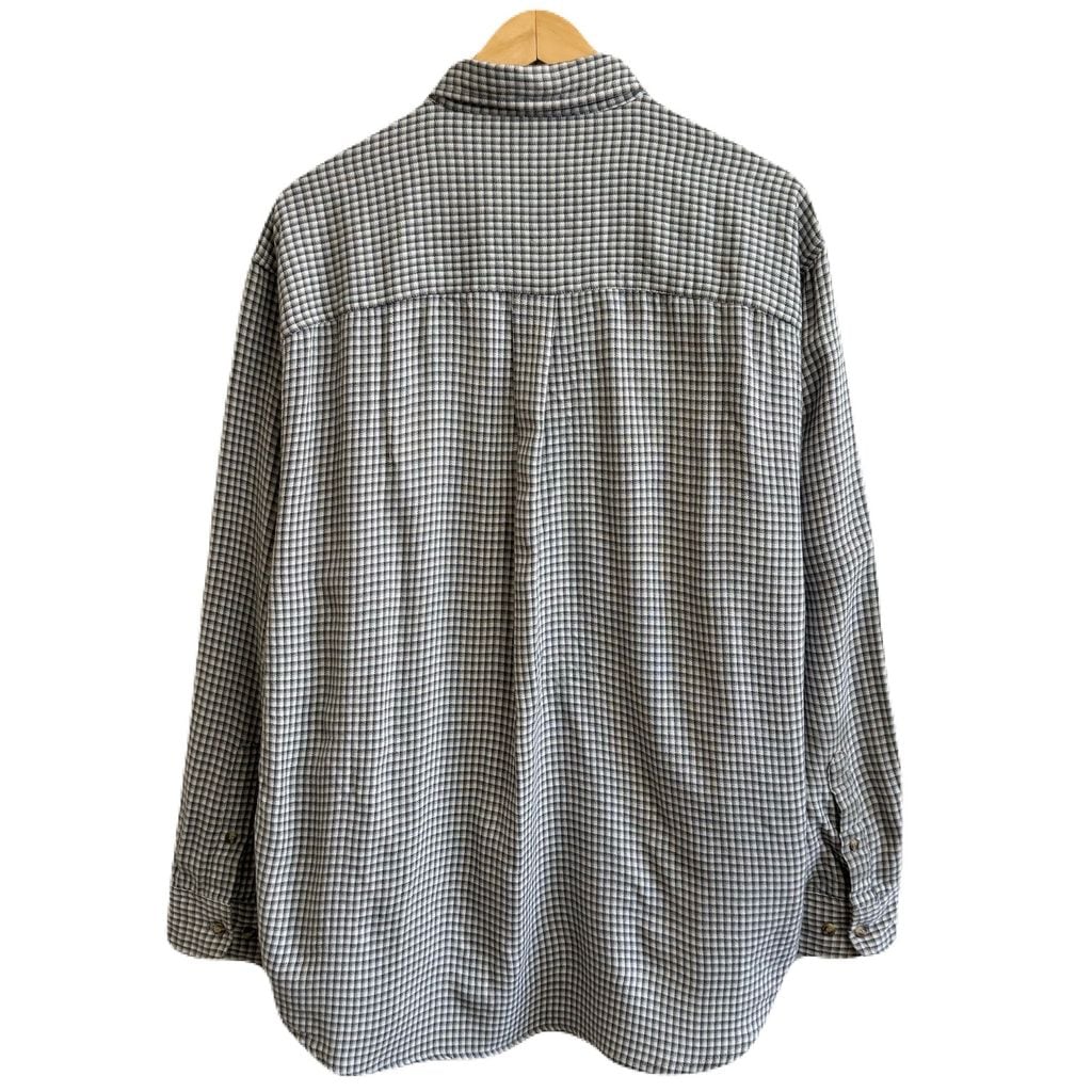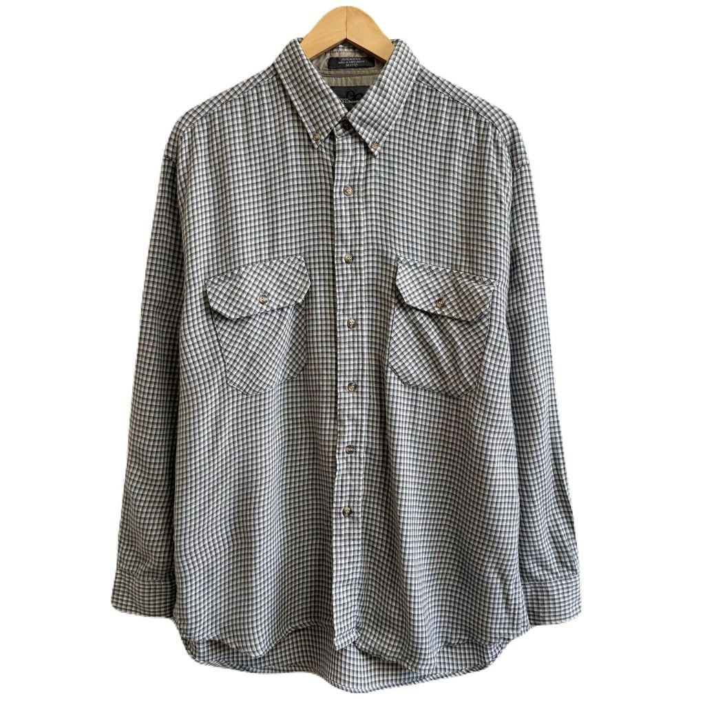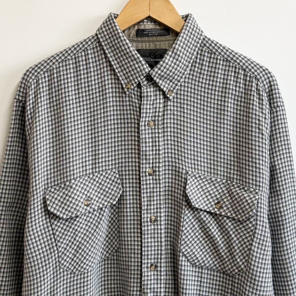 outdoor exchange ボタンダウンシャツ チェック柄 ポケット付き 長袖シャツ 白×紺×グレー Lサイズ No.M477