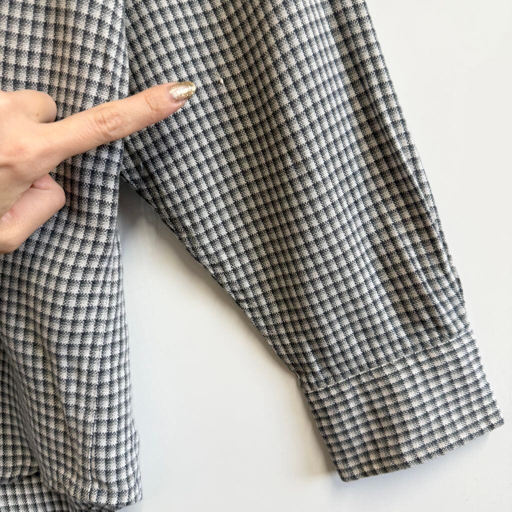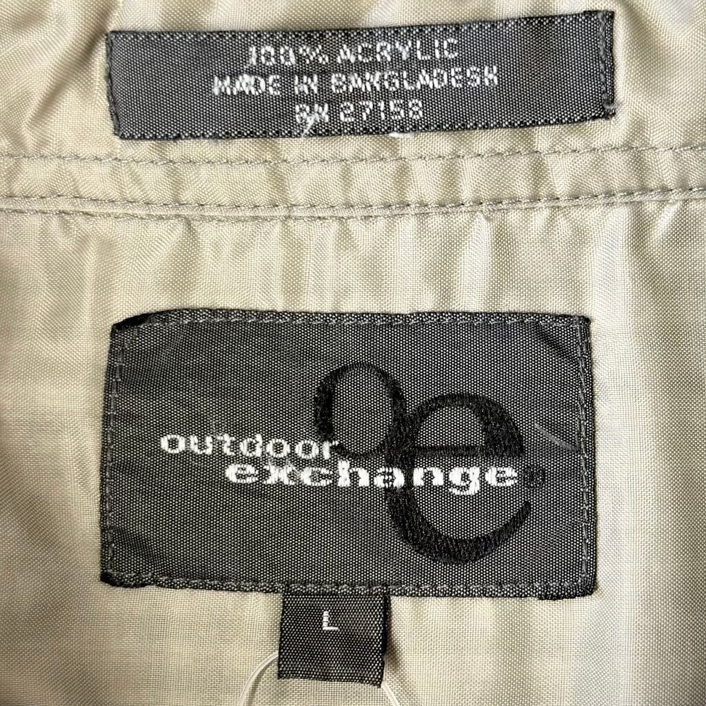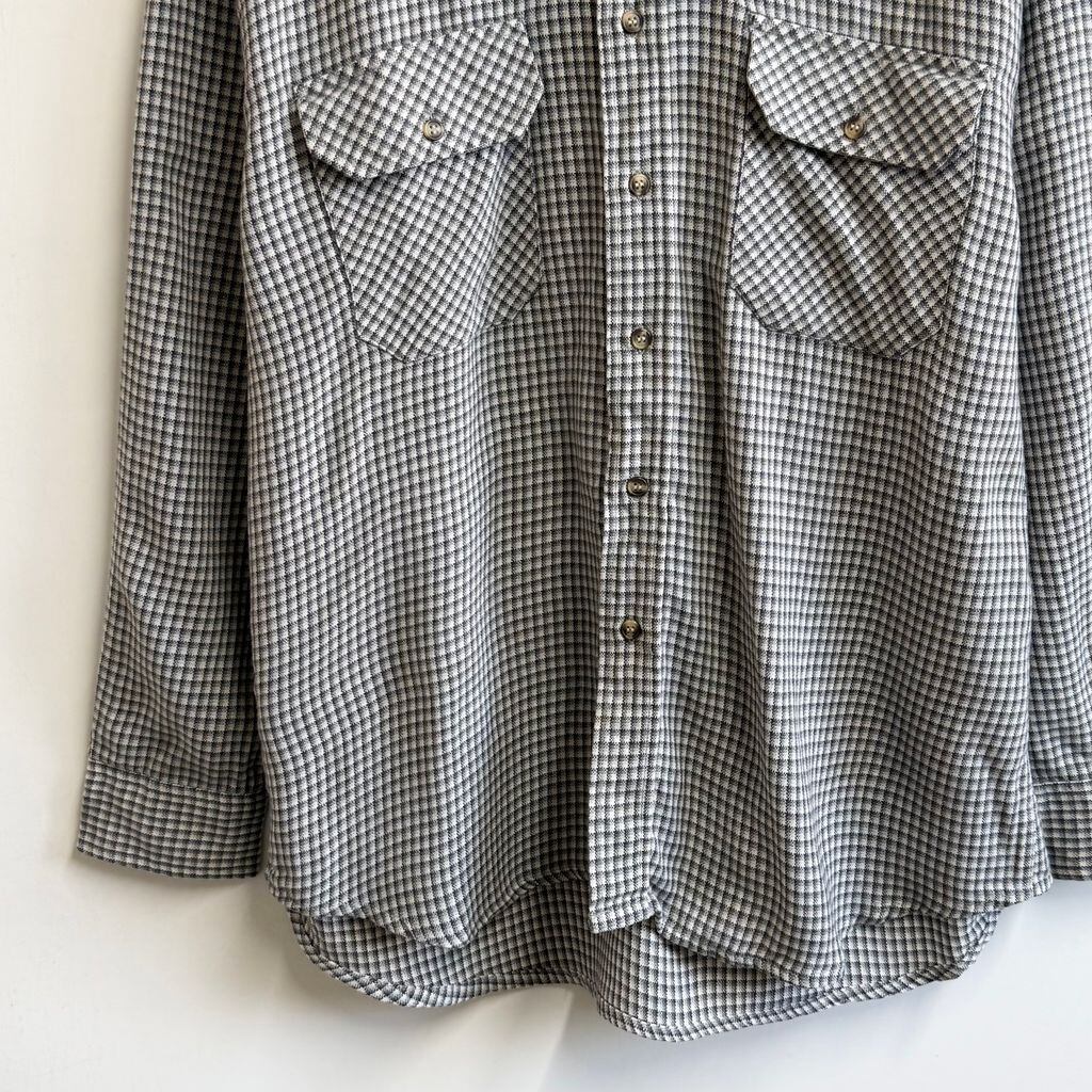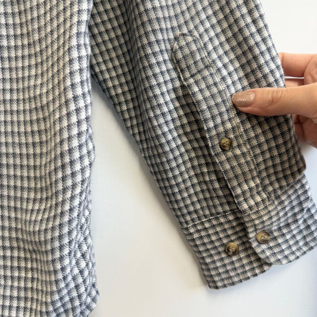 outdoor exchange ボタンダウンシャツ チェック柄 ポケット付き 長袖シャツ 白×紺×グレー Lサイズ No.M477